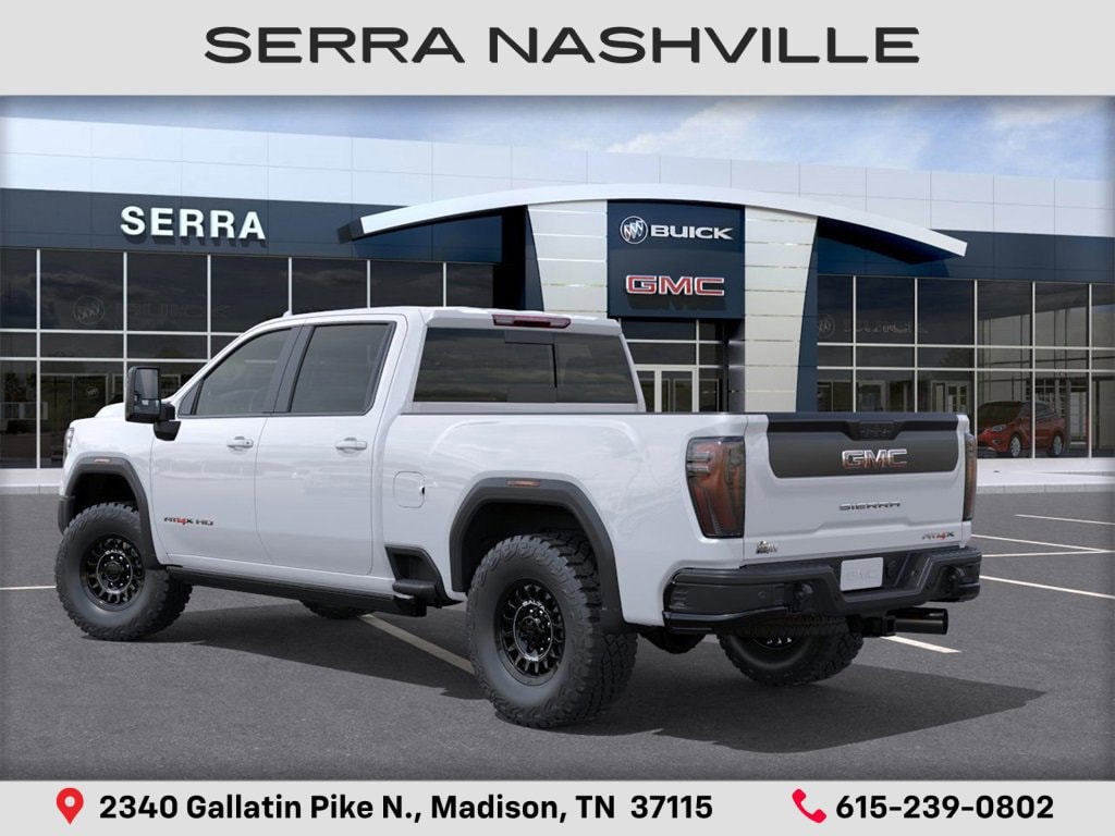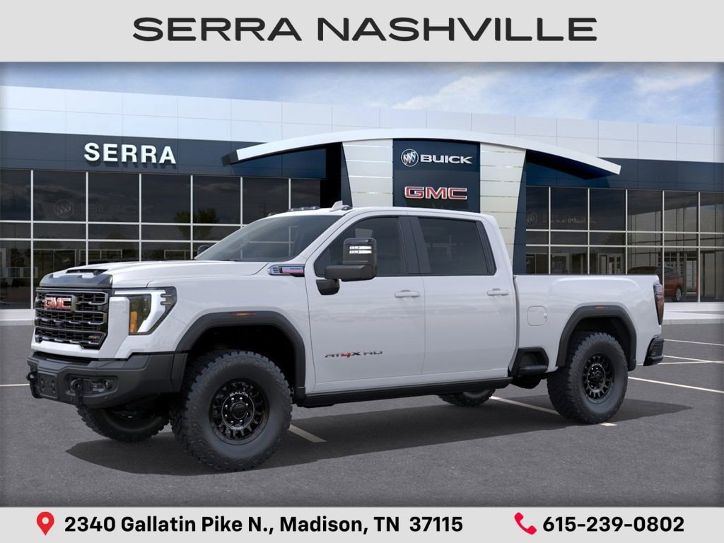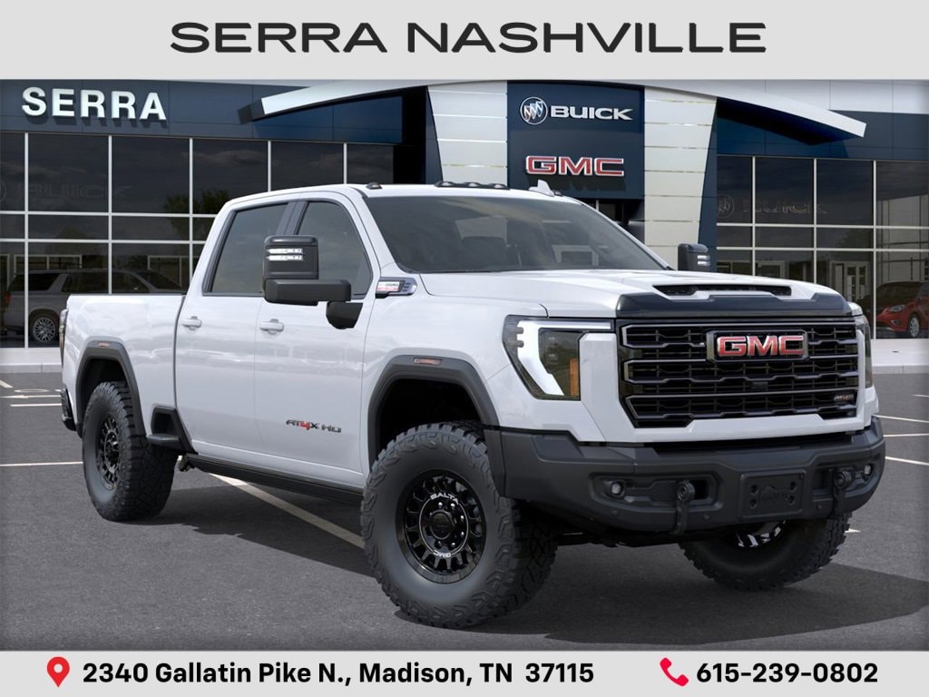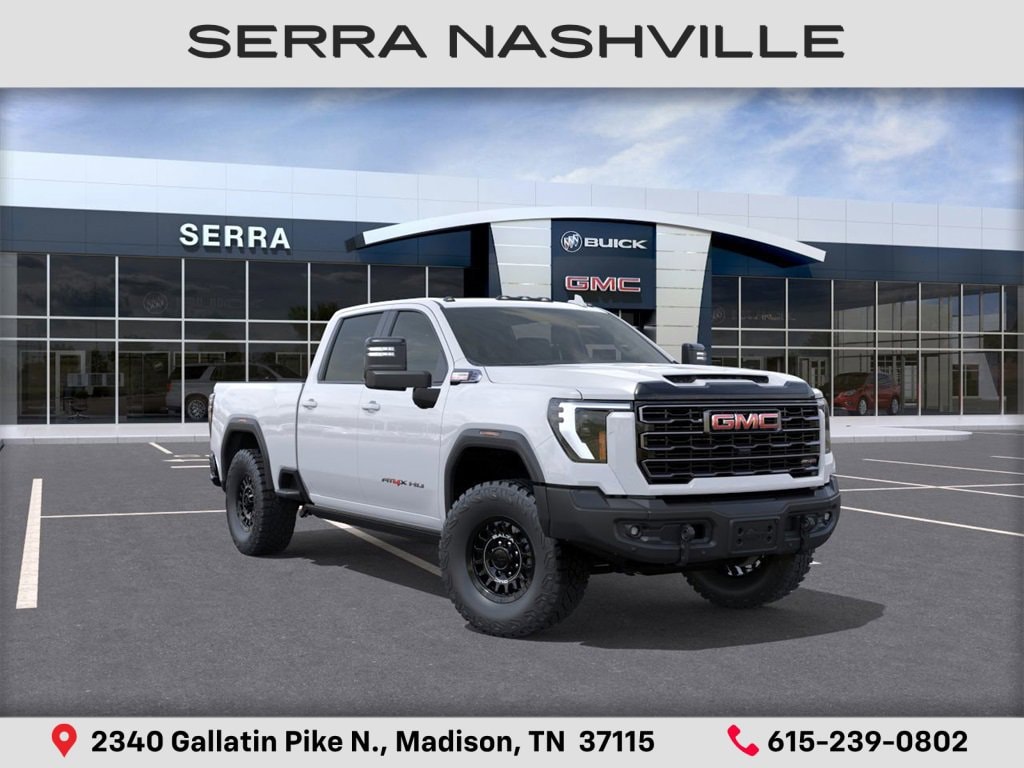 $5,724 off MSRP! Summit White 2025 GMC Sierra 2500HD AT4X For sale at Serra GMC Nashville and well equipped: AT4X AEV Edition (AEV Brand Floor Liners (LPO), Gloss Black Door Handles, High Approach Stamped Steel AEV Front Bumper, Stamped Steel AEV Rear Bumper, and Wheels: 18 AEV Salta Black Gloss Aluminum), Preferred Equipment Group 4SG (120-Volt Bed Mounted Power Outlet, 120-Volt Instrument Panel Power Outlet, 2 Charge-Only Rear USB Ports, 2 Charge/Data USB Ports Inside Center Console, 2 USB Ports, 2-Speed Active Transfer Case, Bed View Camera w/2 Trailer Camera Provisions, Bose Premium Series 12-Speaker System, Deep-Tinted Glass, Electric Rear-Window Defogger, Floor-Mounted Center Console, Front Prem Floor Liners w/Removable Carpet Insert, Front Rain-Sensing Wipers, Gloss Black Header Grille & Grille Insert Bars, HD Surround Vision, Heated 2nd Row Outboard Seats, Heated Driver & Front Outboard Passenger Seats, Hill Descent Control, Inside Rearview Auto-Dimming Rear Camera Mirror, Keyless Open & Start, LED Cargo Area Lighting, LED Smoked Amber Roof Marker Lamps, Manual Tilt-Wheel/Telescoping Steering Column, Multicolor 15 Diagonal Head-Up Display, OnStar Services Capable, Power Front Passenger Windows w/Express Up/Down, Power Sliding Rear Window w/Defogger, Power Sunroof, Push Button Start, Rear Cross Traffic Alert, Rear Prem Floor Liners w/Removable Carpet Insert, Rear Wheelhouse Liners, Remote Vehicle Starter System, Safety Alert Seat, SiriusXM w/360L Trial Subscription, Spray-On Pickup Bedliner w/GMC Logo, Steering Wheel Audio Controls, Trailer Cam Provisions & Trailer Viewing Software, Trailer Side Blind Zone Alert, Trailer Tire Pressure Monitor Sensors, Ultrasonic Front & Rear Park Assist, Unauthorized Entry Theft-Deterrent System, Universal Home Remote, Ventilated Driver & Front Passenger Seats, Wireless Charging, and Wireless Phone Projection), 12 Speakers, 16-Way Power Driver Seat Adjuster w/Lumbar, 16-Way Power Passenger Seat Adjuster w/Lumbar, 220-Amp Alternator, 3.42 Axle Ratio, 3.73 Rear Axle Ratio, 4-Wheel Disc Brakes, ABS brakes, Air Conditioning, Alloy wheels, AM/FM radio: SiriusXM with 360L, Apple CarPlay/Android Auto, Auto High-beam Headlights, Auto-dimming door mirrors, Auto-dimming Rear-View mirror, Automatic Emergency Braking, Automatic temperature control, Brake assist, Buckle to Drive, Compass, Delay-off headlights, Driver door bin, Driver Memory, Driver vanity mirror, Dual front impact airbags, Dual front side impact airbags, Electronic Stability Control, Emergency communication system: OnStar, Engine Block Heater, Exhaust Brake, Following Distance Indicator, Forward Collision Alert, Front anti-roll bar, Front Bucket Seats, Front Center Armrest, Front dual zone A/C, Front fog lights, Front Pedestrian Braking, Front reading lights, Front wheel independent suspension, Full Grain Leather Seat Trim, Fully automatic headlights, Garage door transmitter, GMC MultiPro Tailgate Step Lights (LPO), Heads-Up Display, Heated door mirrors, Heated front seats, Heated rear seats, Heated steering wheel, Heavy-Duty 80 Amp Battery, Hitch Guidance w/Hitch View, Illuminated entry, In-Vehicle Trailering System App, IntelliBeam Automatic High Beam On/Off, Lane Departure Warning System, Leather steering wheel, Low tire pressure warning, Memory seat, Occupant sensing airbag, Off-Road Suspension, Outside temperature display, Overhead airbag, Overhead console, Panic alarm, Passenger door bin, Passenger vanity mirror, Pickup Box, Power door mirrors, Power driver seat, Power moonroof, Power passenger seat, Power steering, Power windows, Radio: AM/FM w/Premium GMC Infotainment System, Rain sensing wipers, Rear reading lights, Rear seat center armrest, Rear step bumper, Rear window defroster, Serra Value Price includes all rebates and discounts available to everyone. Price does not include tax, title, registration, optional equipment purchased at time of sale or processing fee of $895