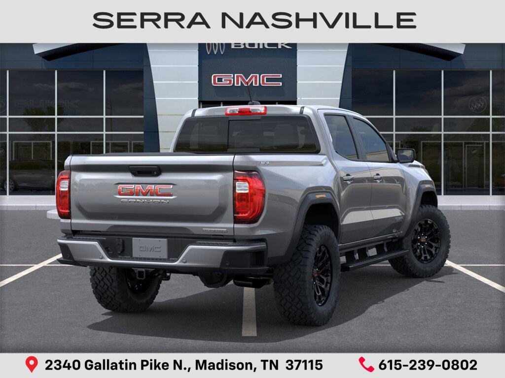 $1,542 off MSRP! 2026 GMC Canyon Elevation For sale at Serra GMC Nashville - Serra Nashville has the largest selection of the new GMC Canyon in Nashville. This vehicle is Sterling Metallic and well equipped with Canyon Safety Plus Package (Blind Zone Steering Assist w/Trailering, Rear Cross Traffic Braking, and Ultrasonic Rear Park Assist), Convenience Package (120-Volt Bed Mounted Power Outlet, 2 Rear USB Ports in Center Console (Charge-Only), Driver & Front Passenger Illuminated Visors, Dual-Zone Auto Climate Control Air Conditioning, EZ-Lift & Lower Tailgate, Front LED Fog Lamps, Inside Rear-View Auto-Dimming Mirror, Interior Overhead Courtesy Light w/Dual Reading Lamp, MultiStow Tailgate Storage Compartment, Rear of Console 120-Volt Power Outlet, Remote Vehicle Starter System, Tailgate Keyed Cylinder Lock, and Tilt & Telescopic Manual Steering Column), Elevation Premium Package (CoreTec Seat Trim, Driver Seatback Map Pocket, and Rear Center Fold-Down Armrest w/2 Cupholders), Preferred Package (8-Way Power Driver Seat Adjuster, Heated Driver & Front Passenger Seats, and Power Driver Lumbar Control Seat Adjuster), Technology Package (Adaptive Cruise Control, HD Surround Vision, and Rear Pedestrian Alert), 4WD, 1 Rear USB Port in Center Console (Charge-Only), 1st & 2nd Rows All-Weather Floor Liner (LPO), 2 1st Row USB Charge/Data Ports, 3.42 Rear Axle Ratio, 4-Way Manual Front Passenger Seat Adjuster, 4-Wheel Disc Brakes, 6 Speakers, 6-Speaker Audio System Feature, 6-Way Manual Driver Seat Adjuster, ABS brakes, Air Conditioning, Alloy wheels, AM/FM radio: SiriusXM with 360L, Apple CarPlay/Android Auto, Auto High-beam Headlights, Automatic Emergency Braking, Automatic Stop/Start, Black Assist Step (LPO), Brake assist, Bumpers: body-color, Canyon Pro Safety, Cloth Seat Trim, Compass, Delay-off headlights, Driver door bin, Driver Mode Selector, Driver vanity mirror, Dual front impact airbags, Dual front side impact airbags, Electronic Stability Control, Emergency communication system: OnStar, Following Distance Indicator, Forward Collision Alert, Front anti-roll bar, Front Bucket Seats, Front Center Armrest, Front Passenger Seatback Map Pocket, Front Pedestrian & Bicyclist Braking, Front wheel independent suspension, Heated door mirrors, Illuminated entry, IntelliBeam Automatic High Beam On/Off, Lane Keep Assist w/Lane Departure Warning, Low tire pressure warning, Navigation System, Occupant sensing airbag, Off-Road Suspension, Outside temperature display, Overhead airbag, Overhead console, Panic alarm, Passenger door bin, Passenger vanity mirror, Power door mirrors, Power steering, Power windows, Radio data system, Radio: 11.3 Diagonal Premium GMC Infotainment Sys, Rear reading lights, Rear step bumper, Rear window defroster, Remote keyless entry, Security system, SiriusXM w/360L, Speed control, Speed-sensing steering, Split folding rear seat, Steering wheel mounted audio controls, Stop/Start System Disable Button Engine Control, Tachometer, Tilt steering wheel, Traction control, Trip computer, Variably intermittent wipers, Wheels: 18 x 8.5 Gloss Black Finish Aluminum, and Wireless Apple CarPlay/Wireless Android Auto.