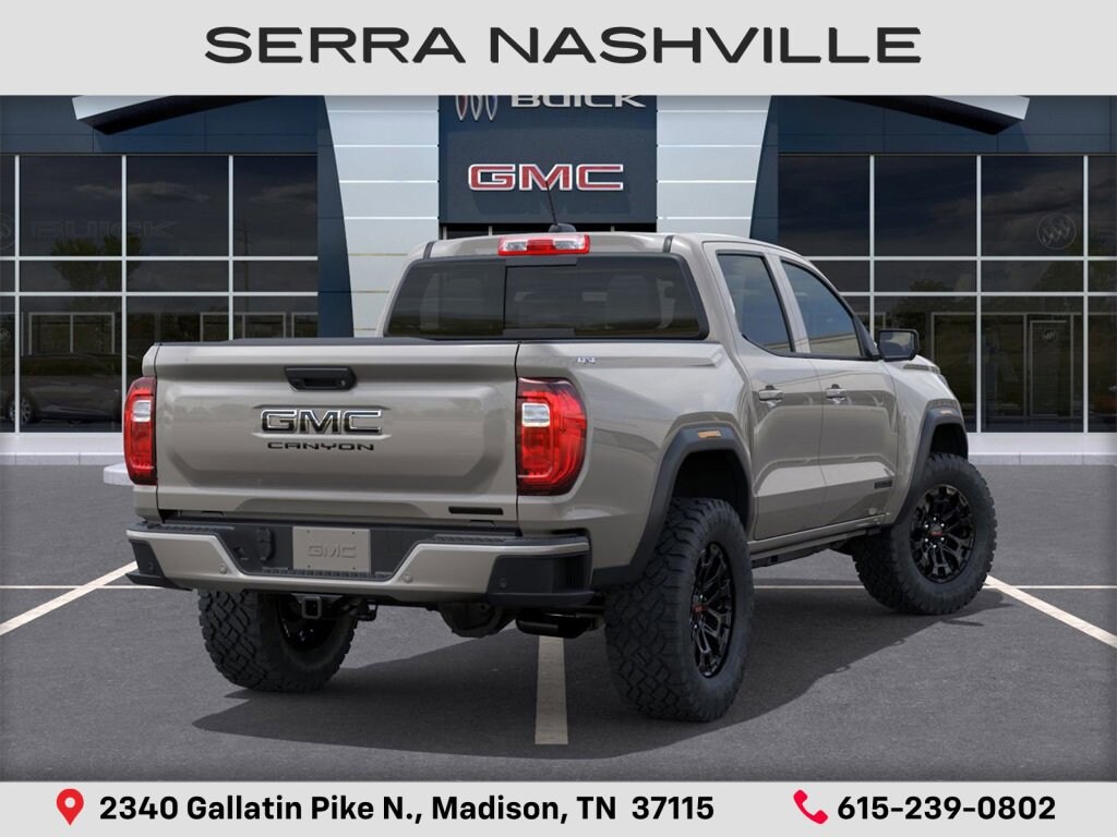 $994 off MSRP! 2026 GMC Canyon Elevation For sale at Serra GMC Nashville - Serra Nashville has the largest selection of the new GMC Canyon in Nashville. This vehicle is Coastal Dune and well equipped with Black Badging Package (Black Badges and Black GMC Emblems), Canyon Safety Plus Package (Blind Zone Steering Assist with Trailering, Rear Cross Traffic Braking, and Ultrasonic Rear Park Assist), Convenience Package (120-Volt Bed Mounted Power Outlet, 2 Rear USB Ports in Center Console (Charge-Only), Driver and Front Passenger Illuminated Visors, Dual-Zone Automatic Climate Control Air Conditioning, EZ-Lift and Lower Tailgate, Front LED Fog Lamps, Inside Rear-View Auto-Dimming Mirror, Interior Overhead Courtesy Light with Dual Reading Lamp, MultiStow Tailgate Storage Compartment, Rear of Console 120-Volt Power Outlet, Remote Vehicle Starter System, Tailgate Keyed Cylinder Lock, and Til and Telescopic Manual Steering Column), Elevation Premium Package (CoreTec Seat Trim, Driver Seatback Map Pocket, and Rear Center Fold-Down Armrest with 2 Cupholders), Preferred Equipment Group 4VL (Automatic Emergency Braking, Canyon Pro Safety, Following Distance Indicator, Forward Collision Alert, Front Pedestrian and Bicyclist Braking, IntelliBeam Automatic High Beam on/Off, and Lane Keep Assist with Lane Departure Warning), Preferred Package (8-Way Power Driver Seat Adjuster, Heated Driver and Front Passenger Seats, and Power Driver Lumbar Control Seat Adjuster), Technology Package (Adaptive Cruise Control, HD Surround Vision, and Rear Pedestrian Alert), 4WD, 1 Rear USB Port in Center Console (Charge-Only), 1st and 2nd Rows All-Weather Floor Liner, 2 1st Row USB Charge/Data Ports, 3.42 Rear Axle Ratio, 4-Way Manual Front Passenger Seat Adjuster, 4-Wheel Disc Brakes, 6 Speakers, 6-Speaker Audio System Feature, 6-Way Manual Driver Seat Adjuster, ABS brakes, Air Conditioning, Alloy wheels, AM/FM radio: SiriusXM with 360L, Apple CarPlay/Android Auto, Auto High-beam Headlights, Automatic Stop/Start, Black Assist Steps, Brake assist, Bumpers: body-color, Cloth Seat Trim, Compass, Delay-off headlights, Driver door bin, Driver Mode Selector, Driver vanity mirror, Dual front impact airbags, Dual front side impact airbags, Electronic Stability Control, Emergency communication system: OnStar, Front anti-roll bar, Front Bucket Seats, Front Center Armrest, Front Passenger Seatback Map Pocket, Front wheel independent suspension, Heated door mirrors, Illuminated entry, Low tire pressure warning, Navigation System, Occupant sensing airbag, Off-Road Suspension, Outside temperature display, Overhead airbag, Overhead console, Panic alarm, Passenger door bin, Passenger vanity mirror, Power door mirrors, Power steering, Power windows, Radio data system, Radio: 11.3 Diagonal Premium GMC Infotainment System, Rear reading lights, Rear step bumper, Rear window defroster, Remote keyless entry, Security system, SiriusXM with 360L, Speed control, Speed-sensing steering, Split folding rear seat, Steering wheel mounted audio controls, Stop/Start System Disable Button Engine Control, Tachometer, Tilt steering wheel, Traction control, Trip computer, Variably intermittent wipers, Wheels: 18 x 8.5 Gloss Black Finish Aluminum, and Wireless Apple CarPlay/Wireless Android Auto.