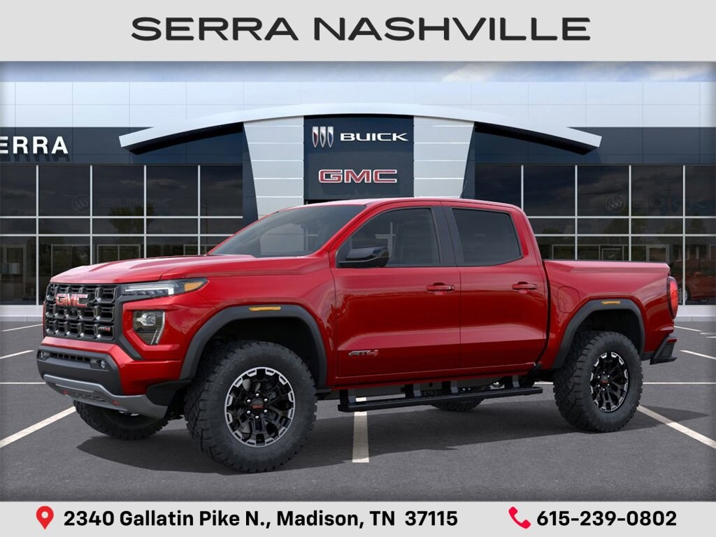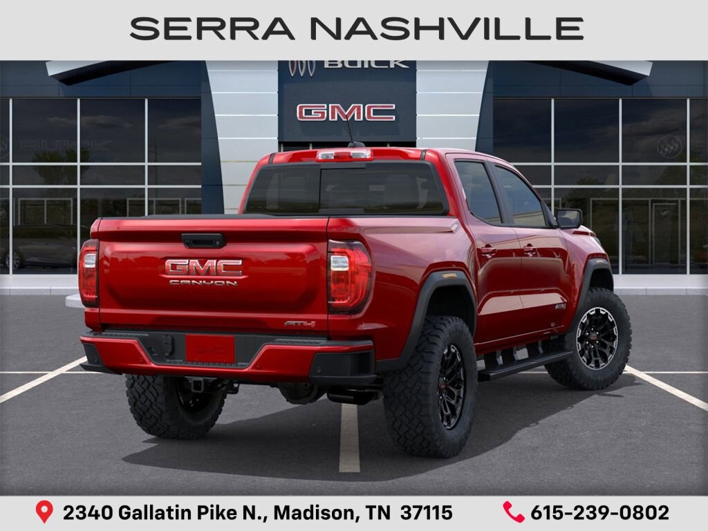 2026 GMC Canyon AT4 For sale at Serra GMC Nashville - Serra Nashville has the largest selection of the new GMC Canyon in Nashville. This vehicle is Desert Sun and well equipped with AT4 Premium Package (6-Way Power Passenger Seat Adjuster, Driver & Front Passenger Ventilated Seats, Driver Memory, Driver Seatback Map Pocket, Heated Steering Wheel, Perforated Leather-Appointed Seat Trim, Power Passenger Lumbar Control Seat Adjuster, Rear Center Fold-Down Armrest w/2 Cupholders, and Wireless Phone Charging), Canyon Safety Plus Package (Blind Zone Steering Assist w/Trailering, Rear Cross Traffic Braking, and Ultrasonic Rear Park Assist), Technology Plus Package (Adaptive Cruise Control, HD Surround Vision, Laminated Windshield Acoustic Glass, Multicolor 6.3 Diagonal Head-Up Display, Power Inner Sliding Glass Sunroof w/Manual Shade, Premium 7-Speaker Bose Sound System, and Rear Pedestrian Alert), 4WD, 120-Volt Bed Mounted Power Outlet, 2 1st Row USB Charge/Data Ports, 2 Rear USB Ports in Center Console (Charge-Only), 3.42 Rear Axle Ratio, 4-Way Manual Front Passenger Seat Adjuster, 4-Wheel Disc Brakes, 6 Speakers, 6-Speaker Audio System Feature, 8-Way Power Driver Seat Adjuster, ABS brakes, Air Conditioning, Alloy wheels, AM/FM radio: SiriusXM with 360L, Apple CarPlay/Android Auto, Auto High-beam Headlights, Auto-dimming Rear-View mirror, Automatic Emergency Braking, Automatic Stop/Start, Automatic temperature control, Black Assist Step (LPO), Brake assist, Bumpers: body-color, Canyon Pro Safety, Cloth/CoreTec Seat Trim, Compass, Delay-off headlights, Driver & Front Passenger Illuminated Visors, Driver door bin, Driver Mode Selector, Driver vanity mirror, Dual front impact airbags, Dual front side impact airbags, Dual-Zone Auto Climate Control Air Conditioning, Electronic Stability Control, Emergency communication system: OnStar, EZ-Lift & Lower Tailgate, Following Distance Indicator, Forward Collision Alert, Front anti-roll bar, Front Bucket Seats, Front Center Armrest, Front dual zone A/C, Front fog lights, Front LED Fog Lamps, Front Passenger Seatback Map Pocket, Front Pedestrian & Bicyclist Braking, Front reading lights, Front wheel independent suspension, Heated door mirrors, Heated Driver & Front Passenger Seats, Heated front seats, Illuminated entry, Inside Rear-View Auto-Dimming Mirror, IntelliBeam Automatic High Beam On/Off, Interior Overhead Courtesy Light w/Dual Reading Lamp, Lane Keep Assist w/Lane Departure Warning, Low tire pressure warning, MultiStow Tailgate Storage Compartment, Navigation System, Occupant sensing airbag, Off-Road Suspension, Outside temperature display, Overhead airbag, Overhead console, Panic alarm, Passenger door bin, Passenger vanity mirror, Power door mirrors, Power Driver Lumbar Control Seat Adjuster, Power driver seat, Power steering, Power windows, Radio data system, Radio: 11.3 Diagonal Premium GMC Infotainment Sys, Rear of Console 120-Volt Power Outlet, Rear reading lights, Rear step bumper, Rear window defroster, Remote keyless entry, Remote Vehicle Starter System, Security system, SiriusXM w/360L, Speed control, Speed-sensing steering, Split folding rear seat, Spray-On Bedliner w/GMC Logo, Steering wheel mounted audio controls, Stop/Start System Disable Button Engine Control, Tachometer, Tailgate Keyed Cylinder Lock, Telescoping steering wheel, Tilt & Telescopic Manual Steering Column, Tilt steering wheel, Traction control, Trip computer, Variably intermittent wipers, Wheels: 18 x 8.5 Gloss Black, and Wireless Apple CarPlay/Wireless Android Auto.