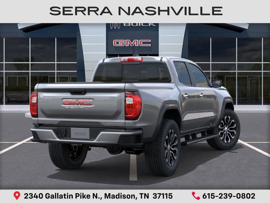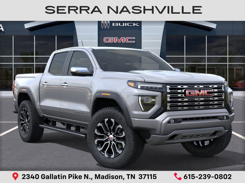 $2,309 off MSRP! 2026 GMC Canyon Denali For sale at Serra GMC Nashville - Serra Nashville has the largest selection of the new GMC Canyon in Nashville. This vehicle is Sterling Metallic and well equipped with Canyon Safety Plus Package (Blind Zone Steering Assist with Trailering, Rear Cross Traffic Braking, and Ultrasonic Rear Park Assist), 4WD, 120-Volt Bed Mounted Power Outlet, 2 1st Row USB Charge/Data Ports, 2 Rear USB Ports in Center Console (Charge-Only), 3.42 Rear Axle Ratio, 4-Wheel Disc Brakes, 5 Rectangular Chrome Assist Steps, 6-Way Power Passenger Seat Adjuster, 7 Speakers, 8-Way Power Driver Seat Adjuster, ABS brakes, Adaptive Cruise Control, Air Conditioning, Alloy wheels, AM/FM radio: SiriusXM with 360L, Apple CarPlay/Android Auto, Auto High-beam Headlights, Auto-dimming Rear-View mirror, Automatic Emergency Braking, Automatic Stop/Start, Automatic temperature control, Brake assist, Bumpers: body-color, Canyon Pro Safety, Compass, Delay-off headlights, Driver and Front Passenger Illuminated Visors, Driver and Front Passenger Ventilated Seats, Driver door bin, Driver Memory, Driver Mode Selector, Driver Seatback Map Pocket, Driver vanity mirror, Dual front impact airbags, Dual front side impact airbags, Dual-Zone Automatic Climate Control Air Conditioning, Electronic Stability Control, Emergency communication system: OnStar, EZ-Lift and Lower Tailgate, Following Distance Indicator, Forward Collision Alert, Front anti-roll bar, Front Bucket Seats, Front Center Armrest, Front dual zone A/C, Front fog lights, Front LED Fog Lamps, Front Passenger Seatback Map Pocket, Front Pedestrian and Bicyclist Braking, Front reading lights, Front wheel independent suspension, Genuine wood dashboard insert, Genuine wood door panel insert, HD Surround Vision, Heads-Up Display, Heated door mirrors, Heated Driver and Front Passenger Seats, Heated front seats, Heated Steering Wheel, Heated steering wheel, Illuminated entry, Inside Rear-View Auto-Dimming Mirror, IntelliBeam Automatic High Beam on/Off, Interior Overhead Courtesy Light with Dual Reading Lamp, Lane Keep Assist with Lane Departure Warning, Low tire pressure warning, Memory seat, Multicolor 6.3 Diagonal Head-Up Display, MultiStow Tailgate Storage Compartment, Navigation System, Occupant sensing airbag, Off-Road Suspension, Outside temperature display, Overhead airbag, Overhead console, Panic alarm, Passenger door bin, Passenger vanity mirror, Perforated Leather-Appointed Seat Trim, Power door mirrors, Power Driver Lumbar Control Seat Adjuster, Power driver seat, Power Inner Sliding Glass Sunroof with Manual Shade, Power Passenger Lumbar Control Seat Adjuster, Power passenger seat, Power steering, Power windows, Premium 7-Speaker Bose Sound System, Radio data system, Radio: 11.3 Diagonal Premium GMC Infotainment System, Rear Center Fold-Down Armrest with 2 Cupholders, Rear of Console 120-Volt Power Outlet, Rear Pedestrian Alert, Rear reading lights, Rear seat center armrest, Rear step bumper, Rear window defroster, Remote keyless entry, Remote Vehicle Starter System, Safety Alert Seat, Security system, SiriusXM with 360L, Speed control, Speed-sensing steering, Split folding rear seat, Spray-on Bedliner with GMC Logo, Steering wheel mounted audio controls, Stop/Start System Disable Button Engine Control, Tachometer, Tailgate Keyed Cylinder Lock, Telescoping steering wheel, Til and Telescopic Manual Steering Column, Tilt steering wheel, Traction control, Trip computer, Variably intermittent wipers, Ventilated front seats, Wheels: 20 x 9 Diamond Cut Dark Gray Aluminum, Wireless Apple CarPlay/Wireless Android Auto, and Wireless Phone Charging.