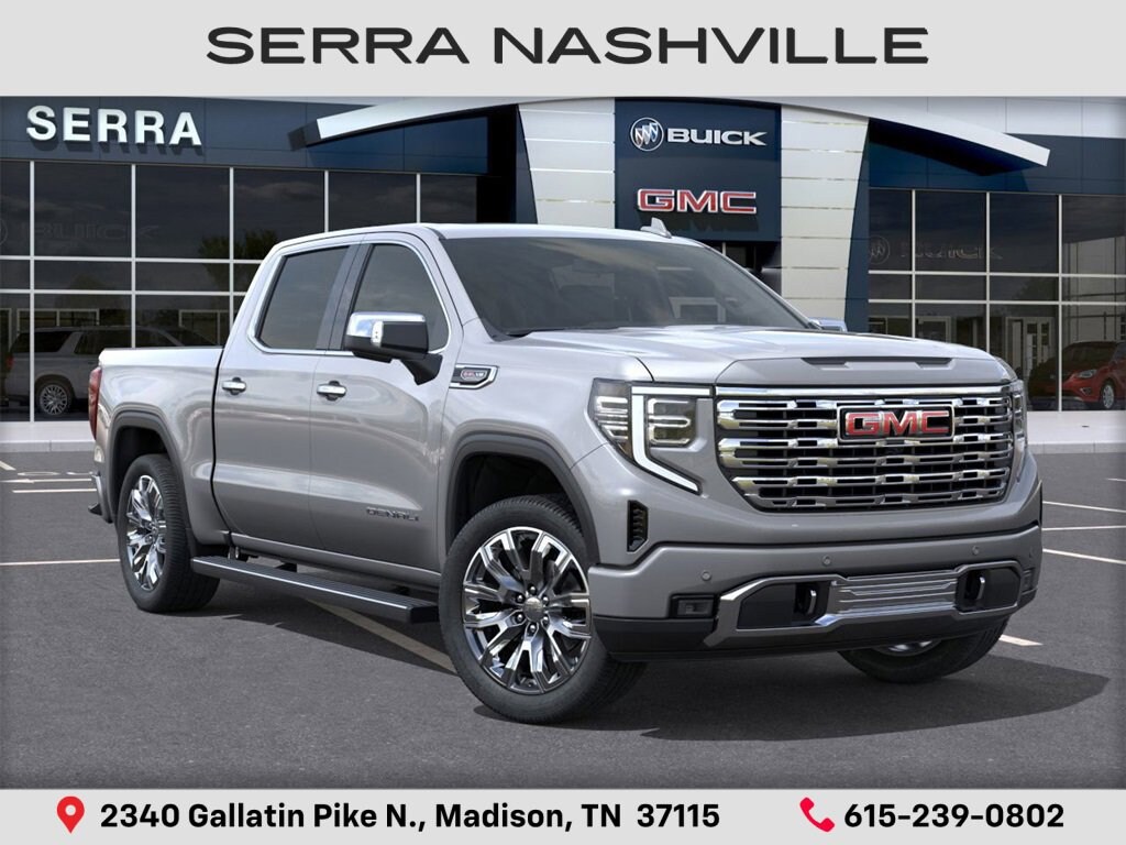 $5,813 off MSRP! 2026 GMC Sierra 1500 Denali For sale at Serra GMC Nashville - Serra Nashville has the largest selection of the new GMC Sierra 1500 in Nashville. This vehicle is Sterling Metallic and well equipped with Denali Reserve Package (GMC MultiPro Power Steps, Power Sunroof, Wheel Locks (Set of 4) (LPO), and Wheels: 22 x 9 Painted Aluminum), Preferred Equipment Group 5SA (120-Volt Bed Mounted Power Outlet, 120-Volt Interior Power Outlet, 170 Amp Alternator, 2 Charge/Data USB Ports Inside Center Console, 2 Type-C Charge-Only Rear USB Ports, 2 USB Ports, Auto-Locking Rear Differential, Auxiliary External Transmission Oil Cooler, Bed View Camera, Chrome Header w/Signature Denali Chrome Grille, Chrome Recovery Hooks, Chrome Wheel To Wheel Assist Steps, Color-Keyed Carpeting Floor Covering, Deep-Tinted Glass, Electric Rear-Window Defogger, Floor-Mounted Center Console, Front Rain-Sensing Wipers, HD Surround Vision, Heated 2nd Row Outboard Seats, Heated Driver & Front Outboard Passenger Seating, Heavy-Duty Air Filter, Hill Descent Control, Hitch View, In-Vehicle Trailering System App, Integrated Trailer Brake Controller, Keyless Open & Start, LED Cargo Area Lighting, OnStar Services Capable, Perimeter Lighting, Power Door Locks, Power Front Passenger Windows w/Express Up/Down, Power Front Windows w/Driver Express Up/Down, Power Rake & Telescoping Steering Column, Power Rear Windows w/Express Down, Power Sliding Rear Window w/Rear Defogger, Premium Bose 7-Speaker Sound System, Push Button Start, Rear Cross Traffic Braking, Rear Pedestrian Detection, Rear Wheelhouse Liners, Remote Vehicle Starter System, SiriusXM w/360L Trial Subscription, Spray-On Pickup Bedliner w/GMC Logo, Steering Wheel Audio Controls, Theft Deterrent System (Unauthorized Entry), Trailer Camera Provisions, Trailer Side Blind Zone Alert, Ultrasonic Front & Rear Park Assist, Universal Home Remote, Ventilated Driver & Front Passenger Seats, Wi-Fi Hotspot Capable, and Wireless Charging), Technology Package (Multicolor 15 Diagonal Head-Up Display and Rear Camera Mirror), Trailering Package (Hitch Guidance), 10-Speed Automatic, 4WD, Atmosphere/Brownstone Leather, 12-Way Power Driver Seat Adjuster w/Lumbar, 12-Way Power Passenger Seat Adjuster w/Lumbar, 3.23 Rear Axle Ratio, 4-Wheel Disc Brakes, 7 Speakers, ABS brakes, Adaptive suspension, Air Conditioning, Alloy wheels, AM/FM radio: SiriusXM with 360L, Apple CarPlay/Android Auto, Auto High-beam Headlights, Auto-dimming door mirrors, Auto-dimming Rear-View mirror, Automatic temperature control, Brake assist, Buckle to Drive, Bumpers: body-color, Compass, Delay-off headlights, Denali Premium Suspension w/Adaptive Ride Control, Driver door bin, Driver Memory, Driver vanity mirror, Dual Active Exhaust, Dual front impact airbags, Dual front side impact airbags, Electronic Stability Control, Emergency communication system: OnStar, Enhanced Automatic Emergency Braking, Following Distance Indicator, Forge Perforated Leather Seat Trim, Forward Collision Alert, Front anti-roll bar, Front Bucket Seats, Front Center Armrest, Front dual zone A/C, Front fog lights, Front License Plate Kit, Front Pedestrian Braking, Front Prem Floor Liners w/Removable Carpet Insert, Front reading lights, Front wheel independent suspension, Fully automatic headlights, Garage door transmitter, Genuine wood console insert, Genuine wood dashboard insert, Genuine wood door panel insert, Heated door mirrors, Heated front seats, Heated rear seats, Heated steering wheel, Illuminated entry, IntelliBeam Automatic High Beam On/Off, Lane Keep Assist w/Lane Departure Warning, Low tire pressure warning, Memory seat, Navigation System, Occupant sensing airbag, Outside temperature d Serra Value Price includes all rebates and discounts available to everyone. Price does not include tax, title, registration, optional equipment purchased at time of sale or processing fee of $895. $1750 - Purchase Allowance. Exp. 1