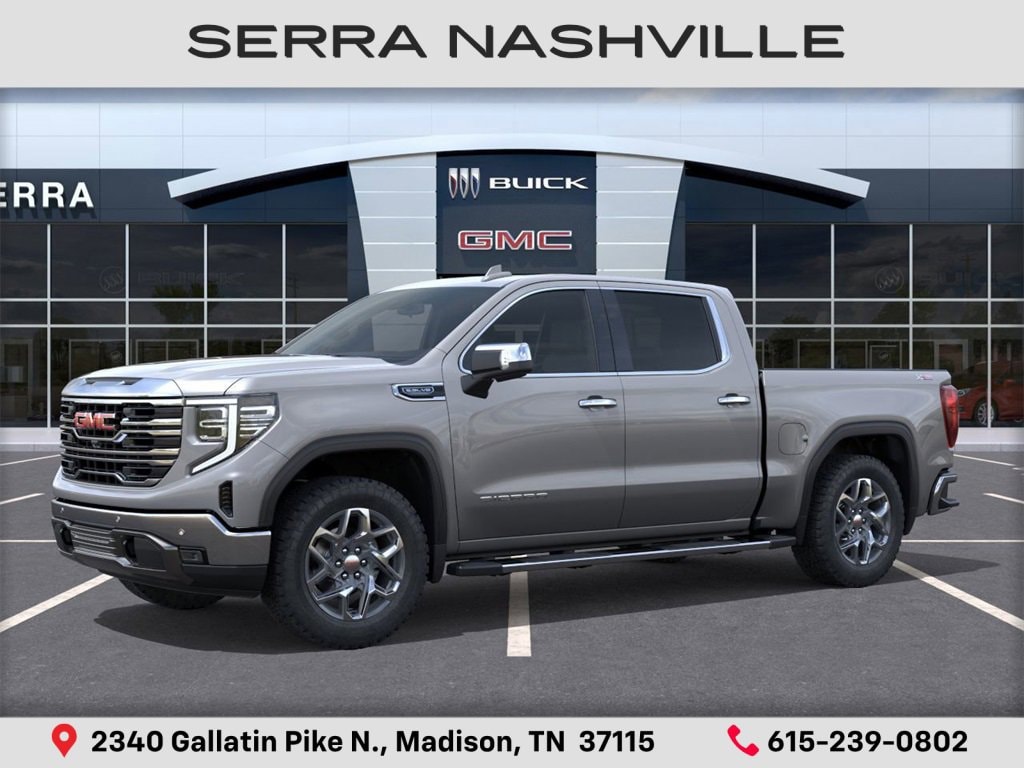 $5,295 off MSRP! 2026 GMC Sierra 1500 SLT For sale at Serra GMC Nashville - Serra Nashville has the largest selection of the new GMC Sierra 1500 in Nashville. This vehicle is Sterling Metallic and well equipped with ProGrade Trailering System (Hitch View and In-Vehicle Trailering System App), Sierra Safety Plus Package (HD Surround Vision, Rear Cross Traffic Braking, Rear Pedestrian Detection, Safety Alert Seat, Trailer Camera Provisions, Trailer Side Blind Zone Alert, and Ultrasonic Front & Rear Park Assist), SLT Convenience Package (2 Charge/Data USB Ports Inside Center Console, Electronic Precision Shift, Floor-Mounted Center Console, Front Bucket Seats, Power Rake & Telescoping Steering Column, Premium Bose 7-Speaker Sound System, Ventilated Driver & Front Passenger Seats, and Wireless Charging), SLT Preferred Package (Adaptive Cruise Control, Heated 2nd Row Outboard Seats, Power Sliding Rear Window w/Rear Defogger, and Universal Home Remote), SLT Premium Plus Package (Chrome Wheel To Wheel Assist Steps and Spray-On Pickup Bedliner w/GMC Logo), Standard Suspension Package, Trailering Package (Hitch Guidance), X31 Off-Road Package (Dual Exhaust System, Heavy-Duty Air Filter, Hill Descent Control, Off-Road Suspension, and X31 Hard Badge), 10-Speed Automatic, 4WD, Dark Walnut/Slate w/Perf Leather-Appointed Front Outboard Seat Trim, 10-Way Power Driver Seat Adjuster w/Lumbar, 10-Way Power Passenger Seat Adjuster w/Lumbar, 120-Volt Bed Mounted Power Outlet, 120-Volt Interior Power Outlet, 170 Amp Alternator, 2 Charge/Data USB Ports, 2 Type-C Charge-Only Rear USB Ports, 3.23 Rear Axle Ratio, 4-Wheel Disc Brakes, 6 Speakers, 6-Speaker Audio System Feature, ABS brakes, Air Conditioning, Alloy wheels, AM/FM radio: SiriusXM with 360L, Apple CarPlay/Android Auto, Auto High-beam Headlights, Auto-dimming door mirrors, Auto-dimming Rear-View mirror, Auto-Locking Rear Differential, Automatic Emergency Braking, Automatic temperature control, Auxiliary External Transmission Oil Cooler, Brake assist, Buckle to Drive, Bumpers: chrome, Chrome Header & Chrome Grille Insert Bars, Color-Keyed Carpeting Floor Covering, Compass, Deep-Tinted Glass, Delay-off headlights, Driver door bin, Driver Memory, Driver vanity mirror, Dual front impact airbags, Dual front side impact airbags, Electric Rear-Window Defogger, Electronic Stability Control, Emergency communication system: OnStar, Following Distance Indicator, Forward Collision Alert, Front 40/20/40 Split-Bench Seat, Front anti-roll bar, Front Center Armrest w/Storage, Front dual zone A/C, Front fog lights, Front Frame-Mounted Black Recovery Hooks, Front Pedestrian Braking, Front Rain-Sensing Wipers, Front reading lights, Front wheel independent suspension, Fully automatic headlights, HD Rear Vision Camera, Heated door mirrors, Heated Driver & Front Outboard Passenger Seating, Heated front seats, Heated steering wheel, Illuminated entry, Integrated Trailer Brake Controller, IntelliBeam Automatic High Beam On/Off, Keyless Open & Start, Lane Keep Assist w/Lane Departure Warning, LED Cargo Area Lighting, Low tire pressure warning, Manual Tilt-Wheel & Telescoping Steering Column, Memory seat, Navigation System, Occupant sensing airbag, OnStar Services Capable, Outside temperature display, Overhead airbag, Overhead console, Panic alarm, Passenger door bin, Passenger vanity mirror, Perf Leather-Appointed Front Outboard Seat Trim, Perimeter Lighting, Power Door Locks, Power door mirrors, Power driver seat, Power Front Passenger Windows w/Express Up/Down, Power Front Windows w/Driver Express Up/Down, Power passenger seat, Power Rear Windows w/Express Down, Power steering, Power Sunroof, Power windows, Push Button Start, Radio data s Serra Value Price includes all rebates and discounts available to everyone. Price does not include tax, title, registration, optional equipment purchased at time of sale or processing fee of $895. $1500 - Bonus Cash. Exp. 11/03/2