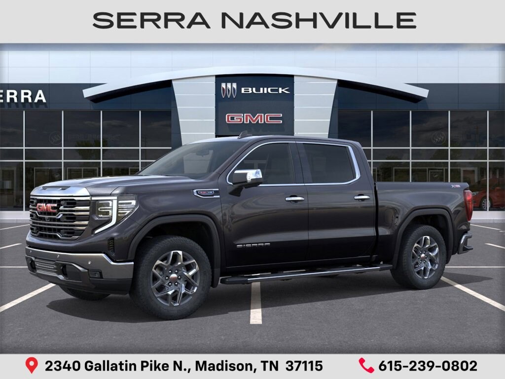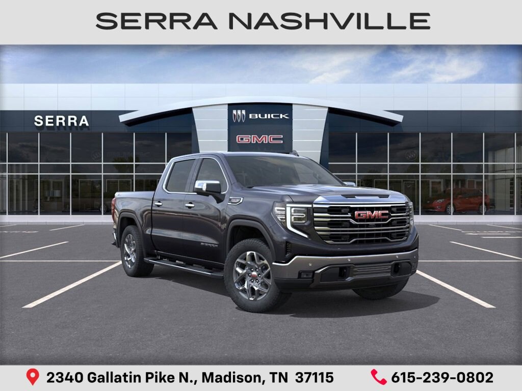$4,375 off MSRP! 2026 GMC Sierra 1500 SLT For sale at Serra GMC Nashville - Serra Nashville has the largest selection of the new GMC Sierra 1500 in Nashville. This vehicle is Titanium Rush Metallic and well equipped with High Capacity Suspension Package, ProGrade Trailering System (Hitch View and In-Vehicle Trailering System App), Sierra Safety Plus Package (HD Surround Vision, Rear Cross Traffic Braking, Rear Pedestrian Detection, Safety Alert Seat, Trailer Camera Provisions, Trailer Side Blind Zone Alert, and Ultrasonic Front & Rear Park Assist), SLT Convenience Package (2 Charge/Data USB Ports Inside Center Console, Electronic Precision Shift, Floor-Mounted Center Console, Front Bucket Seats, Power Rake & Telescoping Steering Column, Premium Bose 7-Speaker Sound System, Ventilated Driver & Front Passenger Seats, and Wireless Charging), SLT Preferred Package (Adaptive Cruise Control, Heated 2nd Row Outboard Seats, Power Sliding Rear Window w/Rear Defogger, and Universal Home Remote), SLT Premium Plus Package (Chrome Wheel To Wheel Assist Steps and Spray-On Pickup Bedliner w/GMC Logo), Standard Suspension Package, Trailering Package (Hitch Guidance), X31 Off-Road & Protection Package (All-Weather Floor Liner (LPO)), X31 Off-Road Package (Dual Exhaust System, Heavy-Duty Air Filter, Hill Descent Control, Off-Road Suspension, and X31 Hard Badge), 10-Speed Automatic, 4WD, Dark Walnut/Slate w/Perf Leather-Appointed Front Outboard Seat Trim, 10-Way Power Driver Seat Adjuster w/Lumbar, 10-Way Power Passenger Seat Adjuster w/Lumbar, 120-Volt Bed Mounted Power Outlet, 120-Volt Interior Power Outlet, 170 Amp Alternator, 2 Charge/Data USB Ports, 2 Type-C Charge-Only Rear USB Ports, 20 Polished Aluminum Wheels, 3.23 Rear Axle Ratio, 4-Wheel Disc Brakes, 6 Speakers, 6-Speaker Audio System Feature, ABS brakes, Air Conditioning, Alloy wheels, AM/FM radio: SiriusXM with 360L, Apple CarPlay/Android Auto, Auto High-beam Headlights, Auto-dimming door mirrors, Auto-dimming Rear-View mirror, Auto-Locking Rear Differential, Automatic Emergency Braking, Automatic temperature control, Auxiliary External Transmission Oil Cooler, Brake assist, Buckle to Drive, Bumpers: chrome, Chrome Header & Chrome Grille Insert Bars, Color-Keyed Carpeting Floor Covering, Compass, Deep-Tinted Glass, Delay-off headlights, Driver door bin, Driver Memory, Driver vanity mirror, Dual front impact airbags, Dual front side impact airbags, Electric Rear-Window Defogger, Electronic Stability Control, Emergency communication system: OnStar, Following Distance Indicator, Forward Collision Alert, Front 40/20/40 Split-Bench Seat, Front anti-roll bar, Front Center Armrest w/Storage, Front dual zone A/C, Front fog lights, Front Frame-Mounted Black Recovery Hooks, Front Pedestrian Braking, Front Rain-Sensing Wipers, Front reading lights, Front wheel independent suspension, Fully automatic headlights, HD Rear Vision Camera, Heated door mirrors, Heated Driver & Front Outboard Passenger Seating, Heated front seats, Heated steering wheel, Illuminated entry, Integrated Trailer Brake Controller, IntelliBeam Automatic High Beam On/Off, Keyless Open & Start, Lane Keep Assist w/Lane Departure Warning, LED Cargo Area Lighting, Low tire pressure warning, Manual Tilt-Wheel & Telescoping Steering Column, Memory seat, Navigation System, Occupant sensing airbag, OnStar Services Capable, Outside temperature display, Overhead airbag, Overhead console, Panic alarm, Passenger door bin, Passenger vanity mirror, Perf Leather-Appointed Front Outboard Seat Trim, Perimeter Lighting, Power Door Locks, Power door mirrors, Power driver seat, Power Front Passenger Windows w/Express Up/Down, Power Front Windows w/Driver Express Up/Down, Serra Value Price includes all rebates and discounts available to everyone. Price does not include tax, title, registration, optional equipment purchased at time of sale or processing fee of $895. $1750 - Purchase Allowance. Exp.