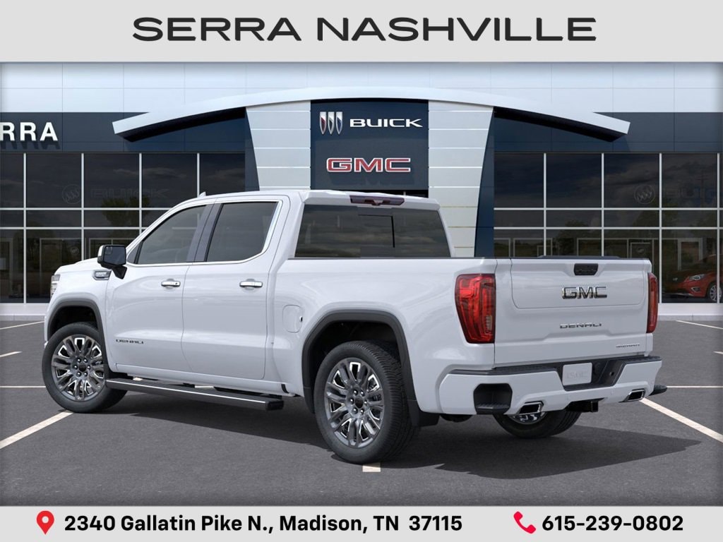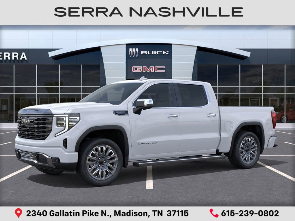$4,021 off MSRP! 2026 GMC Sierra 1500 Denali Ultimate For sale at Serra GMC Nashville - Serra Nashville has the largest selection of the new GMC Sierra 1500 in Nashville. This vehicle is Glacier White Tricoat and well equipped with Trailering Package (Hitch Guidance), 10-Speed Automatic, 4WD, Alpine Umber Leather, 12 Speakers, 120-Volt Bed Mounted Power Outlet, 120-Volt Interior Power Outlet, 16-Way Power Driver Seat Adjuster w/Lumbar, 16-Way Power Passenger Seat Adjuster w/Lumbar, 170 Amp Alternator, 2 Charge/Data USB Ports Inside Center Console, 2 Type-C Charge-Only Rear USB Ports, 2 USB Ports, 3.23 Rear Axle Ratio, 4-Wheel Disc Brakes, ABS brakes, Adaptive suspension, Air Conditioning, Alloy wheels, AM/FM radio: SiriusXM with 360L, Apple CarPlay/Android Auto, Auto High-beam Headlights, Auto-dimming door mirrors, Auto-dimming Rear-View mirror, Auto-Locking Rear Differential, Automatic temperature control, Bed View Camera, Bose Premium Series w/12-Speaker System, Brake assist, Buckle to Drive, Bumpers: body-color, Carbon Fiber Composite Bed, Chrome Recovery Hooks, Color-Keyed Carpeting Floor Covering, Compass, Deep-Tinted Glass, Delay-off headlights, Denali Premium Suspension w/Adaptive Ride Control, Driver door bin, Driver Memory, Driver vanity mirror, Dual Active Exhaust, Dual front impact airbags, Dual front side impact airbags, Electric Rear-Window Defogger, Electronic Stability Control, Emergency communication system: OnStar, Enhanced Automatic Emergency Braking, Floor-Mounted Center Console, Following Distance Indicator, Forward Collision Alert, Front anti-roll bar, Front Bucket Seats, Front Center Armrest, Front dual zone A/C, Front fog lights, Front Pedestrian Braking, Front Prem Floor Liners w/Removable Carpet Insert, Front Rain-Sensing Wipers, Front reading lights, Front wheel independent suspension, Full Grain Leather Seat Trim, Fully automatic headlights, Garage door transmitter, Genuine wood console insert, Genuine wood dashboard insert, Genuine wood door panel insert, HD Surround Vision, Heads-Up Display, Heated 2nd Row Outboard Seats, Heated door mirrors, Heated Driver & Front Outboard Passenger Seating, Heated front seats, Heated rear seats, Heated steering wheel, Heavy-Duty Air Filter, High Gloss Black Header w/Signature Denali Grille, Hill Descent Control, Hitch View, Illuminated entry, In-Vehicle Trailering System App, Integrated Trailer Brake Controller, IntelliBeam Automatic High Beam On/Off, Keyless Open & Start, LED Cargo Area Lighting, Low tire pressure warning, Memory seat, Multicolor 15 Diagonal Head-Up Display, MultiPro Tailgate Audio System by Kicker (LPO), Navigation System, Occupant sensing airbag, OnStar Services Capable, Outside temperature display, Overhead airbag, Overhead console, Panic alarm, Passenger door bin, Passenger vanity mirror, Perimeter Lighting, Power Door Locks, Power door mirrors, Power driver seat, Power Front Passenger Windows w/Express Up/Down, Power Front Windows w/Driver Express Up/Down, Power moonroof, Power passenger seat, Power Rake & Telescoping Steering Column, Power Rear Windows w/Express Down, Power Sliding Rear Window w/Rear Defogger, Power steering, Power Sunroof, Power windows, Push Button Start, Radio data system, Radio: Premium GMC Infotainment Audio System, Rain sensing wipers, Rear Cross Traffic Braking, Rear Pedestrian Detection, Rear Prem Floor Liners w/Removable Carpet Insert, Rear reading lights, Rear seat center armrest, Rear step bumper, Rear Wheelhouse Liners, Rear window defroster, Remote keyless entry, Remote Vehicle Starter System, Safety Alert Seat, Security system, SiriusXM w/360L Trial Subscription, Speed control, Speed-sensing steering, Split folding rear seat, Spray-On Serra Value Price includes all rebates and discounts available to everyone. Price does not include tax, title, registration, optional equipment purchased at time of sale or processing fee of $895. $1750 - Purchase Allowance. Exp.
