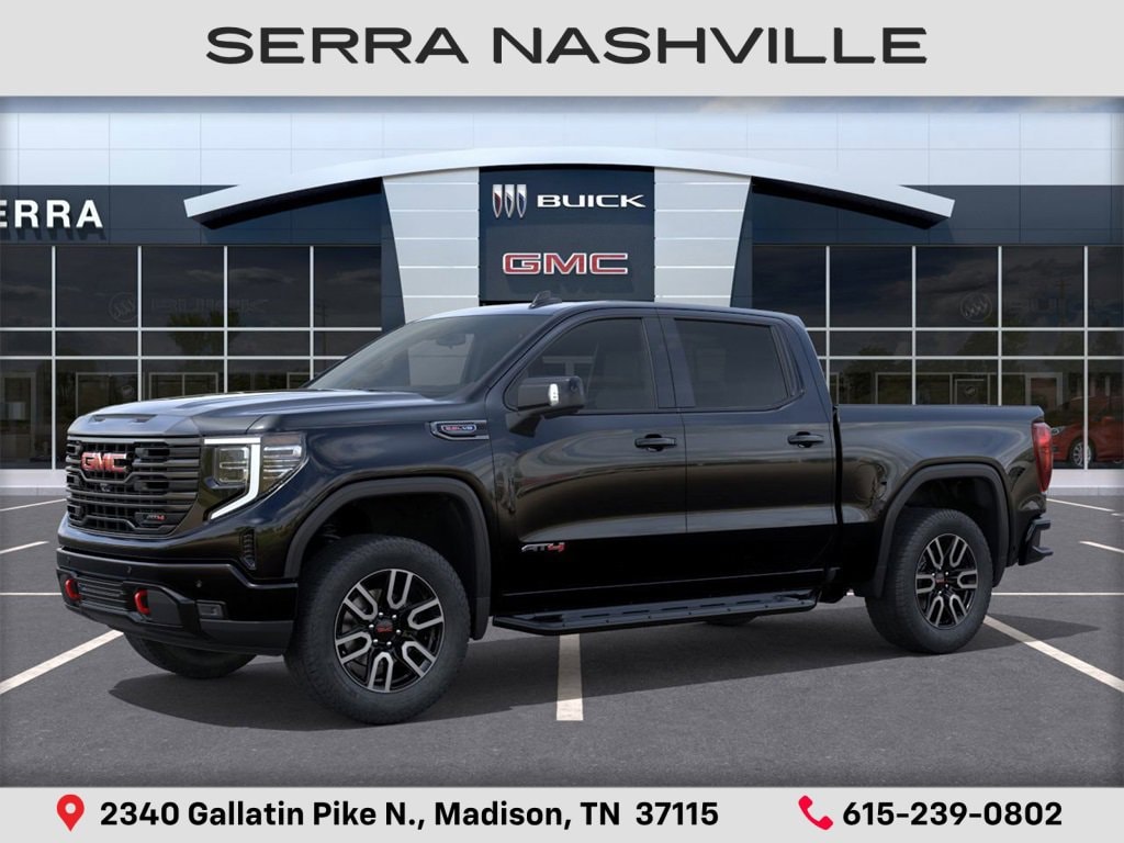 $3,769 off MSRP! 2026 GMC Sierra 1500 AT4 For sale at Serra GMC Nashville - Serra Nashville has the largest selection of the new GMC Sierra 1500 in Nashville. This vehicle is Onyx Black and well equipped with AT4 Preferred Package, AT4 Premium Package, Technology Package (Bed View Camera, Multicolor 15 Diagonal Head-Up Display, and Rear Camera Mirror), Trailering Package (Hitch Guidance), 10-Speed Automatic, 4WD, Jet Black With Kalahari Accents Leather, 10-Way Power Driver Seat Adjuster w/Lumbar, 10-Way Power Passenger Seat Adjuster w/Lumbar, 120-Volt Bed Mounted Power Outlet, 120-Volt Interior Power Outlet, 2 Charge/Data USB Ports Inside Center Console, 2 Type-C Charge-Only Rear USB Ports, 2 USB Ports, 220 Amp Alternator, 3.23 Rear Axle Ratio, 4-Wheel Disc Brakes, 7 Speakers, ABS brakes, Air Conditioning, All-Weather Floor Liners w/AT4 Logo (LPO), Alloy wheels, AM/FM radio: SiriusXM with 360L, Apple CarPlay/Android Auto, Auto High-beam Headlights, Auto-dimming door mirrors, Auto-dimming Rear-View mirror, Auto-Locking Rear Differential, Automatic Emergency Braking, Automatic temperature control, Black Chrome Grille Insert Bars, Black Sport Step (LPO), Block heater, Brake assist, Buckle to Drive, Bumpers: body-color, Color-Keyed Carpeting Floor Covering, Compass, Deep-Tinted Glass, Delay-off headlights, Driver door bin, Driver Memory, Driver vanity mirror, Dual Active Exhaust, Dual front impact airbags, Dual front side impact airbags, Electric Rear-Window Defogger, Electronic Stability Control, Emergency communication system: OnStar, Floor-Mounted Center Console, Following Distance Indicator, Forward Collision Alert, Front anti-roll bar, Front Bucket Seats, Front Center Armrest, Front dual zone A/C, Front fog lights, Front Pedestrian Braking, Front Prem Floor Liners w/Removable Carpet Insert, Front Rain-Sensing Wipers, Front reading lights, Front wheel independent suspension, Fully automatic headlights, HD Surround Vision, Heated 2nd Row Outboard Seats, Heated door mirrors, Heated Driver & Front Outboard Passenger Seating, Heated front seats, Heated rear seats, Heated steering wheel, Heavy-Duty Air Filter, Hill Descent Control, Hitch View, Illuminated entry, In-Vehicle Trailering System App, Integrated Trailer Brake Controller, IntelliBeam Automatic High Beam On/Off, Keyless Open & Start, Lane Keep Assist w/Lane Departure Warning, LED Cargo Area Lighting, Low tire pressure warning, Memory seat, Navigation System, Occupant sensing airbag, Off-Road Suspension, OnStar Services Capable, Outside temperature display, Overhead airbag, Overhead console, Panic alarm, Passenger door bin, Passenger vanity mirror, Perforated Front Leather Seat Trim, Perimeter Lighting, Power Door Locks, Power door mirrors, Power driver seat, Power Front Passenger Windows w/Express Up/Down, Power Front Windows w/Driver Express Up/Down, Power passenger seat, Power Rake & Telescoping Steering Column, Power Rear Windows w/Express Down, Power steering, Power Sunroof, Power windows, Premium Bose 7-Speaker Sound System, Push Button Start, Radio data system, Radio: Premium GMC Infotainment Audio System, Rain sensing wipers, Rear Cross Traffic Braking, Rear Pedestrian Detection, Rear Prem Floor Liners w/Removable Carpet Insert, Rear reading lights, Rear seat center armrest, Rear step bumper, Rear Wheelhouse Liners, Rear window defroster, Red Recovery Hooks, Remote keyless entry, Remote Vehicle Starter System, Safety Alert Seat, Security system, SiriusXM w/360L Trial Subscription, Speed control, Speed-sensing steering, Split folding rear seat, Spray-On Pickup Bedliner w/GMC Logo, Steering Wheel Audio Controls, Steering wheel mounted audio controls, Tachometer, Telescoping steering wheel, The Serra Value Price includes all rebates and discounts available to everyone. Price does not include tax, title, registration, optional equipment purchased at time of sale or processing fee of $895. $1750 - Purchase Allowance. Exp.