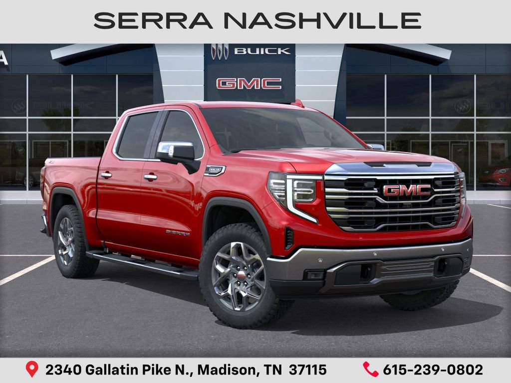 $5,282 off MSRP! 2026 GMC Sierra 1500 SLT For sale at Serra GMC Nashville - Serra Nashville has the largest selection of the new GMC Sierra 1500 in Nashville. This vehicle is Volcanic Red Tintcoat and well equipped with High Capacity Suspension Package, Preferred Equipment Group 4SA (10-Way Power Driver Seat Adjuster with Lumbar, 10-Way Power Passenger Seat Adjuster with Lumbar, 120-Volt Bed Mounted Power Outlet, 120-Volt Interior Power Outlet, 170 Amp Alternator, 2 Charge/Data USB Ports, 2 Type-C Charge-Only Rear USB Ports, 6-Speaker Audio System Feature, Auto-Locking Rear Differential, Auxiliary External Transmission Oil Cooler, Chrome Header and Chrome Grille Insert Bars, Color-Keyed Carpeting Floor Covering, Deep-Tinted Glass, Driver Memory, Electric Rear-Window Defogger, Front 40/20/40 Split-Bench Seat, Front Frame-Mounted Black Recovery Hooks, Front Rain-Sensing Wipers, HD Rear Vision Camera, Heated Driver and Front Outboard Passenger Seating, Integrated Trailer Brake Controller, Keyless Open and Start, LED Cargo Area Lighting, Manual Tilt-Wheel and Telescoping Steering Column, OnStar Services Capable, Perimeter Lighting, Power Door Locks, Power Front Passenger Windows with Express Up/Down, Power Front Windows with Driver Express Up/Down, Power Rear Windows with Express Down, Push Button Start, Rear Wheelhouse Liners, Remote Vehicle Starter System, SiriusXM with 360L Trial Subscription, Steering Wheel Audio Controls, Theft Deterrent System (unauthorized Entry), Wheels: 18 x 8.5 6-Spoke Machined Aluminum, and Wi-Fi Hotspot Capable), ProGrade Trailering System (Hitch View and in-Vehicle Trailering System App), Sierra Safety Plus Package (HD Surround Vision, Rear Cross Traffic Braking, Rear Pedestrian Detection, Safety Alert Seat, Trailer Camera Provisions, Trailer Side Blind Zone Alert, and Ultrasonic Front and Rear Park Assist), SLT Convenience Package (2 Charge/Data USB Ports Inside Center Console, Electronic Precision Shift, Floor-Mounted Center Console, Front Bucket Seats, Power Rake and Telescoping Steering Column, Premium Bose 7-Speaker Sound System, Ventilated Driver and Front Passenger Seats, and Wireless Charging), SLT Preferred Package (Adaptive Cruise Control, Heated 2nd Row Outboard Seats, Power Sliding Rear Window with Rear Defogger, and Universal Home Remote), SLT Premium Plus Package (Chrome Wheel to Wheel Assist Steps and Spray-on Pickup Bedliner with GMC Logo), Standard Suspension Package, Trailering Package (Hitch Guidance), X31 Off-Road Package (Dual Exhaust System, Heavy-Duty Air Filter, Hill Descent Control, Off-Road Suspension, and X31 Hard Badge), 10-Speed Automatic, 4WD, Dark Walnut/Slate Leather, 20 Polished Aluminum Wheels, 3.23 Rear Axle Ratio, 4-Wheel Disc Brakes, 6 Speakers, ABS brakes, Air Conditioning, Alloy wheels, AM/FM radio: SiriusXM with 360L, Apple CarPlay/Android Auto, Auto High-beam Headlights, Auto-dimming door mirrors, Auto-dimming Rear-View mirror, Automatic Emergency Braking, Automatic temperature control, Brake assist, Buckle to Drive, Bumpers: chrome, Compass, Delay-off headlights, Driver door bin, Driver vanity mirror, Dual front impact airbags, Dual front side impact airbags, Electronic Stability Control, Emergency communication system: OnStar, Following Distance Indicator, Forward Collision Alert, Front anti-roll bar, Front Center Armrest w/Storage, Front dual zone A/C, Front fog lights, Front License Plate Kit, Front Pedestrian Braking, Front Premium Floor Liners with Removable Carpet Insert, Front reading lights, Front wheel independent suspension, Fully automatic headlights, Heated door mirrors, Heated front seats, Heated steering wheel, Illuminated entry, IntelliBeam Automatic High Beam on/Off, Serra Value Price includes all rebates and discounts available to everyone. Price does not include tax, title, registration, optional equipment purchased at time of sale or processing fee of $895. $1500 - Bonus Cash. Exp. 04/30/2026