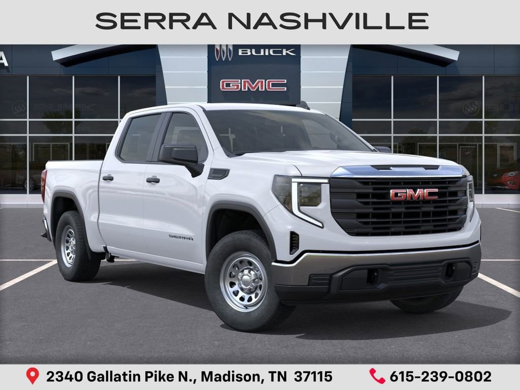 $4,250 off MSRP! 2026 GMC Sierra 1500 Pro For sale at Serra GMC Nashville - Serra Nashville has the largest selection of the new GMC Sierra 1500 in Nashville. This vehicle is Summit White and well equipped with Convenience Package (Deep-Tinted Glass, Electric Rear-Window Defogger, EZ Lift Power Lock and Release Tailgate, Heated Power-Adjustable Outside Mirrors, and LED Cargo Area Lighting), Pro Value Package, Standard Suspension Package, Trailering Package (Hitch Guidance), 10-Speed Automatic, Jet Black Vinyl, 120-Volt Bed Mounted Power Outlet, 120-Volt Interior Power Outlet, 2 Charge/Data USB Ports, 2 Type-C Charge-Only Rear USB Ports, 3.42 Rear Axle Ratio, 4-Way Manual Driver Seat Adjuster, 4-Way Manual Passenger Seat Adjuster, 4-Wheel Disc Brakes, 6 Speakers, 6-Speaker Audio System Feature, ABS brakes, Air Conditioning, AM/FM radio, Apple CarPlay/Android Auto, Auto High-beam Headlights, Auto-Locking Rear Differential, Automatic Emergency Braking, Brake assist, Buckle to Drive, Bumpers: chrome, Chrome Header with Flat Black Grille Insert Bars, Compass, Delay-off headlights, Driver door bin, Dual front impact airbags, Dual front side impact airbags, Electronic Stability Control, Emergency communication system: OnStar, Following Distance Indicator, Forward Collision Alert, Front 40/20/40 Split-Bench Seat, Front anti-roll bar, Front Center Armrest w/Storage, Front Frame-Mounted Black Recovery Hooks, Front Pedestrian Braking, Front reading lights, Front wheel independent suspension, Fully automatic headlights, HD Rear Vision Camera, Illuminated entry, Integrated Trailer Brake Controller, IntelliBeam Automatic High Beam on/Off, Lane Keep Assist with Lane Departure Warning, Low tire pressure warning, Occupant sensing airbag, OnStar Services Capable, Outside temperature display, Overhead airbag, Overhead console, Panic alarm, Passenger door bin, Passenger vanity mirror, Power Door Locks, Power Front Windows with Driver Express Up/Down, Power Front Windows with Passenger Express Down, Power Rear Windows with Express Down, Power steering, Power windows, Push Button Start, Radio data system, Radio: GMC Infotainment Audio System, Rear reading lights, Rear step bumper, Remote Keyless Entry, Remote keyless entry, Solar Absorbing Tinted Glass, Speed control, Speed-sensing steering, Split folding rear seat, Tachometer, Tilt steering wheel, Traction control, Trip computer, Variably intermittent wipers, Vinyl Seat Trim, Voltmeter, Wheels: 17 x 8 Silver Painted Steel, Wi-Fi Hotspot Capable, and Wireless Apple CarPlay/Wireless Android Auto.