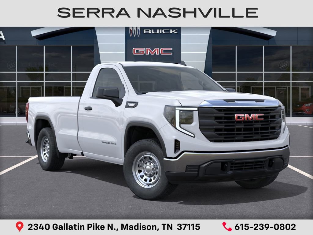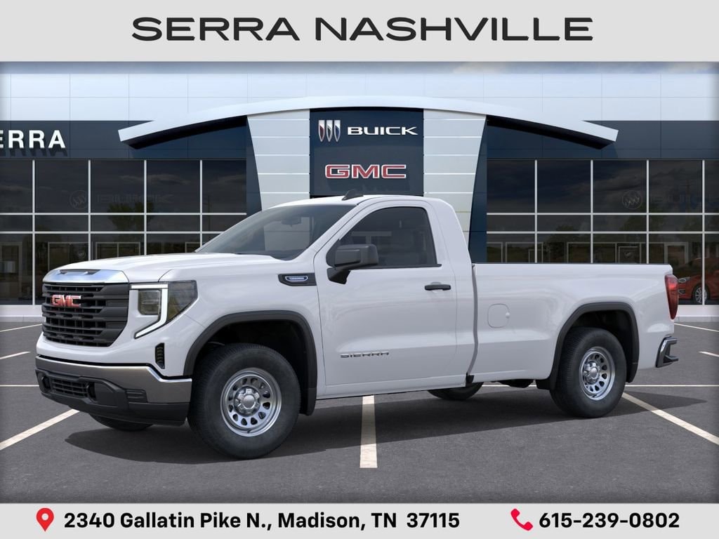 $3,500 off MSRP! Priced below KBB Fair Purchase Price! 2026 GMC Sierra 1500 Pro For sale at Serra GMC Nashville - Serra Nashville has the largest selection of the new GMC Sierra 1500 in Nashville. This vehicle is Summit White and well equipped with Convenience Package (Deep-Tinted Glass, Electric Rear-Window Defogger, EZ Lift Power Lock and Release Tailgate, and LED Cargo Area Lighting), Pro Value Package, Standard Suspension Package, Trailering Package (Hitch Guidance), 8-Speed Automatic, Jet Black Vinyl, 120-Volt Bed Mounted Power Outlet, 120-Volt Interior Power Outlet, 2 Charge/Data USB Ports, 2 Speakers, 2-Speaker Audio System Feature, 220 Amp Alternator, 3.42 Rear Axle Ratio, 4-Way Manual Driver Seat Adjuster, 4-Way Manual Passenger Seat Adjuster, 4-Wheel Disc Brakes, ABS brakes, Air Conditioning, AM/FM radio, Apple CarPlay/Android Auto, Auto High-beam Headlights, Auto-Locking Rear Differential, Automatic Emergency Braking, Brake assist, Buckle to Drive, Bumpers: chrome, Chrome Header with Flat Black Grille Insert Bars, Compass, Delay-off headlights, Driver door bin, Dual front impact airbags, Dual front side impact airbags, Electronic Stability Control, Emergency communication system: OnStar, Following Distance Indicator, Forward Collision Alert, Front 40/20/40 Split-Bench Seat, Front anti-roll bar, Front Center Armrest w/Storage, Front Frame-Mounted Black Recovery Hooks, Front Pedestrian Braking, Front reading lights, Front wheel independent suspension, Fully automatic headlights, HD Rear Vision Camera, Heated door mirrors, Illuminated entry, Integrated Trailer Brake Controller, IntelliBeam Automatic High Beam on/Off, Lane Keep Assist with Lane Departure Warning, Low tire pressure warning, Occupant sensing airbag, OnStar Services Capable, Outside temperature display, Overhead airbag, Overhead console, Panic alarm, Passenger door bin, Passenger vanity mirror, Power Door Locks, Power door mirrors, Power Front Windows with Driver Express Up/Down, Power Front Windows with Passenger Express Down, Power steering, Power windows, Push Button Start, Radio data system, Radio: GMC Infotainment Audio System, Rear reading lights, Rear step bumper, Remote Keyless Entry, Remote keyless entry, Solar Absorbing Tinted Glass, Speed control, Speed-sensing steering, Tachometer, Tilt steering wheel, Traction control, Trip computer, Variably intermittent wipers, Vinyl Seat Trim, Voltmeter, Wheels: 17 x 8 Silver Painted Steel, Wi-Fi Hotspot Capable, and Wireless Apple CarPlay/Wireless Android Auto.
