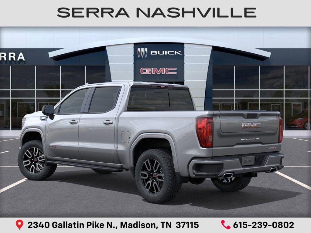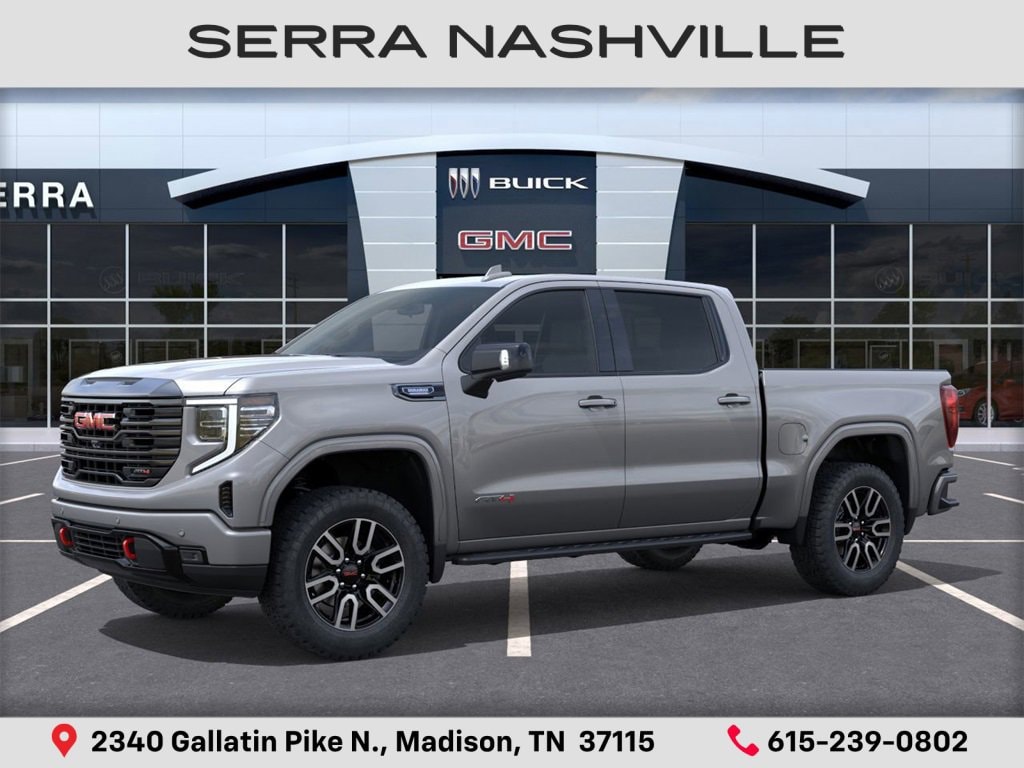 $5,250 off MSRP! 2026 GMC Sierra 1500 AT4 For sale at Serra GMC Nashville - Serra Nashville has the largest selection of the new GMC Sierra 1500 in Nashville. This vehicle is Sterling Metallic and well equipped with AT4 Preferred Package (Power Sliding Rear Window w/Rear Defogger and Universal Home Remote), AT4 Premium Package (Off-Road High Clearance Step (LPO)), Preferred Equipment Group 4SB (120-Volt Bed Mounted Power Outlet, 120-Volt Interior Power Outlet, 2 Charge/Data USB Ports Inside Center Console, 2 Type-C Charge-Only Rear USB Ports, 2 USB Ports, 220 Amp Alternator, Auto-Locking Rear Differential, Black Chrome Grille Insert Bars, Color-Keyed Carpeting Floor Covering, Deep-Tinted Glass, Electric Rear-Window Defogger, Floor-Mounted Center Console, Front Prem Floor Liners w/Removable Carpet Insert, Front Rain-Sensing Wipers, HD Surround Vision, Heated 2nd Row Outboard Seats, Heated Driver & Front Outboard Passenger Seating, Heavy-Duty Air Filter, Hill Descent Control, Hitch View, In-Vehicle Trailering System App, Integrated Trailer Brake Controller, Keyless Open & Start, LED Cargo Area Lighting, OnStar Services Capable, Perimeter Lighting, Power Door Locks, Power Front Passenger Windows w/Express Up/Down, Power Front Windows w/Driver Express Up/Down, Power Rake & Telescoping Steering Column, Power Rear Windows w/Express Down, Premium Bose 7-Speaker Sound System, Push Button Start, Rear Cross Traffic Braking, Rear Pedestrian Detection, Rear Prem Floor Liners w/Removable Carpet Insert, Rear Wheelhouse Liners, Red Recovery Hooks, Remote Vehicle Starter System, SiriusXM w/360L Trial Subscription, Spray-On Pickup Bedliner w/GMC Logo, Steering Wheel Audio Controls, Theft Deterrent System (Unauthorized Entry), Trailer Camera Provisions, Trailer Side Blind Zone Alert, Ultrasonic Front & Rear Park Assist, Ventilated Driver & Front Passenger Seats, Wi-Fi Hotspot Capable, and Wireless Charging), Technology Package (Bed View Camera, Multicolor 15 Diagonal Head-Up Display, and Rear Camera Mirror), Trailering Package (Hitch Guidance), 10-Speed Automatic, 4WD, Jet Black With Kalahari Accents Leather, 10-Way Power Driver Seat Adjuster w/Lumbar, 10-Way Power Passenger Seat Adjuster w/Lumbar, 3.23 Rear Axle Ratio, 4-Wheel Disc Brakes, 7 Speakers, ABS brakes, Air Conditioning, Alloy wheels, AM/FM radio: SiriusXM with 360L, Apple CarPlay/Android Auto, Auto High-beam Headlights, Auto-dimming door mirrors, Auto-dimming Rear-View mirror, Automatic Emergency Braking, Automatic temperature control, Block heater, Body Color Wheel Arch Moldings (LPO), Brake assist, Buckle to Drive, Bumpers: body-color, Compass, Delay-off headlights, Driver door bin, Driver Memory, Driver vanity mirror, Dual front impact airbags, Dual front side impact airbags, Electronic Stability Control, Emergency communication system: OnStar, Engine Block Heater, Following Distance Indicator, Forward Collision Alert, Front anti-roll bar, Front Bucket Seats, Front Center Armrest, Front dual zone A/C, Front fog lights, Front Pedestrian Braking, Front reading lights, Front wheel independent suspension, Fully automatic headlights, Heated door mirrors, Heated front seats, Heated rear seats, Heated steering wheel, Illuminated entry, IntelliBeam Automatic High Beam On/Off, Lane Keep Assist w/Lane Departure Warning, Low tire pressure warning, Memory seat, Navigation System, Occupant sensing airbag, Off-Road Suspension, Outside temperature display, Overhead airbag, Overhead console, Panic alarm, Passenger door bin, Passenger vanity mirror, Perforated Front Leather Seat Trim, Power door mirrors, Power driver seat, Power passenger seat, Power steering, Power Sunroof, Power windows, Radio data system, Radio: Premiu Serra Value Price includes all rebates and discounts available to everyone. Price does not include tax, title, registration, optional equipment purchased at time of sale or processing fee of $895. $1750 - Purchase Allowance. Exp.