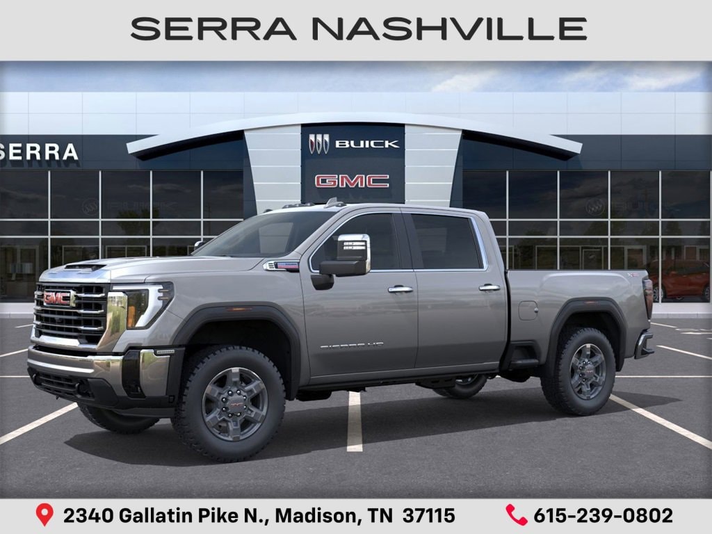 $4,160 off MSRP! 2026 GMC Sierra 2500HD SLT For sale at Serra GMC Nashville - Serra Nashville has the largest selection of the new GMC Sierra 2500HD in Nashville. This vehicle is Sterling Metallic and well equipped with Preferred Equipment Group 4SA (10-Way Power Driver Seat Adjuster with Lumbar, 10-Way Power Passenger Seat Adjuster with Lumbar, 120-Volt Bed Mounted Power Outlet, 120-Volt Instrument Panel Power Outlet, 2 Charge-Only Rear USB Ports, 2 Charge/Data USB Ports, 2-Speed Active Transfer Case, 6-Speaker Audio System Feature, Chrome Surround Grille with Chrome Insert Bars, Deep-Tinted Glass, Driver Memory, Electric Rear-Window Defogger, Front 40/20/40 Split-Bench Seats, Front Rain-Sensing Wipers, Heated Driver and Front Outboard Passenger Seats, Keyless Open and Start, LED Cargo Area Lighting, Manual Tilt-Wheel/Telescoping Steering Column, OnStar Services Capable, Power Front Passenger Windows with Express Up/Down, Push Button Start, Rear Wheelhouse Liners, Remote Vehicle Starter System, SiriusXM with 360L Trial Subscription, Steering Wheel Audio Controls, Unauthorized Entry Theft-Deterrent System, and Wireless Phone Projection), SLT Convenience Package (2 Charge/Data USB Ports Inside Center Console, Bose Premium 7-Speaker Sound System, Floor-Mounted Center Console, Front Bucket Seats, LED Smoked Amber Roof Marker Lamps, Ventilated Driver and Front Passenger Seats, and Wireless Charging), Suspension Package, X31 Off-Road and Protection Package (All-Weather Floor Liners, Spray-on Pickup Bedliner with GMC Logo, and Wheels: 20 Bright Face with Dark Painted Pockets), X31 Off-Road Package (Hill Descent Control and Off-Road Suspension), 10-Speed Automatic, 4WD, Jet Black w/Perforated Leather-Appointed Front Outboard Seat Trim, 18 Machined Aluminum Wheels, 220-Amp Alternator, 4-Wheel Disc Brakes, 6 Speakers, ABS brakes, Air Conditioning, Alloy wheels, AM/FM radio: SiriusXM with 360L, Apple CarPlay/Android Auto, Auto High-beam Headlights, Auto-dimming door mirrors, Auto-dimming Rear-View mirror, Automatic Emergency Braking, Automatic temperature control, Brake assist, Buckle to Drive, Bumpers: chrome, Compass, Delay-off headlights, Driver door bin, Driver vanity mirror, Dual front impact airbags, Dual front side impact airbags, Electronic Stability Control, Emergency communication system: OnStar, Engine Block Heater, Exhaust Brake, Following Distance Indicator, Forward Collision Alert, Front anti-roll bar, Front Center Armrest w/Storage, Front dual zone A/C, Front fog lights, Front License Plate Kit, Front Pedestrian Braking, Front reading lights, Front wheel independent suspension, Fully automatic headlights, Heated door mirrors, Heated front seats, Heated steering wheel, Heavy-Duty 80 Amp Battery, Hitch Guidance with Hitch View, Illuminated entry, in-Vehicle Trailering System App, IntelliBeam Automatic High Beam on/Off, Lane Departure Warning System, Low tire pressure warning, Memory seat, Occupant sensing airbag, Outside temperature display, Overhead airbag, Overhead console, Panic alarm, Passenger door bin, Passenger vanity mirror, Perforated Leather-Appointed Front Outboard Seat Trim, Pickup Box, Power door mirrors, Power driver seat, Power passenger seat, Power steering, Power windows, Premium audio system: Premium GMC Infotainment System, Radio: AM/FM Stereo with Premium GMC Infotainment System, Rain sensing wipers, Rear reading lights, Rear seat center armrest, Rear step bumper, Rear window defroster, Remote keyless entry, Security system, Speed control, Speed-sensing steering, Split folding rear seat, Steering wheel mounted audio controls, Tachometer, Telescoping steering wheel, Tilt steering wheel, Traction control, Trip computer, Turn signal indicator mirrors, Variably interm Serra Value Price includes all rebates and discounts available to everyone. Price does not include tax, title, registration, optional equipment purchased at time of sale or processing fee of $89