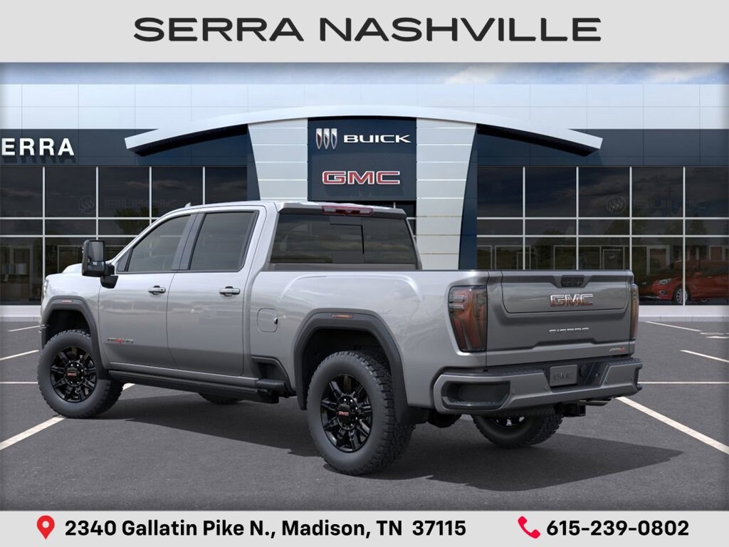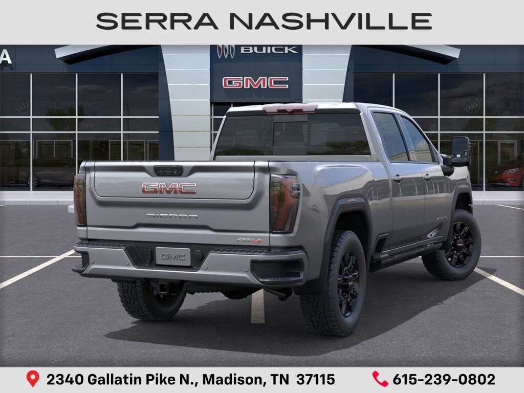 $2,309 off MSRP! 2026 GMC Sierra 2500HD AT4 For sale at Serra GMC Nashville - Serra Nashville has the largest selection of the new GMC Sierra 2500HD in Nashville. This vehicle is Sterling Metallic and well equipped with AT4 Preferred Package (LED Smoked Amber Roof Marker Lamps), AT4 Premium Plus Package (Off-Road High Clearance Step (LPO) and Power Sunroof), Gooseneck/5th Wheel Prep Package, Hitch Package (LPO), Technology Package, X31 Off-Road Package (Hill Descent Control), 10-Speed Automatic, 4WD, Jet Black w/Kalahari Accents w/Perforated Leather-Appointed Front Seat Trim, 10-Way Power Driver Seat Adjuster w/Lumbar, 10-Way Power Passenger Seat Adjuster w/Lumbar, 120-Volt Bed Mounted Power Outlet, 120-Volt Instrument Panel Power Outlet, 1st & 2nd Rows All-Weather Floor Liners (LPO), 2 Charge-Only Rear USB Ports, 2 Charge/Data USB Ports Inside Center Console, 2 USB Ports, 2-Speed Active Transfer Case, 4-Wheel Disc Brakes, 7 Speakers, ABS brakes, Air Conditioning, Alloy wheels, AM/FM radio: SiriusXM with 360L, Apple CarPlay/Android Auto, Auto High-beam Headlights, Auto-dimming door mirrors, Auto-dimming Rear-View mirror, Automatic Emergency Braking, Automatic temperature control, Bed View Camera w/2 Trailer Camera Provisions, Bose Premium 7-Speaker Sound System, Brake assist, Buckle to Drive, Bumpers: body-color, Compass, Deep-Tinted Glass, Delay-off headlights, Driver door bin, Driver Memory, Driver vanity mirror, Dual front impact airbags, Dual front side impact airbags, Electric Rear-Window Defogger, Electronic Stability Control, Emergency communication system: OnStar, Floor-Mounted Center Console, Following Distance Indicator, Forward Collision Alert, Front anti-roll bar, Front Bucket Seats, Front Center Armrest, Front dual zone A/C, Front fog lights, Front Pedestrian Braking, Front Prem Floor Liners w/Removable Carpet Insert, Front Rain-Sensing Wipers, Front reading lights, Front wheel independent suspension, Fully automatic headlights, Gloss Black Header Grille & Grille Insert Bars, HD Surround Vision, Heated 2nd Row Outboard Seats, Heated door mirrors, Heated Driver & Front Outboard Passenger Seats, Heated front seats, Heated rear seats, Heated steering wheel, Heavy-Duty 80 Amp Battery, Hitch Guidance w/Hitch View, Illuminated entry, In-Vehicle Trailering System App, IntelliBeam Automatic High Beam On/Off, Keyless Open & Start, Lane Departure Warning System, LED Cargo Area Lighting, Low tire pressure warning, Manual Tilt-Wheel/Telescoping Steering Column, Memory seat, Occupant sensing airbag, Off-Road Suspension, OnStar Services Capable, Outside temperature display, Overhead airbag, Overhead console, Panic alarm, Passenger door bin, Passenger vanity mirror, Perforated Leather-Appointed Front Seat Trim, Pickup Box, Power door mirrors, Power driver seat, Power Front Passenger Windows w/Express Up/Down, Power passenger seat, Power steering, Power windows, Premium audio system: Premium GMC Infotainment System, Push Button Start, Radio: AM/FM w/Premium GMC Infotainment System, Rain sensing wipers, Rear Cross Traffic Alert, Rear Prem Floor Liners w/Removable Carpet Insert, Rear reading lights, Rear seat center armrest, Rear step bumper, Rear Wheelhouse Liners, Rear window defroster, Remote keyless entry, Remote Vehicle Starter System, Safety Alert Seat, Security system, SiriusXM w/360L Trial Subscription, Speed control, Speed-sensing steering, Split folding rear seat, Spray-On Pickup Bedliner w/GMC Logo, Steering Wheel Audio Controls, Steering wheel mounted audio controls, Tachometer, Telescoping steering wheel, Tilt steering wheel, Traction control, Trailer Cam Provisions & Trailer Viewing Software, Trailer Side Blind Zone Alert, Trip computer, Turn signal indicator mirrors, Ultrasonic Serra Value Price includes all rebates and discounts available to everyone. Price does not include tax, title, registration, optional equipment purchased at time of sale or processing fee of $