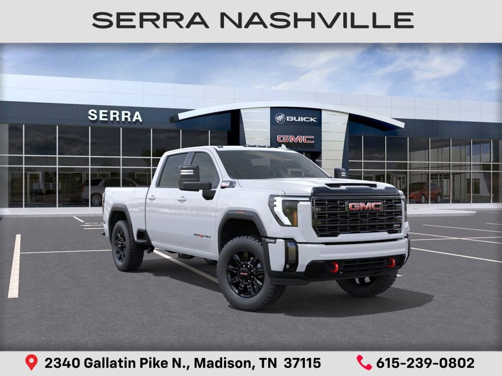 $3,480 off MSRP! 2026 GMC Sierra 2500HD AT4 For sale at Serra GMC Nashville - Serra Nashville has the largest selection of the new GMC Sierra 2500HD in Nashville. This vehicle is Summit White and well equipped with AT4 Preferred Package (LED Smoked Amber Roof Marker Lamps, Power Sliding Rear Window w/Defogger, and Universal Home Remote), Gooseneck/5th Wheel Prep Package, X31 Off-Road Package (Hill Descent Control), 10-Speed Automatic, 4WD, Jet Black With Kalahari Accents Leather, 10-Way Power Driver Seat Adjuster w/Lumbar, 10-Way Power Passenger Seat Adjuster w/Lumbar, 120-Volt Bed Mounted Power Outlet, 120-Volt Instrument Panel Power Outlet, 2 Charge-Only Rear USB Ports, 2 Charge/Data USB Ports Inside Center Console, 2 USB Ports, 2-Speed Active Transfer Case, 4-Wheel Disc Brakes, 7 Speakers, ABS brakes, Air Conditioning, Alloy wheels, AM/FM radio: SiriusXM with 360L, Apple CarPlay/Android Auto, Auto High-beam Headlights, Auto-dimming door mirrors, Auto-dimming Rear-View mirror, Automatic Emergency Braking, Automatic temperature control, Bed View Camera w/2 Trailer Camera Provisions, Bose Premium 7-Speaker Sound System, Brake assist, Buckle to Drive, Bumpers: body-color, Compass, Deep-Tinted Glass, Delay-off headlights, Driver door bin, Driver Memory, Driver vanity mirror, Dual front impact airbags, Dual front side impact airbags, Electric Rear-Window Defogger, Electronic Stability Control, Emergency communication system: OnStar, Floor-Mounted Center Console, Following Distance Indicator, Forward Collision Alert, Front anti-roll bar, Front Bucket Seats, Front Center Armrest, Front dual zone A/C, Front fog lights, Front Pedestrian Braking, Front Prem Floor Liners w/Removable Carpet Insert, Front Rain-Sensing Wipers, Front reading lights, Front wheel independent suspension, Fully automatic headlights, Gloss Black Header Grille & Grille Insert Bars, HD Surround Vision, Heated 2nd Row Outboard Seats, Heated door mirrors, Heated Driver & Front Outboard Passenger Seats, Heated front seats, Heated rear seats, Heated steering wheel, Heavy-Duty 80 Amp Battery, Hitch Guidance w/Hitch View, Illuminated entry, In-Vehicle Trailering System App, IntelliBeam Automatic High Beam On/Off, Keyless Open & Start, Lane Departure Warning System, LED Cargo Area Lighting, Low tire pressure warning, Manual Tilt-Wheel/Telescoping Steering Column, Memory seat, Occupant sensing airbag, Off-Road Suspension, OnStar Services Capable, Outside temperature display, Overhead airbag, Overhead console, Panic alarm, Passenger door bin, Passenger vanity mirror, Perforated Leather-Appointed Front Seat Trim, Pickup Box, Power door mirrors, Power driver seat, Power Front Passenger Windows w/Express Up/Down, Power passenger seat, Power steering, Power windows, Push Button Start, Radio: AM/FM w/Premium GMC Infotainment System, Rain sensing wipers, Rear Cross Traffic Alert, Rear Prem Floor Liners w/Removable Carpet Insert, Rear reading lights, Rear seat center armrest, Rear step bumper, Rear Wheelhouse Liners, Rear window defroster, Remote keyless entry, Remote Vehicle Starter System, Safety Alert Seat, Security system, SiriusXM w/360L Trial Subscription, Speed control, Speed-sensing steering, Split folding rear seat, Spray-On Pickup Bedliner w/GMC Logo, Steering Wheel Audio Controls, Steering wheel mounted audio controls, Tachometer, Telescoping steering wheel, Tilt steering wheel, Traction control, Trailer Cam Provisions & Trailer Viewing Software, Trailer Side Blind Zone Alert, Trip computer, Turn signal indicator mirrors, Ultrasonic Front & Rear Park Assist, Unauthorized Entry Theft-Deterrent System, Variably intermittent wipers, Ventilated Driver & Front Passenger Seats, Ventilated front seats, Voltmeter, Wheels: 20 High Gloss Serra Value Price includes all rebates and discounts available to everyone. Price does not include tax, title, registration, optional equipment purchased at time of sale or processing fee of $8