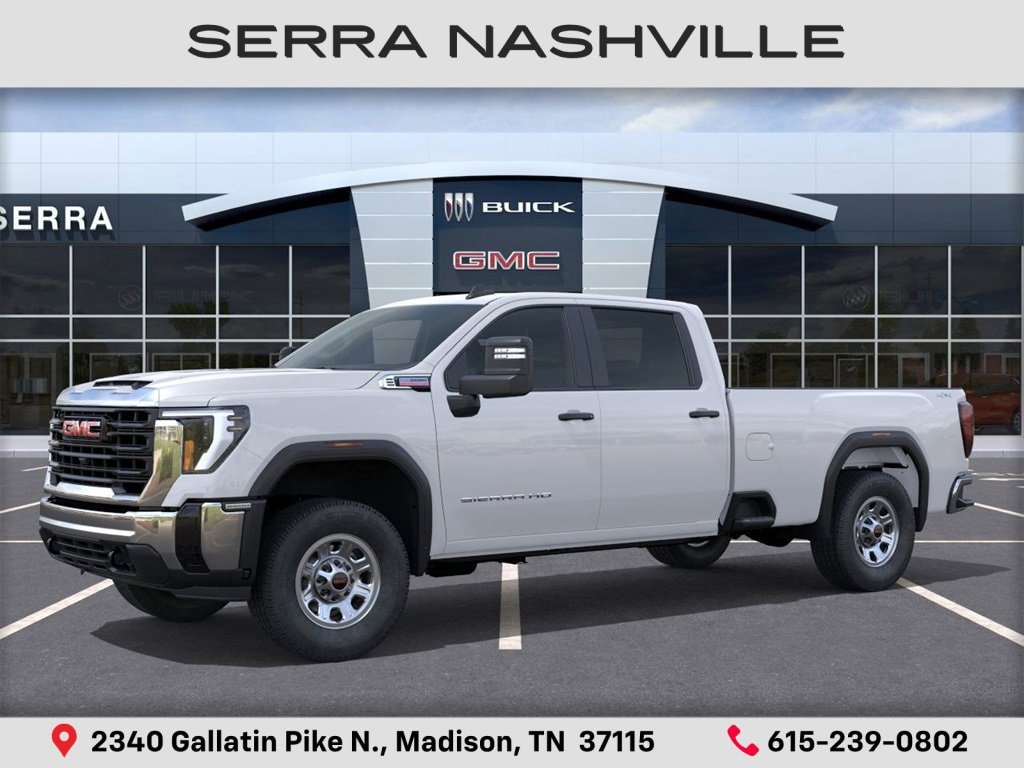 2026 GMC Sierra 2500HD Pro For sale at Serra GMC Nashville - Serra Nashville has the largest selection of the new GMC Sierra 2500HD in Nashville. This vehicle is Summit White and well equipped with Convenience Package (Deep-Tinted Glass, Electric Rear-Window Defogger, EZ Lift Power Lock and Release Tailgate, and LED Cargo Area Lighting), Snow Plow Prep/Camper Package (220-Amp Alternator), Suspension Package, 10-Speed Automatic, 4WD, Jet Black Vinyl, 120-Volt Instrument Panel Power Outlet, 17 Machined Aluminum Wheels, 2 Charge/Data USB Ports, 2-Speed Electronic Shift Transfer Case, 3.73 Rear Axle Ratio, 4-Way Manual Driver Seat Adjuster, 4-Way Manual Passenger Seat Adjuster, 4-Wheel Disc Brakes, 6 Speakers, 6-Speaker Audio System Feature, 700 Cold-Cranking Amps/70 Amp-Hr Auxiliary Battery, ABS brakes, Air Conditioning, AM/FM radio, Apple CarPlay/Android Auto, Auto High-beam Headlights, Auto-Dimming Inside Rear-View Mirror, Automatic Emergency Braking, Brake assist, Buckle to Drive, Bumpers: chrome, Chrome Grille with Flat Black Grille Insert Bars, Compass, Delay-off headlights, Driver door bin, Dual front impact airbags, Dual front side impact airbags, Electronic Stability Control, Emergency communication system: OnStar, Following Distance Indicator, Forward Collision Alert, Front 40/20/40 Split-Bench Seats, Front anti-roll bar, Front Center Armrest w/Storage, Front Pedestrian Braking, Front reading lights, Front wheel independent suspension, Fully automatic headlights, Heavy-Duty 80 Amp Battery, Illuminated entry, IntelliBeam Automatic High Beam on/Off, Lane Departure Warning System, LED Smoked Amber Roof Marker Lamps, Low tire pressure warning, Occupant sensing airbag, OnStar Services Capable, Outside temperature display, Overhead airbag, Overhead console, Panic alarm, Passenger door bin, Passenger vanity mirror, Perimeter Lighting, Pickup Box, Power steering, Power windows, Power-Adjustable Black Outside Mirrors, Premium audio system: GMC Infotainment System, Push Button Start, Radio: AM/FM with GMC Infotainment System, Rear reading lights, Rear step bumper, Remote Keyless Entry, Remote keyless entry, SiriusXM Trial Subscription, Solar Absorbing Tinted Glass, Speed control, Split folding rear seat, Tachometer, Tilt steering wheel, Traction control, Trip computer, Upfitter Switch Kit (5), Variably intermittent wipers, Vinyl Seat Trim, Voltmeter, Wheels: 17 Silver Painted Steel, and Wireless Phone Projection.