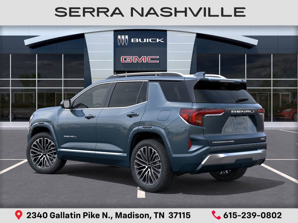 $2,111 off MSRP! 2026 GMC Terrain Denali For sale at Serra GMC Nashville - Serra Nashville has the largest selection of the new GMC Terrain in Nashville. This vehicle is Downpour Metallic and well equipped with Floor Liner Package (LPO) (All-Weather Cargo Mat (LPO), Front All-Weather Floor Liners (LPO), and Second Row All-Weather Mat (LPO)), Preferred Equipment Group 5SB, AWD, 2-Way Power Driver Lumbar Seat Adjuster, 3.47 Final Drive Axle Ratio, 4-Wheel Disc Brakes, 6 Speakers, 6-Speaker Audio System Feature, 8-Way Power Driver Seat Adjuster, ABS brakes, Air Conditioning, Alloy wheels, AM/FM radio: SiriusXM, Auto High-beam Headlights, Automatic temperature control, Brake assist, Bumpers: body-color, Compass, Delay-off headlights, Driver & Front Passenger Heated Seats, Driver door bin, Driver vanity mirror, Dual front impact airbags, Dual front side impact airbags, Electronic Stability Control, Emergency communication system: OnStar and GMC connected services capable, Four wheel independent suspension, Front anti-roll bar, Front Bucket Seats, Front Center Armrest, Front dual zone A/C, Front fog lights, Front reading lights, Fully automatic headlights, Garage door transmitter, Heated door mirrors, Heated front seats, Heated rear seats, Heated steering wheel, Illuminated entry, Low tire pressure warning, Memory seat, Navigation System, Occupant sensing airbag, Outside temperature display, Overhead airbag, Overhead console, Panic alarm, Panoramic Power Sunroof w/Sunshade, Passenger door bin, Passenger vanity mirror, Perforated Leather-Appointed Seat Trim, Power door mirrors, Power driver seat, Power Liftgate, Power passenger seat, Power steering, Power windows, Radio data system, Radio: Premium GMC Infotainment System, Rain sensing wipers, Rear air conditioning, Rear anti-roll bar, Rear seat center armrest, Rear window defroster, Rear window wiper, Remote keyless entry, Security system, SiriusXM w/360L Trial Subscription, Speed control, Speed-sensing steering, Split folding rear seat, Spoiler, Sport steering wheel, Steering wheel mounted audio controls, Tachometer, Telescoping steering wheel, Tilt steering wheel, Traction control, Trip computer, Variably intermittent wipers, Ventilated Driver Seat, Ventilated Front Passenger Seat, Ventilated front seats, Wheels: 19 x 7.5 Midnight Silver Aluminum, Wheels: 20 x 8 After Midnight Aluminum, and Wireless Apple CarPlay/Wireless Android Auto.