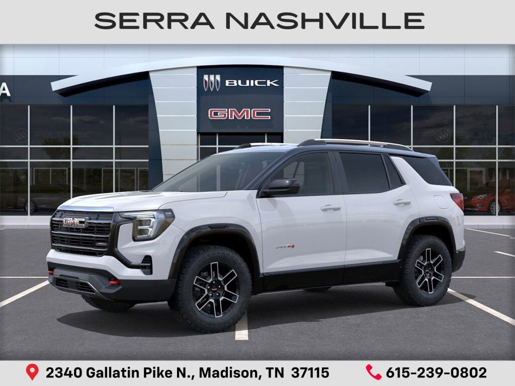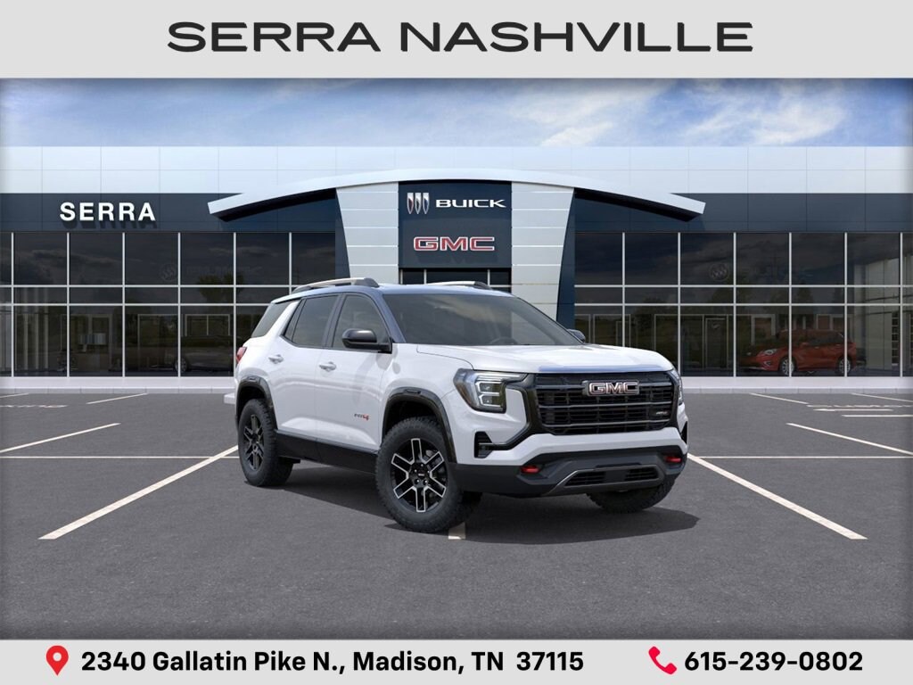 $1,287 off MSRP! Summit White 2026 GMC Terrain AT4 For sale at Serra GMC Nashville and well equipped: Convenience Package III (2-Way Power Front Passenger Lumbar Seat Adjuster, 8-Way Power Passenger Seat Adjuster, Heated Rear Outboard Seats, Ventilated Driver Seat, and Ventilated Front Passenger Seat), Floor Liner Package (LPO) (All-Weather Cargo Mat (LPO), Front All-Weather Floor Liners (LPO), and Second Row All-Weather Mat (LPO)), Memory Package, 2-Way Power Driver Lumbar Seat Adjuster, 3.47 Final Drive Axle Ratio, 4-Wheel Disc Brakes, 6 Speakers, 6-Speaker Audio System Feature, 8-Way Power Driver Seat Adjuster, ABS brakes, Air Conditioning, Alloy wheels, AM/FM radio: SiriusXM, Auto High-beam Headlights, Automatic temperature control, Brake assist, Bumpers: body-color, Cloth/Core Tec Seat Trim, Compass, Delay-off headlights, Driver & Front Passenger Heated Seats, Driver door bin, Driver vanity mirror, Dual front impact airbags, Dual front side impact airbags, Ebony Twilight Metallic Roof, Ebony Twilight Mirror Caps, Electronic Stability Control, Emergency communication system: OnStar and GMC connected services capable, Four wheel independent suspension, Front anti-roll bar, Front Bucket Seats, Front Center Armrest, Front dual zone A/C, Front fog lights, Front Passenger 4-Way Manual Seat Adjuster, Front reading lights, Fully automatic headlights, Garage door transmitter, Heated door mirrors, Heated front seats, Heated steering wheel, Illuminated entry, Low tire pressure warning, Navigation System, Occupant sensing airbag, Outside temperature display, Overhead airbag, Overhead console, Panic alarm, Passenger door bin, Passenger vanity mirror, Power door mirrors, Power driver seat, Power Liftgate, Power steering, Power windows, Radio data system, Radio: Premium GMC Infotainment System, Rain sensing wipers, Rear air conditioning, Rear anti-roll bar, Rear seat center armrest, Rear window defroster, Rear window wiper, Remote keyless entry, Security system, Speed control, Speed-sensing steering, Split folding rear seat, Spoiler, Sport steering wheel, Steering wheel mounted audio controls, Tachometer, Telescoping steering wheel, Tilt steering wheel, Traction control, Trip computer, Variably intermittent wipers, Wheels: 17 Dark Machined Aluminum, and Wireless Apple CarPlay/Wireless Android Auto.