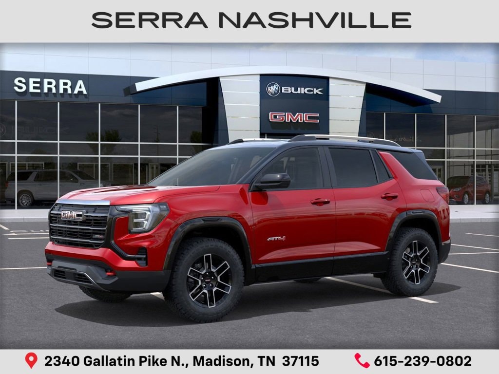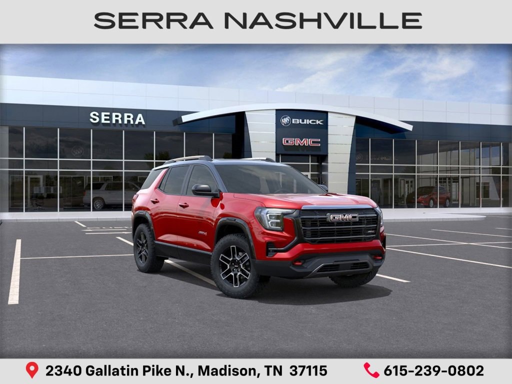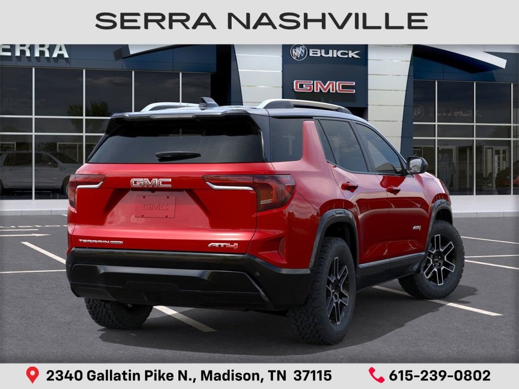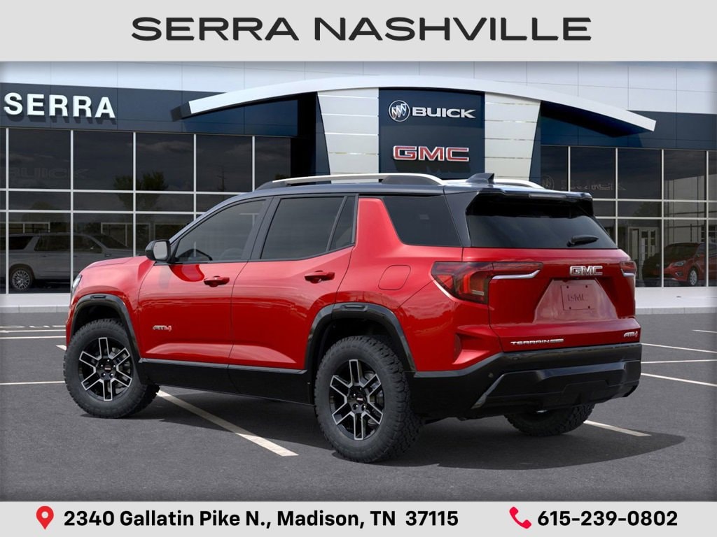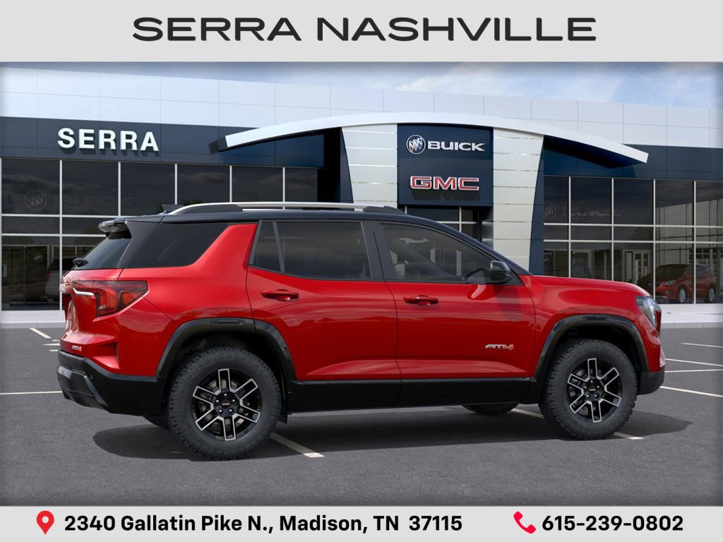$5,000 off MSRP! 2026 GMC Terrain AT4 For sale at Serra GMC Nashville - Serra Nashville has the largest selection of the new GMC Terrain in Nashville. This vehicle is Volcanic Red Tintcoat and well equipped with Preferred Equipment Group 4SB, AWD, 2-Way Power Driver Lumbar Seat Adjuster, 3.47 Final Drive Axle Ratio, 4-Wheel Disc Brakes, 6 Speakers, 6-Speaker Audio System Feature, 8-Way Power Driver Seat Adjuster, ABS brakes, Air Conditioning, Alloy wheels, AM/FM radio: SiriusXM, Auto High-beam Headlights, Automatic temperature control, Brake assist, Bumpers: body-color, Cloth/Core Tec Seat Trim, Compass, Delay-off headlights, Driver door bin, Driver vanity mirror, Dual front impact airbags, Dual front side impact airbags, Ebony Twilight Metallic Roof, Ebony Twilight Mirror Caps, Electronic Stability Control, Emergency communication system: OnStar and GMC connected services capable, Four wheel independent suspension, Front anti-roll bar, Front Bucket Seats, Front Center Armrest, Front dual zone A/C, Front fog lights, Front Passenger 4-Way Manual Seat Adjuster, Front reading lights, Fully automatic headlights, Garage door transmitter, Heated door mirrors, Heated front seats, Heated steering wheel, Illuminated entry, Low tire pressure warning, Navigation System, Occupant sensing airbag, Outside temperature display, Overhead airbag, Overhead console, Panic alarm, Passenger door bin, Passenger vanity mirror, Power door mirrors, Power driver seat, Power Liftgate, Power steering, Power windows, Radio data system, Radio: Premium GMC Infotainment System, Rain sensing wipers, Rear air conditioning, Rear anti-roll bar, Rear seat center armrest, Rear window defroster, Rear window wiper, Remote keyless entry, Security system, Speed control, Speed-sensing steering, Split folding rear seat, Spoiler, Sport steering wheel, Steering wheel mounted audio controls, Tachometer, Telescoping steering wheel, Tilt steering wheel, Traction control, Trip computer, Variably intermittent wipers, Wheels: 17 Dark Machined Aluminum, and Wireless Apple CarPlay/Wireless Android Auto.
