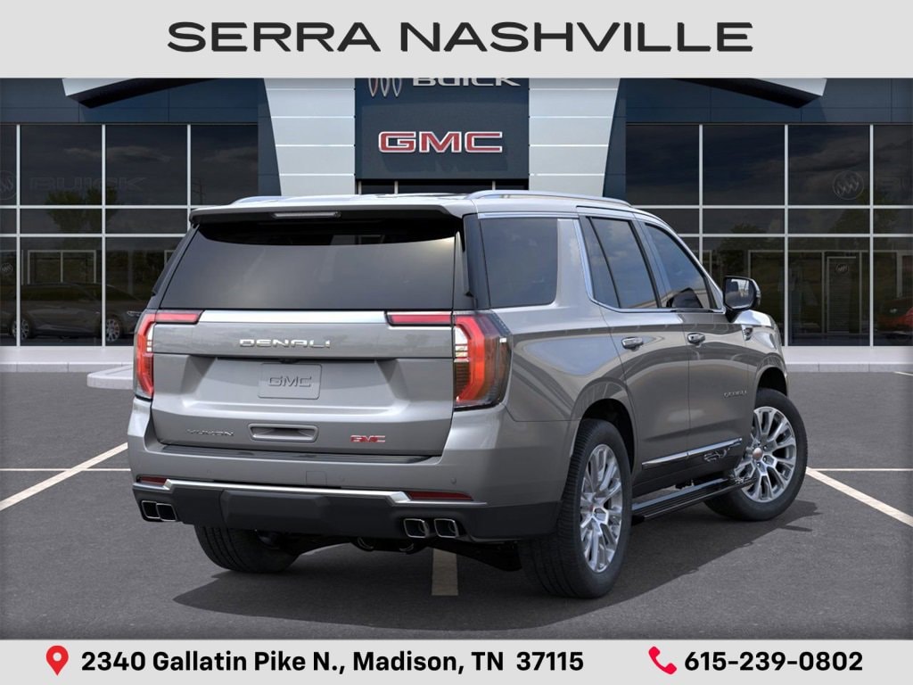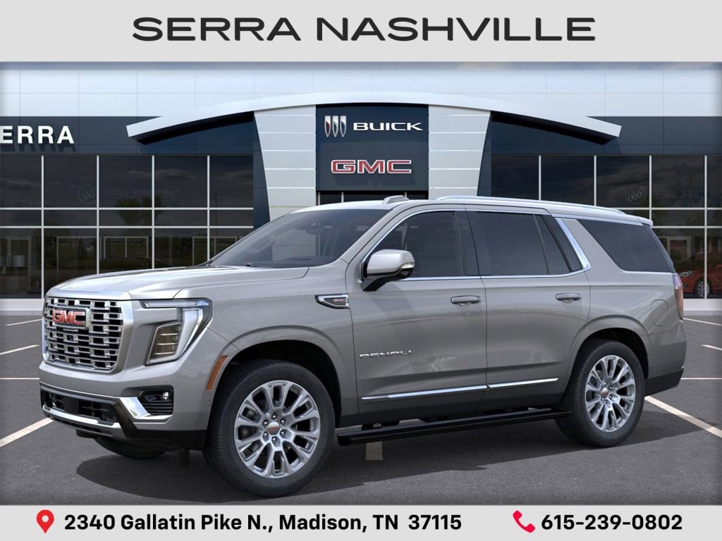 2026 GMC Yukon Denali For sale at Serra GMC Nashville - Serra Nashville has the largest selection of the new GMC Yukon in Nashville. This vehicle is Sterling Metallic and well equipped with Advanced Security Package (Glass Breakage Sensor, Theft-Deterrent Alarm System, Vehicle Inclination Sensor, and Vehicle Interior Movement Sensor), Advanced Technology Package (3 Years OnStar One (R9M), Driver Attention Assist, Inside Rearview Auto-Dimming Rear Camera Mirror, Rear Seat Media System, and Super Cruise), Denali Reserve Package (Dual-Pane Panoramic Power Sunroof and Power-Retractable Assist Steps), Enhanced Trailering Technology Package (Trailer Camera Provisions, Trailering Assist Guidelines, and Wired Auxiliary Trailer Camera (LPO)), Floor Liner Package (LPO) (1st & 2nd Rows Premium Floor Liners (LPO), 3rd Row All-Weather Floor Liners (LPO), and All-Weather Cargo Mat (LPO)), Max Trailering Package (Blind Zone Steering Assist w/Trailering, Extra Capacity Cooling System, Hill Descent Control, Hitch View, Integrated Trailer Brake Controller, and Smart Trailer Integration Indicator), 4WD, 10 Speakers, 15 Diagonal Multi-Color Head-Up Display, 3.23 Rear Axle Ratio, 3rd row seats: split-bench, 4-Way Power Driver Lumbar Seat Adjuster, 4-Way Power Front Passenger Lumbar Seat Adjuster, 4-Wheel Disc Brakes, ABS brakes, Adaptive suspension, Air Conditioning, Air Ride Adaptive Suspension, Alloy wheels, AM/FM radio: SiriusXM with 360L, Apple CarPlay/Android Auto, Audio memory, Auto High-beam Headlights, Auto-dimming door mirrors, Auto-dimming Rear-View mirror, Auto-leveling suspension, Automatic temperature control, AutoSense Hands-Free Power Liftgate, Bodyside moldings, Bose 10-Speaker Surround w/CenterPoint, Brake assist, Bright Front & Rear Door Sill Plates, Bumpers: body-color, Compass, Delay-off headlights, Driver door bin, Driver vanity mirror, Dual Exhaust System, Dual front impact airbags, Dual front side impact airbags, Electronic Stability Control, Emergency communication system: OnStar and GMC connected services capable, Exterior Parking Camera Rear, Four wheel independent suspension, Front anti-roll bar, Front Bucket Seats, Front Center Armrest, Front dual zone A/C, Front fog lights, Front reading lights, Fully automatic headlights, Galvano Bodyside Moldings, Garage door transmitter, Heads-Up Display, Heated door mirrors, Heated Driver & Front Passenger Seats, Heated front seats, Heated rear seats, Heated steering wheel, Illuminated entry, Low tire pressure warning, Magnetic Ride Control Suspension, Memory seat, Navigation system: GMC Connected Navigation, Occupant sensing airbag, Outside temperature display, Overhead airbag, Overhead console, Panic alarm, Passenger door bin, Passenger vanity mirror, Perforated Heated & Ventilated Dr & Frt Pass Seats, Perforated Leather Seating Surfaces, Power door mirrors, Power driver seat, Power Liftgate, Power passenger seat, Power Release 2nd Row Bucket Seats, Power steering, Power Tilt & Telescopic Steering Column, Power windows, Radio: 16.8 Diagonal Premium GMC Infotainment Sys, Rain sensing wipers, Rear air conditioning, Rear anti-roll bar, Rear reading lights, Rear window defroster, Rear window wiper, Remote keyless entry, Security system, SiriusXM w/360L, Speed control, Speed-sensing steering, Split folding rear seat, Spoiler, Steering wheel memory, Steering wheel mounted audio controls, Tachometer, Telescoping steering wheel, Tilt steering wheel, Traction control, Trip computer, Turn signal indicator mirrors, Variably intermittent wipers, Ventilated front seats, Voltmeter, and Wheels: 20 x 9 6-Spoke Polished Aluminum.