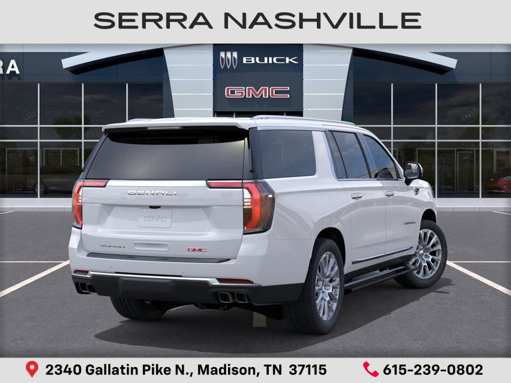 2026 GMC Yukon XL Denali For sale at Serra GMC Nashville - Serra Nashville has the largest selection of the new GMC Yukon XL in Nashville. This vehicle is Summit White and well equipped with Advanced Security Package (Glass Breakage Sensor, Theft-Deterrent Alarm System, Vehicle Inclination Sensor, and Vehicle Interior Movement Sensor), Advanced Technology Package (Driver Attention Assist, Rear Seat Media System, and Super Cruise), Denali Reserve Package (Dual-Pane Panoramic Power Sunroof and Power-Retractable Assist Steps), Enhanced Trailering Technology Package (Trailer Camera Provisions and Trailering Assist Guidelines), Max Trailering Package (Extra Capacity Cooling System, Hill Descent Control, Hitch View, Integrated Trailer Brake Controller, and Smart Trailer Integration Indicator), 4WD, 10 Speakers, 15 Diagonal Multi-Color Head-Up Display, 3.23 Rear Axle Ratio, 3rd row seats: split-bench, 4-Way Power Driver Lumbar Seat Adjuster, 4-Way Power Front Passenger Lumbar Seat Adjuster, 4-Wheel Disc Brakes, ABS brakes, Adaptive suspension, Air Conditioning, Air Ride Adaptive Suspension, Alloy wheels, AM/FM radio: SiriusXM with 360L, Apple CarPlay/Android Auto, Audio memory, Auto High-beam Headlights, Auto-dimming door mirrors, Auto-dimming Rear-View mirror, Auto-leveling suspension, Automatic temperature control, AutoSense Hands-Free Power Liftgate, Bodyside moldings, Brake assist, Bumpers: body-color, Compass, Delay-off headlights, Driver door bin, Driver vanity mirror, Dual Exhaust System, Dual front impact airbags, Dual front side impact airbags, Electronic Stability Control, Emergency communication system: OnStar and GMC connected services capable, Exterior Parking Camera Rear, Four wheel independent suspension, Front anti-roll bar, Front Bucket Seats, Front Center Armrest, Front dual zone A/C, Front fog lights, Front reading lights, Fully automatic headlights, Galvano Bodyside Moldings, Garage door transmitter, Heads-Up Display, Heated door mirrors, Heated front seats, Heated rear seats, Heated steering wheel, Illuminated entry, Low tire pressure warning, Magnetic Ride Control Suspension, Memory seat, Navigation system: GMC Connected Navigation, Occupant sensing airbag, Outside temperature display, Overhead airbag, Overhead console, Panic alarm, Passenger door bin, Passenger vanity mirror, Perforated Leather Seating Surfaces, Power door mirrors, Power driver seat, Power Liftgate, Power passenger seat, Power Release 2nd Row Bucket Seats, Power steering, Power windows, Rain sensing wipers, Rear air conditioning, Rear anti-roll bar, Rear reading lights, Rear window defroster, Rear window wiper, Remote keyless entry, Security system, Speed control, Speed-sensing steering, Split folding rear seat, Spoiler, Steering wheel memory, Steering wheel mounted audio controls, Tachometer, Telescoping steering wheel, Tilt steering wheel, Traction control, Trip computer, Turn signal indicator mirrors, Variably intermittent wipers, Ventilated front seats, Voltmeter, and Wheels: 20 x 9 6-Spoke Polished Aluminum.
