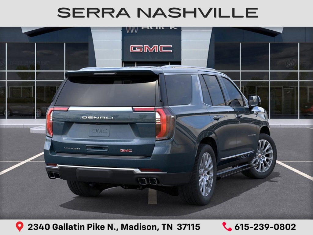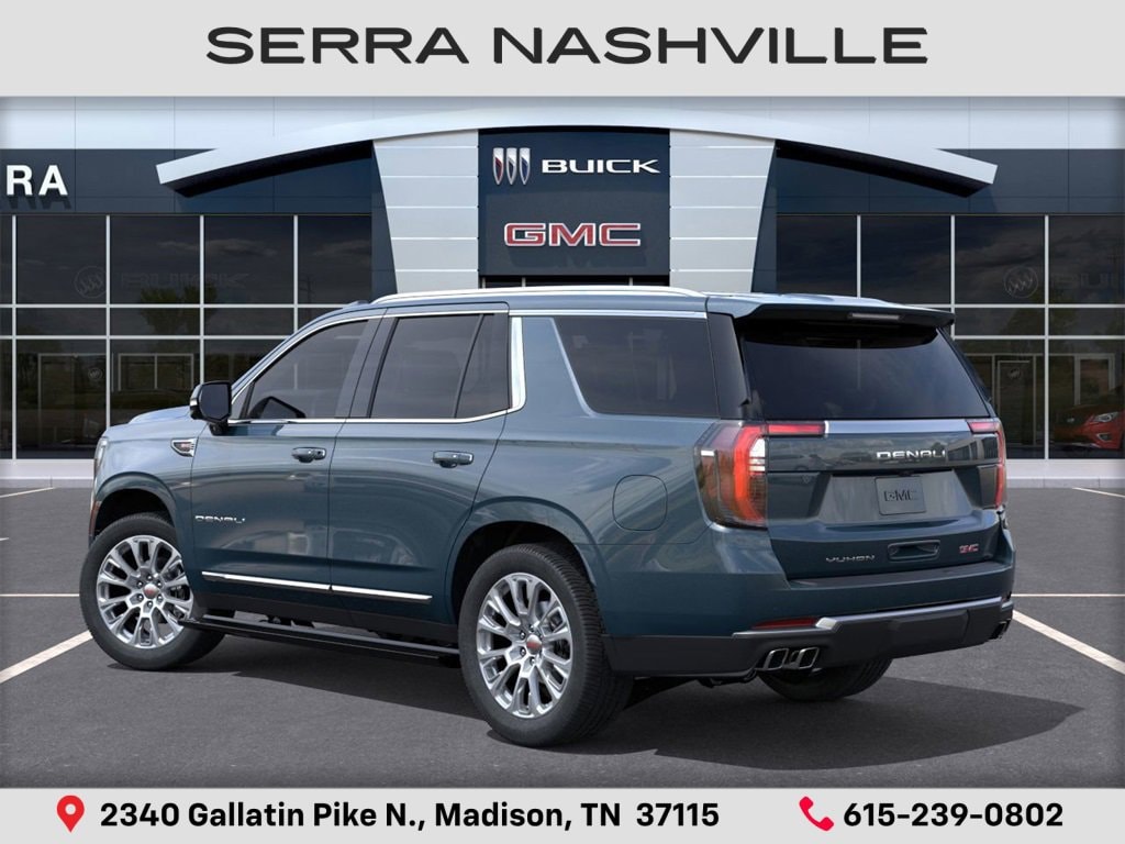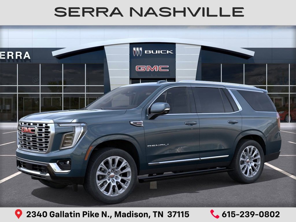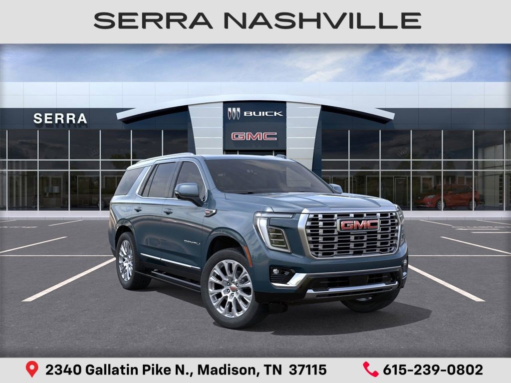 2026 GMC Yukon Denali For sale at Serra GMC Nashville - Serra Nashville has the largest selection of the new GMC Yukon in Nashville. This vehicle is Downpour Metallic and well equipped with 4WD, 10 Speakers, 15 Diagonal Multi-Color Head-Up Display, 3.23 Rear Axle Ratio, 3rd row seats: split-bench, 4-Way Power Driver Lumbar Seat Adjuster, 4-Way Power Front Passenger Lumbar Seat Adjuster, 4-Wheel Disc Brakes, ABS brakes, Adaptive suspension, Air Conditioning, Alloy wheels, AM/FM radio: SiriusXM with 360L, Apple CarPlay/Android Auto, Audio memory, Auto High-beam Headlights, Auto-dimming door mirrors, Auto-dimming Rear-View mirror, Auto-leveling suspension, Automatic temperature control, AutoSense Hands-Free Power Liftgate, Bodyside moldings, Brake assist, Bumpers: body-color, Compass, Delay-off headlights, Driver door bin, Driver vanity mirror, Dual Exhaust System, Dual front impact airbags, Dual front side impact airbags, Dual-Pane Panoramic Power Sunroof, Electronic Stability Control, Emergency communication system: OnStar and GMC connected services capable, Exterior Parking Camera Rear, Four wheel independent suspension, Front anti-roll bar, Front Bucket Seats, Front Center Armrest, Front dual zone A/C, Front fog lights, Front reading lights, Fully automatic headlights, Galvano Bodyside Moldings, Garage door transmitter, Heads-Up Display, Heated door mirrors, Heated front seats, Heated rear seats, Heated steering wheel, Illuminated entry, Low tire pressure warning, Magnetic Ride Control Suspension, Memory seat, Navigation system: GMC Connected Navigation, Occupant sensing airbag, Outside temperature display, Overhead airbag, Overhead console, Panic alarm, Passenger door bin, Passenger vanity mirror, Perforated Leather Seating Surfaces, Power door mirrors, Power driver seat, Power Liftgate, Power passenger seat, Power Release 2nd Row Bucket Seats, Power steering, Power windows, Power-Retractable Assist Steps, Rain sensing wipers, Rear air conditioning, Rear anti-roll bar, Rear reading lights, Rear window defroster, Rear window wiper, Remote keyless entry, Security system, Speed control, Speed-sensing steering, Split folding rear seat, Spoiler, Steering wheel memory, Steering wheel mounted audio controls, Tachometer, Telescoping steering wheel, Tilt steering wheel, Traction control, Trip computer, Turn signal indicator mirrors, Variably intermittent wipers, Ventilated front seats, Voltmeter, and Wheels: 20 x 9 6-Spoke Polished Aluminum.