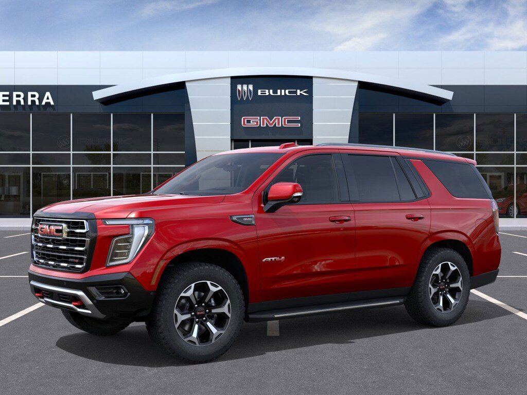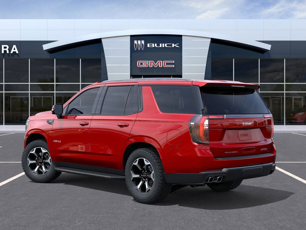 Onyx Black 2026 GMC Yukon AT4 For sale at Serra GMC Nashville and well equipped: Floor Liner Package (LPO) (1st & 2nd Rows All-Weather Floor Liners (LPO), 3rd Row All-Weather Floor Liners (LPO), and All-Weather Cargo Mat (LPO)), 10 Speakers, 3.23 Rear Axle Ratio, 3rd row seats: split-bench, 4-Way Power Driver Lumbar Seat Adjuster, 4-Way Power Front Passenger Lumbar Seat Adjuster, 4-Wheel Disc Brakes, ABS brakes, Adaptive suspension, Air Conditioning, Alloy wheels, AM/FM radio: SiriusXM with 360L, Apple CarPlay/Android Auto, Audio memory, Auto High-beam Headlights, Auto-dimming door mirrors, Auto-dimming Rear-View mirror, Auto-leveling suspension, Automatic temperature control, AutoSense Hands-Free Power Liftgate, Black Roof-Mounted Luggage Rack Side Rails, Body-Color Door Handles, Bose 10-Speaker Surround w/CenterPoint, Brake assist, Bright Front & Rear Door Sill Plates, Bumpers: body-color, Compass, Delay-off headlights, Driver door bin, Driver vanity mirror, Dual Exhaust System, Dual front impact airbags, Dual front side impact airbags, Electronic Stability Control, Emergency communication system: OnStar and GMC connected services capable, Exterior Parking Camera Rear, Four wheel independent suspension, Front anti-roll bar, Front Bucket Seats, Front Center Armrest, Front dual zone A/C, Front fog lights, Front High-Approach Angle Fascia, Front reading lights, Fully automatic headlights, Garage door transmitter, Heated door mirrors, Heated Driver & Front Passenger Seats, Heated front seats, Heated rear seats, Heated steering wheel, Heavy-Duty Air Filter, Hill Descent Control, Illuminated entry, Low tire pressure warning, Magnetic Ride Control Suspension, Memory seat, Navigation system: GMC Connected Navigation, Occupant sensing airbag, Outside temperature display, Overhead airbag, Overhead console, Panic alarm, Passenger door bin, Passenger vanity mirror, Perforated Heated & Ventilated Dr & Frt Pass Seats, Perforated Leather Seating Surfaces, Power door mirrors, Power driver seat, Power Liftgate, Power passenger seat, Power steering, Power Tilt & Telescopic Steering Column, Power windows, Radio: 16.8 Diagonal Premium GMC Infotainment Sys, Rain sensing wipers, Rear air conditioning, Rear anti-roll bar, Rear reading lights, Rear seat center armrest, Rear window defroster, Rear window wiper, Red Horizontal-Mounted Recovery Hooks, Remote keyless entry, Security system, SiriusXM w/360L, Speed control, Speed-sensing steering, Split folding rear seat, Spoiler, Steering wheel memory, Steering wheel mounted audio controls, Tachometer, Telescoping steering wheel, Tilt steering wheel, Traction control, Trip computer, Turn signal indicator mirrors, Variably intermittent wipers, Ventilated front seats, Voltmeter, and Wheels: 20 x 9 Machined & Painted.