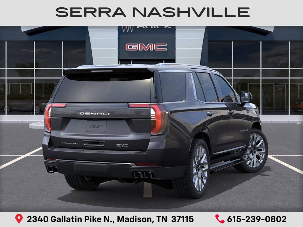 2026 GMC Yukon Denali Ultimate For sale at Serra GMC Nashville - Serra Nashville has the largest selection of the new GMC Yukon in Nashville. This vehicle is Titanium Rush Metallic and well equipped with Advanced Security Package (Glass Breakage Sensor, Theft-Deterrent Alarm System, Vehicle Inclination Sensor, and Vehicle Interior Movement Sensor), Advanced Technology Package (3 Years OnStar One, Driver Attention Assist, Inside Rearview Auo-Dimming Rear Camera Mirror, Rear Seat Media System, and Super Cruise), Floor Liner Package (3rd Row All-Weather Floor Liners, All-Weather Cargo Mat, and First and Second Rows Premium Floor Liners), Max Trailering Package (Blind Zone Steering Assist with Trailering, Extra Capacity Cooling System, Hitch View, Integrated Trailer Brake Controller, and Smart Trailer Integration Indicator), Premium Capability Package with Active Response 4WD (Air Ride Adaptive Suspension and Electronic Limited Slip Differential (ELSD)), 4WD, 15 Diagonal Multi-Color Head-Up Display, 18 Speakers, 3.23 Rear Axle Ratio, 3rd row seats: split-bench, 4-Spoke Leather-Wrapped Steering Wheel, 4-Way Power Driver Lumbar Seat Adjuster, 4-Way Power Front Passenger Lumbar Seat Adjuster, 4-Wheel Disc Brakes, 8 Diagonal Rear Touchscreen Climate Control, ABS brakes, Adaptive suspension, Air Conditioning, Alloy wheels, AM/FM radio: SiriusXM with 360L, Apple CarPlay/Android Auto, Audio memory, Auto High-beam Headlights, Auto-dimming door mirrors, Auto-dimming Rear-View mirror, Auto-leveling suspension, Automatic temperature control, AutoSense Hands-Free Power Liftgate, Bodyside moldings, Bose 18-Speaker Surround with Centerpoint, Brake assist, Bright Front and Rear Door Sill Plates, Bumpers: body-color, Compass, Delay-off headlights, Driver 2-Way Power Upper Shoulder, Driver door bin, Driver Power Massage Seat, Driver vanity mirror, Dual Exhaust System, Dual front impact airbags, Dual front side impact airbags, Dual-Pane Panoramic Power Sunroof, Electronic Stability Control, Emergency communication system: OnStar and GMC connected services capable, Engine Block Heater, Exterior Parking Camera Rear, Four wheel independent suspension, Front anti-roll bar, Front Bucket Seats, Front Center Armrest, Front dual zone A/C, Front fog lights, Front Passenger 2-Way Power Upper Shoulder, Front Passenger Power Massage Seat, Front reading lights, Full Grain Leather Seats, Fully automatic headlights, Garage door transmitter, Headphones, Heads-Up Display, Heated door mirrors, Heated Driver and Front Passenger Seats, Heated front seats, Heated rear seats, Heated steering wheel, Hill Descent Control, Illuminated entry, Leather steering wheel, Low tire pressure warning, Magnetic Ride Control Suspension, Memory seat, Navigation system: GMC Connected Navigation, Occupant sensing airbag, Outside temperature display, Overhead airbag, Overhead console, Panic alarm, Passenger door bin, Passenger vanity mirror, Perforated Heather and Ventilated Driver and Front Passenger Seats, Power door mirrors, Power driver seat, Power Liftgate, Power moonroof, Power passenger seat, Power Release 2nd Row Bucket Seats, Power steering, Power Tilt and Telescopic Steering Column, Power windows, Power-Retractable Assist Steps, Radio: 16.8 Diagonal Premium GMC Infotainment System, Rain sensing wipers, Rear air conditioning, Rear anti-roll bar, Rear audio controls, Rear reading lights, Rear window defroster, Rear window wiper, Remote keyless entry, Security system, SiriusXM with 360L, Speed control, Speed-sensing steering, Split folding rear seat, Spoiler, Sport Pedal Cover Kit, Steering wheel memory, Steering wheel mounted audio controls, Tachometer, Telescoping steering wheel, Tilt steering wheel, Traction control, Trip computer, Turn signal indicator mirrors, Vader Bodyside Moldings, Variably intermittent wipers, Ventilated front seats, Voltmeter, Wheel Locks (set of 4), and Wheels: 24 x 9.5 Selective Machined and Painted.