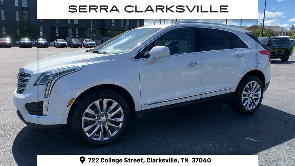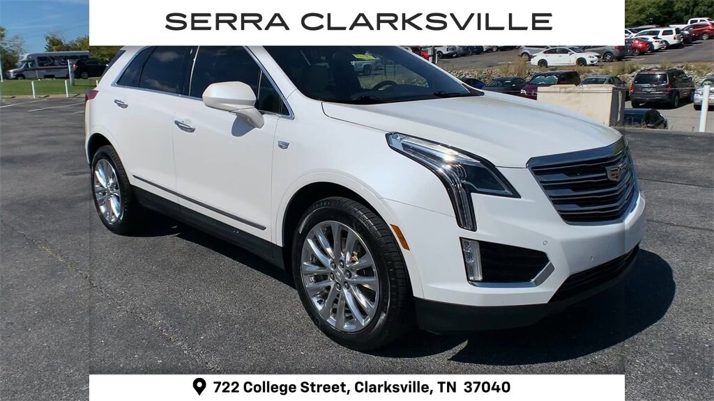 Local new car trade-in! The Pre-Owned 2019 Cadillac XT5 Premium Luxury with 3.6L V6 DI VVT at Serra Clarksville. Well equipped: Interior Protection Package (LPO) (All-Weather Cargo Tray (LPO) and All-Weather Floor Mats), Premium Luxury Package 1SE (155 Amp Alternator, Body-Color Heated Power-Adjustable Outside Mirrors, Front & Rear Park Assist, Low Speed Forward Automatic Braking, and Teen Driver), 14 Speakers, 2-Way Power Driver Lumbar Control Seat Adjuster, 2-Way Power Passenger Lumbar Control Seat Adjuster, 3.20 Axle Ratio, 4-Wheel Disc Brakes, 8-Way Power Front Passenger Seat Adjuster, ABS brakes, Adaptive suspension, Air Conditioning, Alloy wheels, AM/FM radio: SiriusXM, Apple CarPlay/Android Auto, Auto High-beam Headlights, Auto-dimming door mirrors, Auto-dimming Rear-View mirror, Automatic temperature control, Bodyside moldings, Bose Studio Surround Sound w/14 Speakers, Brake assist, Bumpers: body-color, Compass, Delay-off headlights, Driver & Front Passenger Heated Seats, Driver door bin, Driver vanity mirror, Dual front impact airbags, Dual front side impact airbags, Electronic Stability Control, Emergency communication system: OnStar and Cadillac connected services capable, Exterior Parking Camera Rear, Four wheel independent suspension, Front anti-roll bar, Front Bucket Seats, Front Center Armrest, Front dual zone A/C, Front License Plate Bracket, Front reading lights, Fully automatic headlights, Garage door transmitter, Heated door mirrors, Heated front seats, Heated Rear Outboard Seating Positions, Heated rear seats, Heated steering wheel, Illuminated entry, Knee airbag, Lateral Mesh Cargo Net, Leather Seating Surfaces w/Mini Perforated Inserts, Leather steering wheel, Low tire pressure warning, Memory seat, Navigation System, Occupant sensing airbag, Outside temperature display, Overhead airbag, Overhead console, Panic alarm, Passenger door bin, Passenger vanity mirror, Performance Suspension, Power door mirrors, Power driver seat, Power Liftgate, Power moonroof: UltraView, Power passenger seat, Power steering, Power windows, Radio data system, Radio: Cadillac User Experience w/Embedded Nav, Rain sensing wipers, Rear air conditioning, Rear anti-roll bar, Rear reading lights, Rear seat center armrest, Rear window defroster, Rear window wiper, Remote keyless entry, Road Emergency Tool Kit, Roof rack: rails only, SiriusXM Radio, Speed control, Speed-sensing steering, Split folding rear seat, Spoiler, Steering wheel memory, Steering wheel mounted audio controls, Tachometer, Telescoping steering wheel, Tilt steering wheel, Traction control, Trip computer, Variably intermittent wipers, Ventilated Driver & Front Passenger Seats, Ventilated front seats, Voltmeter, Wheels: 20 x 8 12-Spoke Fully Polished, and Wheels: 20 x 8 Sterling Silver Painted Finish.