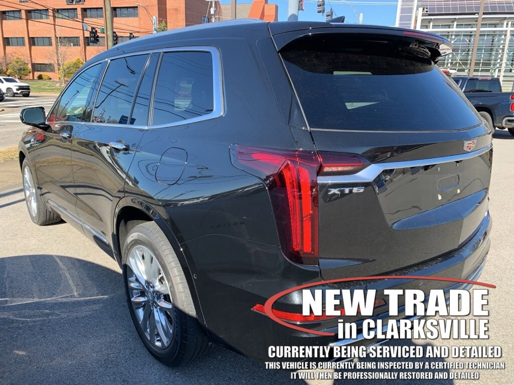 Clean CARFAX. Stellar Black Metallic 2022 Cadillac XT6 Premium LuxuryThe Pre-Owned 2022 Cadillac XT6 Premium Luxury with 3.6L V6 DI VVT at Serra Clarksville. Well equipped: Comfort & Air Quality Package (Air Ionizer, Heated Rear Outboard Seating Positions, and Ventilated Driver & Front Passenger Seats), Premium Luxury Package 1SC (Automatic Emergency Braking, Bose Premium 8-Speaker Audio System, Dual Driver Information Center Display, Front & Rear Park Assist, Inside Rear-View Auto-Dimming Mirror, and Teen Driver), Radio: Cadillac User Experience w/Embedded Nav (Bose Performance Series Audio System), Technology Package (8 Color Driver Information Center Display, Automatic Parking Assist w/Braking, HD Surround Vision, Head-Up Display, Rear Camera Mirror, Rear Camera Mirror Washer, Rear Pedestrian Alert, and Surround Vision Recorder), 2-Way Power Driver Lumbar Control Seat Adjuster, 2-Way Power Passenger Lumbar Control Seat Adjuster, 3.49 Axle Ratio, 3rd row seats: split-bench, 4-Wheel Disc Brakes, 6-Passenger Seating, 8 Speakers, ABS brakes, Air Conditioning, Alloy wheels, AM/FM radio: SiriusXM with 360L, Audio memory, Auto High-beam Headlights, Auto tilt-away steering wheel, Auto-dimming door mirrors, Auto-dimming Rear-View mirror, Automatic Stop/Start w/Disable, Automatic temperature control, Brake assist, Bumpers: body-color, Compass, Delay-off headlights, Driver & Front Passenger Heated Seats, Driver door bin, Driver vanity mirror, Dual front impact airbags, Dual front side impact airbags, Electronic Stability Control, Emergency communication system: OnStar and Cadillac connected services capable, Four wheel independent suspension, Front anti-roll bar, Front Bucket Seats, Front Center Armrest, Front dual zone A/C, Front reading lights, Fully automatic headlights, Garage door transmitter, Heated door mirrors, Heated front seats, Heated steering wheel, Illuminated entry, Knee airbag, Leather Seating Surfaces w/Mini-Perforated Inserts, Leather steering wheel, Low tire pressure warning, Memory seat, Occupant sensing airbag, Outside temperature display, Overhead airbag, Overhead console, Panic alarm, Passenger door bin, Passenger vanity mirror, Power door mirrors, Power driver seat, Power Liftgate, Power moonroof: UltraView, Power passenger seat, Power steering, Power windows, Radio data system, Radio: Cadillac User Experience AM/FM Stereo, Rain sensing wipers, Rear air conditioning, Rear anti-roll bar, Rear reading lights, Rear seat center armrest, Rear window defroster, Rear window wiper, Remote keyless entry, Ride & Handling Suspension, Roof rack: rails only, Security system, SiriusXM w/360L, Speed control, Speed-sensing steering, Split folding rear seat, Spoiler, Steering wheel memory, Steering wheel mounted audio controls, Tachometer, Telescoping steering wheel, Tilt steering wheel, Traction control, Trip computer, Turn signal indicator mirrors, Variably intermittent wipers, Voltmeter, Wheels: 20 12-Spoke Alloy w/Fully Polished Finish, Wheels: 20 6-Split Spoke Alloy, and Wireless Apple CarPlay/Wireless Android Auto.FWD 3.6L V6 DI VVT 9-Speed AutomaticOdometer is 10470 miles below market average! 19/26 City/Highway MPGAwards:* 2022 IIHS Top Safety Pick+