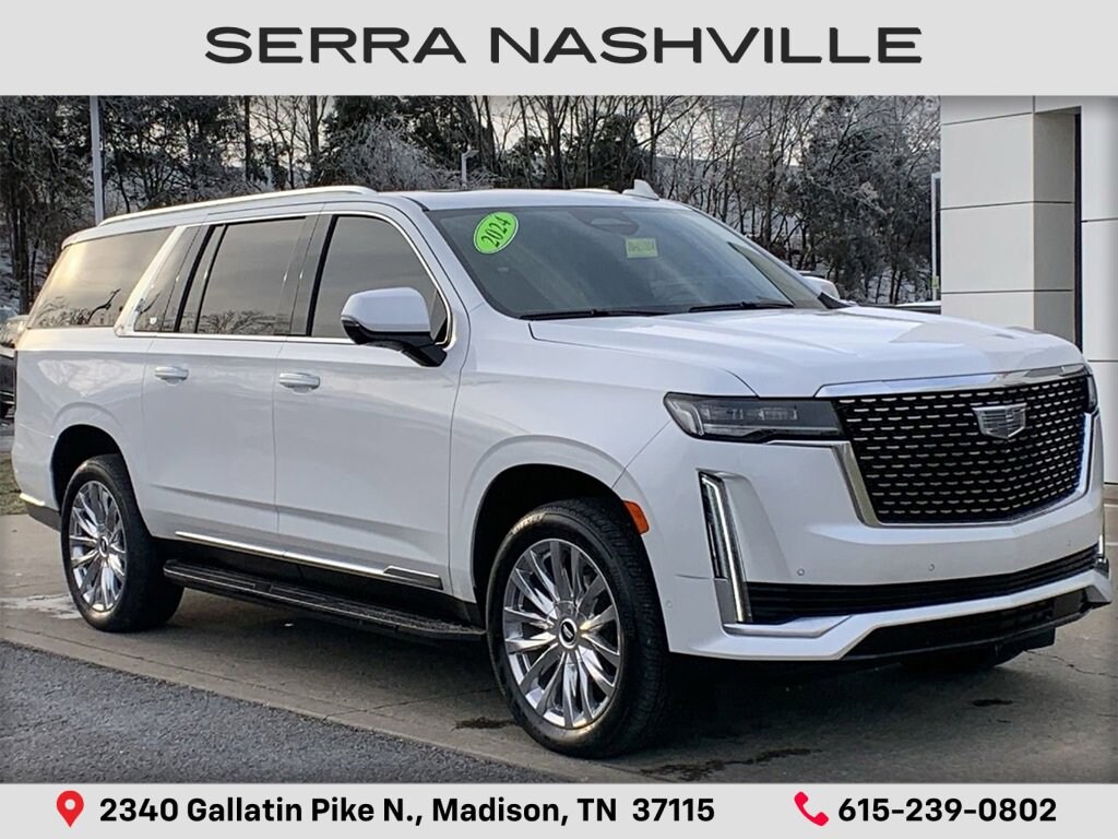 Recent Arrival! AWD. Clean CARFAX.Crystal White Tricoat 2024 Cadillac Escalade ESV Premium 4D Sport Utility AWD 6.2L V8 10-Speed AutomaticVisit the #1 Volume GM dealer in Tennessee - 2340 Gallatin Pike North.Serving the greater Nashville Area. Now serving Antioch, TN - Clarksville, TN - Murfreesboro, TN - Springfield, TN.