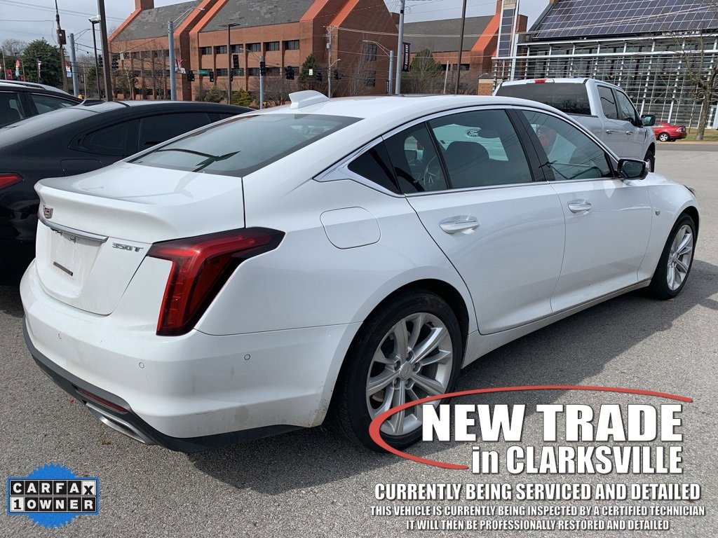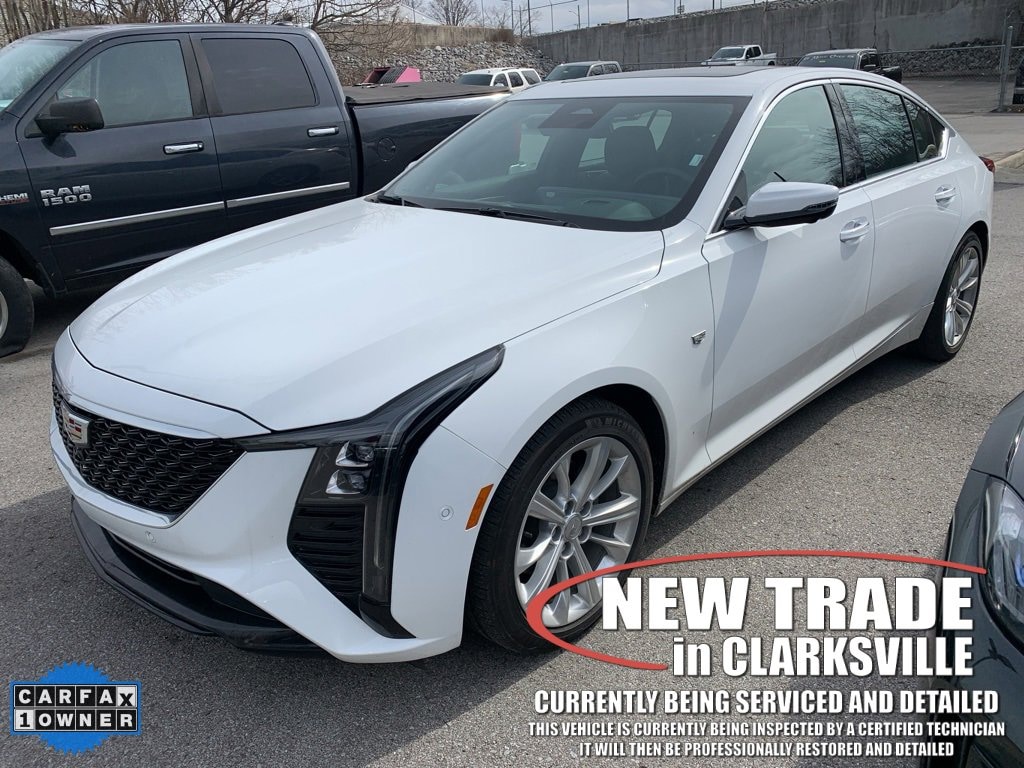 CARFAX One-Owner. Clean CARFAX. Summit White 2025 Cadillac CT5 Premium LuxuryThe Pre-Owned 2025 Cadillac CT5 Premium Luxury with 2.0L I4 Turbocharged DOHC 16V LEV3-SULEV30 237hp at Serra Clarksville. Well equipped: 15 Speakers, 4-Wheel Disc Brakes, 8-Way Power Driver Seat Adjuster, 8-Way Power Front Passenger Seat Adjuster, ABS brakes, Air Conditioning, AKG 15-Speaker System, Alloy wheels, AM/FM radio: SiriusXM with 360L, Apple CarPlay/Android Auto, Auto High-beam Headlights, Auto-dimming door mirrors, Auto-dimming Rear-View mirror, Automatic Stop/Start w/Disable, Automatic temperature control, Brake assist, Bumpers: body-color, Compass, Delay-off headlights, Driver 4-Way Power Lumbar Seat Adjuster, Driver door bin, Driver Power Lumbar Massage Seat, Driver Power Seatback Bolster Adjustment, Driver vanity mirror, Dual front impact airbags, Dual front side impact airbags, Electronic Stability Control, Emergency communication system: OnStar and Cadillac connected services capable, Four wheel independent suspension, Front anti-roll bar, Front Bucket Seats, Front Center Armrest, Front dual zone A/C, Front Passenger 4-Way Power Lumbar Seat Adjuster, Front Passenger Power Lumbar Massage Seat, Front Passenger Power Seatback Bolster Adjustment, Front reading lights, Fully automatic headlights, Garage door transmitter, Heated door mirrors, Heated Driver & Front Passenger Seats, Heated front seats, Heated steering wheel, Illuminated entry, Knee airbag, Leather Seating Surfaces w/Mini-Perforated Inserts, Leather steering wheel, LED Reflective Windshield Collision Alert, Low tire pressure warning, Memory seat, Navigation System, Occupant sensing airbag, Outside temperature display, Overhead airbag, Overhead console, Panic alarm, Passenger door bin, Passenger vanity mirror, Power door mirrors, Power driver seat, Power passenger seat, Power steering, Power windows, Radio data system, Radio: Google Built-In Infotainment Experience, Rain sensing wipers, Rear anti-roll bar, Rear reading lights, Rear seat center armrest, Rear window defroster, Remote keyless entry, SiriusXM w/360L Trial Subscription, Speed control, Speed-sensing steering, Split folding rear seat, Steering wheel memory, Steering wheel mounted audio controls, Tachometer, Telescoping steering wheel, Tilt steering wheel, Traction control, Trip computer, Turn signal indicator mirrors, Variably intermittent wipers, Ventilated Driver & Front Passenger Seats, Ventilated front seats, Voltmeter, and Wheels: 18 Premium Painted Alloy.RWD 2.0L I4 Turbocharged DOHC 16V LEV3-SULEV30 237hp 10-Speed Automatic