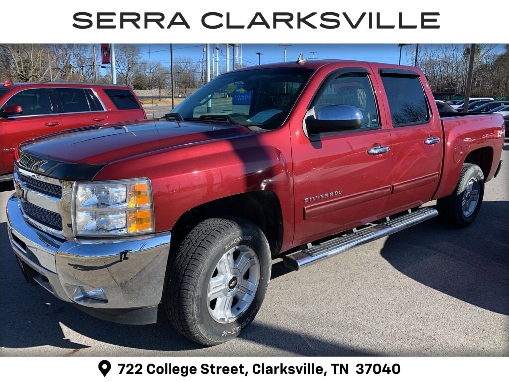 Clean CARFAX. Deep Ruby Metallic 2013 Chevrolet Silverado 1500 LTThe Pre-Owned 2013 Chevrolet Silverado 1500 LT with Vortec 5.3L V8 SFI VVT Flex Fuel at Serra Clarksville. Well equipped: All-Star Edition (17 x 7.5 5-Spoke Aluminum Wheels, AM/FM Stereo w/CD Player & MP3 Playback, Bluetooth® For Phone, Dual-Zone Automatic Climate Control, EZ-Lift Tailgate, Locking Tailgate, SiriusXM Satellite Radio, and Steering Wheel Mounted Audio Controls), Convenience Package (Electric Rear-Window Defogger, Power-Adjustable Pedals For Accelerator & Brake, Remote Vehicle Starter System, and Universal Home Remote), Heavy Duty Cooling Package (Heavy-Duty Air-to-Oil External Engine Oil Cooler and Heavy-Duty Auxiliary External Transmission Oil Cooler), Heavy-Duty Handling/Trailering Suspension Package, Heavy-Duty Trailering Package (Retail) (Heavy-Duty Rear Automatic Locking Differential), LT1 Equipment Group (6 Speaker Audio System Feature, Body-Colored Bodyside Moldings, Chrome Grille Surround, Color-Keyed Carpeting w/Rubberized Vinyl Floormats, Driver & Front Passenger Illuminated Visor Mirrors, Driver-Side Manual Lumbar Control Seat Adjuster, Electronic Autotrac Transfer Case, Heated Power-Adjustable Black Outside Mirrors, Leather-Wrapped Steering Wheel, Power Door Locks w/Remote Keyless Entry, Power Windows w/Driver Express-Down, Remote Keyless Entry w/2 Transmitters, and Solar-Ray Deep-Tinted Glass), Off-Road Suspension Package, Skid Plate Package, 6-Speed Automatic Electronic with Overdrive, 4WD, Light Cashmere/Dark Cashmere Cloth, 17 x 7.5 6-Lug Chrome-Styled Steel Wheels, 18 x 8 Aluminum Wheels, 3.42 Rear Axle Ratio, 6 Speakers, 6-Way Power Driver Seat Adjuster, 6-Way Power Front Passenger Seat Adjuster, ABS brakes, Air Conditioning, AM/FM radio: SiriusXM, AM/FM Stereo w/MP3 Compatible CD Player, Bed Liner, Bodyside moldings, Bumpers: chrome, CD player, Compass, Delay-off headlights, Driver door bin, Driver vanity mirror, Dual front impact airbags, Dual front side impact airbags, Electronic Stability Control, Emergency communication system: OnStar Directions & Connections, Floor Console w/Dual Cup Holders, Front 40/20/40 Split-Bench Seat, Front anti-roll bar, Front Bucket Seats, Front Center Armrest w/Storage, Front Halogen Fog Lamps, Front License Plate Bracket, Front reading lights, Front wheel independent suspension, Fully automatic headlights, Heated door mirrors, Illuminated entry, Integrated Trailer Brake Controller, Low tire pressure warning, Occupant sensing airbag, Outside temperature display, Overhead airbag, Overhead console, Panic alarm, Passenger door bin, Passenger vanity mirror, Power door mirrors, Power steering, Power windows, Premium Cloth Seat Trim, Radio data system, Rear reading lights, Rear seat center armrest, Rear step bumper, Remote keyless entry, Security system, Speed control, Split folding rear seat, Tachometer, Tilt steering wheel, Traction control, Trip computer, Ultrasonic Rear Parking Assist w/Audible Warning, Variably intermittent wipers, and Voltmeter.4WD Vortec 5.3L V8 SFI VVT Flex Fuel 6-Speed Automatic Electronic with OverdriveRecent Arrival!Reviews:* If you like variety in your full-size pickup, the Chevy 2013 Silverado is a virtual quick-change artist. Numerous bed lengths, body configurations, axles and cabs are available from the Silverado options list, as are many interior upgrades and E85-compatible engines. Source: KBB.com* Smooth and quiet ride; comfortable seats; powerful V8 options. Source: Edmunds