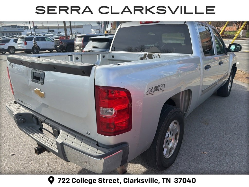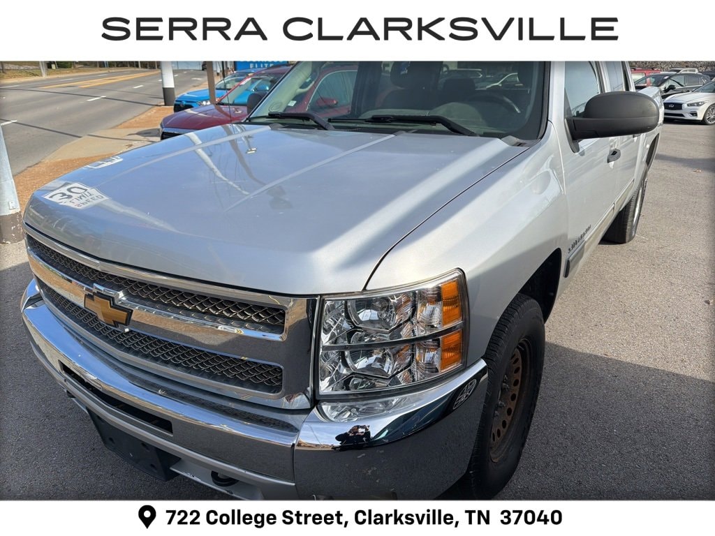 The Pre-Owned 2013 Chevrolet Silverado 1500 LT with Vortec 5.3L V8 SFI VVT Flex Fuel at Serra Clarksville. Well equipped: All-Star Edition (17 x 7.5 5-Spoke Aluminum Wheels, AM/FM Stereo w/CD Player & MP3 Playback, Bluetooth® For Phone, Dual-Zone Automatic Climate Control, EZ-Lift Tailgate, Locking Tailgate, SiriusXM Satellite Radio, and Steering Wheel Mounted Audio Controls), Heavy Duty Cooling Package (Heavy-Duty Air-to-Oil External Engine Oil Cooler and Heavy-Duty Auxiliary External Transmission Oil Cooler), Heavy-Duty Handling/Trailering Suspension Package, Heavy-Duty Trailering Package (Retail) (Heavy-Duty Rear Automatic Locking Differential), LT1 Equipment Group (6 Speaker Audio System Feature, Body-Colored Bodyside Moldings, Chrome Grille Surround, Color-Keyed Carpeting w/Rubberized Vinyl Floormats, Driver & Front Passenger Illuminated Visor Mirrors, Driver-Side Manual Lumbar Control Seat Adjuster, Electronic Autotrac Transfer Case, Heated Power-Adjustable Black Outside Mirrors, Leather-Wrapped Steering Wheel, Power Door Locks w/Remote Keyless Entry, Power Windows w/Driver Express-Down, Remote Keyless Entry w/2 Transmitters, and Solar-Ray Deep-Tinted Glass), 6-Speed Automatic Electronic with Overdrive, 4WD, Ebony Cloth, 17 x 7.5 6-Lug Chrome-Styled Steel Wheels, 3.42 Rear Axle Ratio, 6 Speakers, 6-Way Power Driver Seat Adjuster, ABS brakes, Air Conditioning, AM/FM radio: SiriusXM, AM/FM Stereo w/MP3 Compatible CD Player, Bodyside moldings, Bumpers: chrome, CD player, Compass, Delay-off headlights, Driver door bin, Driver vanity mirror, Dual front impact airbags, Dual front side impact airbags, Electronic Stability Control, Emergency communication system: OnStar Directions & Connections, Front 40/20/40 Split-Bench Seat, Front anti-roll bar, Front Center Armrest w/Storage, Front Halogen Fog Lamps, Front License Plate Bracket, Front reading lights, Front wheel independent suspension, Fully automatic headlights, Heated door mirrors, Illuminated entry, Low tire pressure warning, Occupant sensing airbag, Outside temperature display, Overhead airbag, Overhead console, Panic alarm, Passenger door bin, Passenger vanity mirror, Power door mirrors, Power steering, Power windows, Premium Cloth Seat Trim, Radio data system, Rear reading lights, Rear seat center armrest, Rear step bumper, Remote keyless entry, Security system, Speed control, Split folding rear seat, Tachometer, Tilt steering wheel, Traction control, Trip computer, Variably intermittent wipers, and Voltmeter.