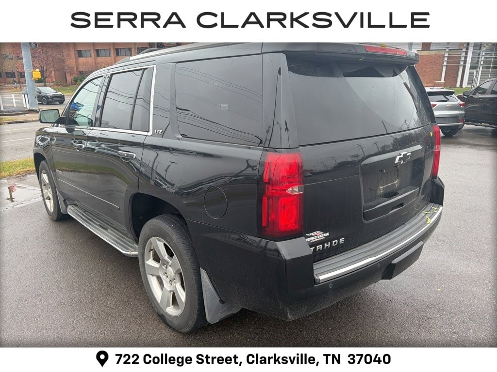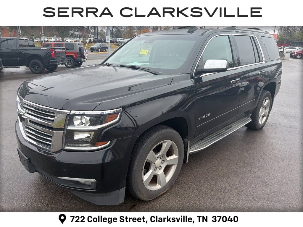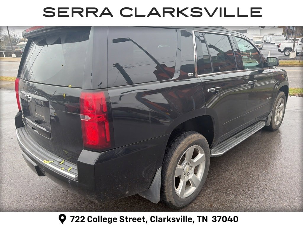 Local trade-in! Clean CARFAX. The Pre-Owned 2016 Chevrolet Tahoe LTZ with EcoTec3 5.3L V8 at Serra Clarksville. Well equipped: Magnetic Ride Control Suspension Package, Max Trailering Package (2-Speed Active Electronic AutoTrac Transfer Case and Integrated Trailer Brake Controller), Preferred Equipment Group 1LZ (1st & 2nd Row Color-Keyed Carpeted Floor Mats, 3rd Row 60/40 Power Fold Split-Bench, 4-Wheel Antilock Disc Brakes, 5 12-Volt Auxiliary Power Outlets, Auto-Dimming Inside Rear-View Mirror, Black Assist Steps w/Chrome Accent Strip, Bose Centerpoint Premium 10-Speaker Surround Sound, Color-Keyed Carpeting Floor Covering, Driver Inboard & Front Passenger Airbags, Electronic Cruise Control w/Set & Resume Speed, Enhanced Driver Instrument Information Display, Floor Console, Fog Lamps, Front & Rear Parking Assist, Hands Free Power Liftgate, Heated 2nd Row Seats, Heated Leather Wrapped Steering Wheel, Memory Settings, OnStar Basic Plan For 5 Years, Passive Entry System, Power Release 2nd Row Bucket Seats, Power Tilt & Telescoping Steering Column, Power-Adjustable Accelerator & Brake Pedals, Power-Folding Heated Outside Mirrors, Push Button Keyless Start, Rear Cross-Traffic Alert, Remote Keyless Entry, Roof-Mounted Luggage Rack Side Rails, Side Blind Zone Alert w/Lane Change Alert, SiriusXM Satellite Radio, Universal Home Remote, and Wireless Charging), Sun, Entertainment & Destinations Package (Power Sunroof and Rear Seat Blu-Ray/DVD Entertainment System), 4WD, Jet Black Leather, 10 Speakers, 3rd row seats: split-bench, 4-Wheel Disc Brakes, 6-Way Power Front Passenger Seat Adjuster, ABS brakes, Adaptive suspension, Adjustable pedals, Air Conditioning, Alloy wheels, AM/FM radio: SiriusXM, Apple CarPlay, Auto High-beam Headlights, Auto-dimming door mirrors, Auto-dimming Rear-View mirror, Automatic temperature control, Bodyside moldings, Brake assist, Bumpers: body-color, CD player, Compass, Delay-off headlights, Driver door bin, Driver vanity mirror, Dual front impact airbags, Dual front side impact airbags, Electronic Stability Control, Emergency communication system: OnStar, Exterior Parking Camera Rear, Forward Collision Alert Sensor Indicator, Front anti-roll bar, Front Bucket Seats, Front Center Armrest, Front dual zone A/C, Front fog lights, Front Heated Reclining Bucket Seats, Front reading lights, Front wheel independent suspension, Fully automatic headlights, Garage door transmitter, Heated & Cooled Driver & Front Passenger Seats, Heated door mirrors, Heated front seats, Heated rear seats, Heated steering wheel, High-Intensity Discharge Headlights, Illuminated entry, IntelliBeam Headlamps, Lane Departure Warning System, Lane Keep Assist, Low tire pressure warning, Memory seat, Navigation System, Occupant sensing airbag, Outside temperature display, Overhead airbag, Overhead console, Panic alarm, Passenger door bin, Passenger vanity mirror, Pedal memory, Perforated Leather-Appointed Seat Trim, Power door mirrors, Power driver seat, Power Liftgate, Power passenger seat, Power steering, Power windows, Premium audio system: Chevrolet MyLink, Radio: Chevrolet MyLink w/Navigation/AM/FM Stereo, Rain sensing wipers, Rear air conditioning, Rear anti-roll bar, Rear reading lights, Rear window defroster, Rear window wiper, Remote keyless entry, Roof rack: rails only, Safety Alert Driver Seat, Security system, Single-Slot CD/MP3 Player, Speed control, Speed-sensing steering, Split folding rear seat, Spoiler, Steering wheel memory, Steering wheel mounted audio controls, Tachometer, Telescoping steering wheel, Tilt steering wheel, Traction control, Trip computer, Turn signal indicator mirrors, Unauthorized Entry Electrical Theft Deterrent Sys., Variably intermittent wipers, Ventilated front seats, Voltmeter, and Wheels: 20 x 9 Polished-Aluminum.4WD EcoTec3 5.3L V8 6-Speed Automatic Electronic with OverdriveRecent Arrival!Awards:* JD Power Initial Quality Study, JD Power APEAL Study * 2016 KBB.com Best B