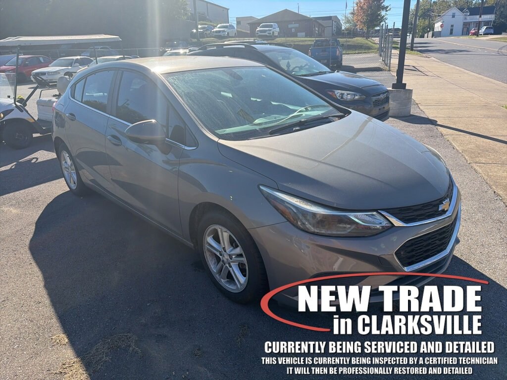 Local new car trade-in! Clean CARFAX. The Pre-Owned 2017 Chevrolet Cruze LT with 1.4L 4-Cylinder Turbo DOHC CVVT at Serra Clarksville. Well equipped: Preferred Equipment Group 1SD, 16 Aluminum Wheels, 4-Wheel Disc Brakes, 6 Speaker Audio System Feature, 6 Speakers, ABS brakes, Air Conditioning, Alloy wheels, AM/FM radio: SiriusXM, Apple CarPlay/Android Auto, Brake assist, Bumpers: body-color, Cloth Seat Trim, Compass, Delay-off headlights, Driver 6-Way Manual Seat Adjuster, Driver door bin, Driver vanity mirror, Dual front impact airbags, Dual front side impact airbags, Electronic Stability Control, Emergency communication system: OnStar Guidance, Exterior Parking Camera Rear, Front anti-roll bar, Front Bucket Seats, Front Center Armrest, Front Passenger 2-Way Manual Seat Adjuster, Front reading lights, Front wheel independent suspension, Fully automatic headlights, Heated door mirrors, Illuminated entry, Knee airbag, Low tire pressure warning, Occupant sensing airbag, Outside temperature display, Overhead airbag, Panic alarm, Passenger door bin, Passenger vanity mirror, Power door mirrors, Power steering, Power windows, Radio data system, Radio: AM/FM Chevrolet MyLink w/7 Touch-Screen, Rear seat center armrest, Rear side impact airbag, Rear window defroster, Rear window wiper, Remote keyless entry, Security system, SiriusXM Satellite Radio, Speed control, Split folding rear seat, Spoiler, Steering wheel mounted audio controls, Tachometer, Telescoping steering wheel, Tilt steering wheel, Traction control, Trip computer, Variably intermittent wipers, and Voltmeter.
