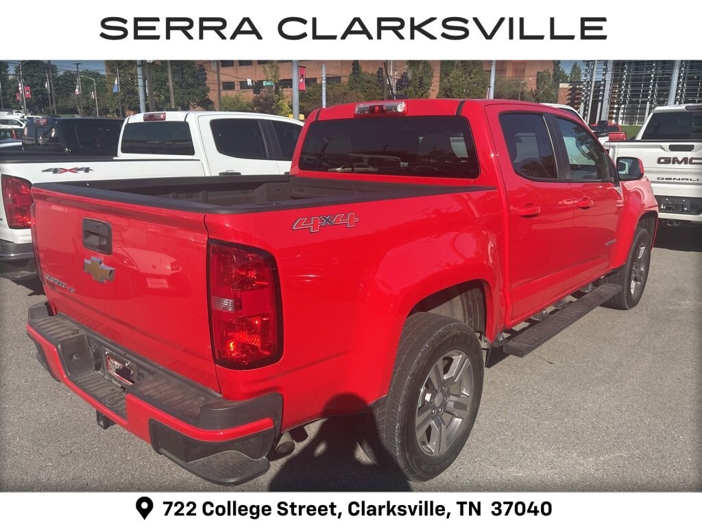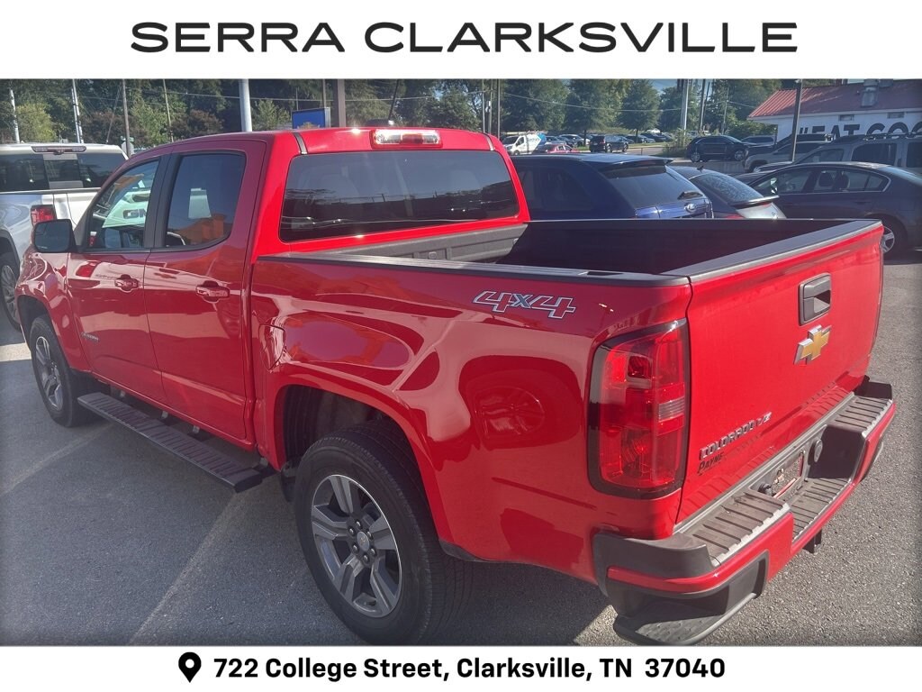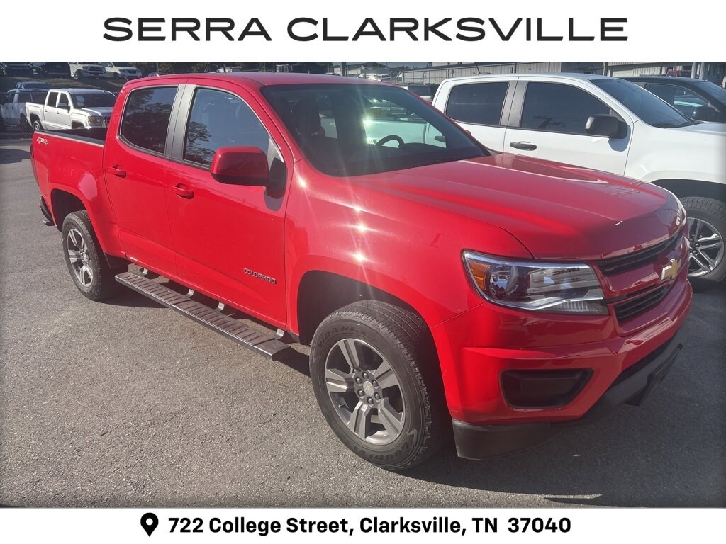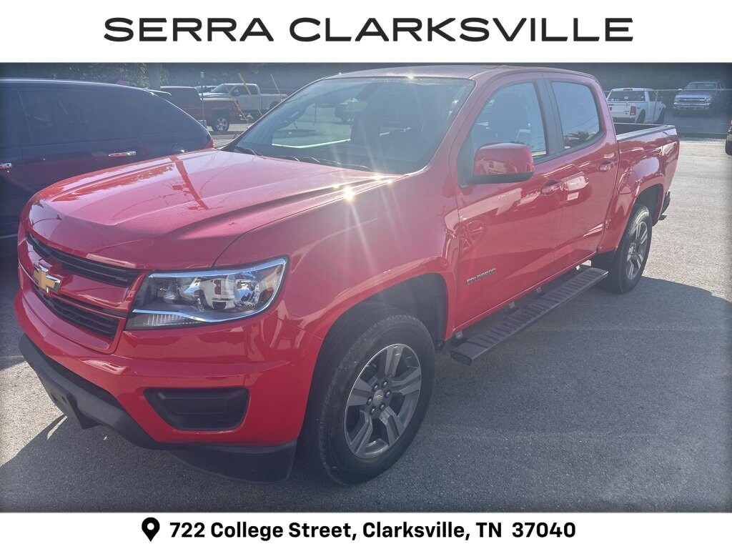 Local new car trade-in! Clean CARFAX. The Pre-Owned 2018 Chevrolet Colorado Work Truck with V6 at Serra Clarksville. Well equipped: Custom Special Edition (Body-Color Door Handles, Body-Color Grille, Outside Power-Adjustable Body-Color Mirrors, Rear Body-Color Bumper, and Wheels: 18 x 8.5 Dark Argent Metallic Cast Alloy), Heavy-Duty Trailering Package, Interior Illumination Package (LPO), OnStar & Chevrolet Connected Services Capable (Chevrolet 4G LTE), Preferred Equipment Group 4WT, Premium Interior Package (LPO) (All-Weather Floor Liner (LPO) (AAK)), WT Convenience Package (Electronic Automatic Cruise Control, Extended Range Remote Keyless Entry, EZ-Lift & Lower Tailgate, and Unauthorized Entry Theft-Deterrent System), 4WD, 3.42 Rear Axle Ratio, 4-Wheel Disc Brakes, 5 Rectangular Black Assist Steps (LPO), 6 Speakers, 6-Speaker Audio System Feature, ABS brakes, Air Conditioning, AM/FM radio, Apple CarPlay/Android Auto, Automatic Locking Rear Differential, Black Spray-On Bedliner w/Chevrolet Logo, Bumpers: body-color, Cloth Seat Trim, Delay-off headlights, Driver 4-Way Power Seat Adjuster, Driver door bin, Dual front impact airbags, Dual front side impact airbags, Electronic Stability Control, Exterior Parking Camera Rear, Front anti-roll bar, Front Bucket Seats, Front Center Armrest, Front License Plate Kit, Front wheel independent suspension, Fully automatic headlights, Low tire pressure warning, Occupant sensing airbag, Overhead airbag, Passenger door bin, Passenger vanity mirror, Power driver seat, Power steering, Power windows, Premium audio system: Chevrolet MyLink, Radio data system, Radio: AM/FM w/7 Diagonal Color Touch Screen, Rear seat center armrest, Rear step bumper, Speed-sensing steering, Tachometer, Tilt steering wheel, Traction control, Trip computer, Variably intermittent wipers, and Wheels: 16 x 7 Ultra Silver Metallic Steel.4WD V6 8-Speed AutomaticRecent Arrival! Odometer is 53600 miles below market average!Awards:* 2018 KBB.com Best Resale Value Awards * 2018 KBB.com 10 Most Awarded Brands