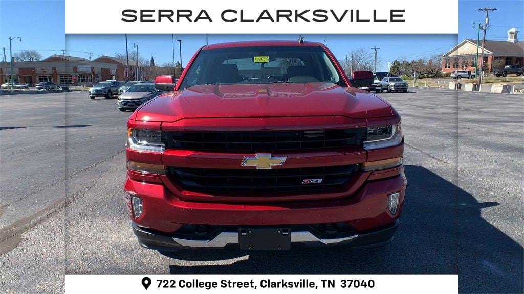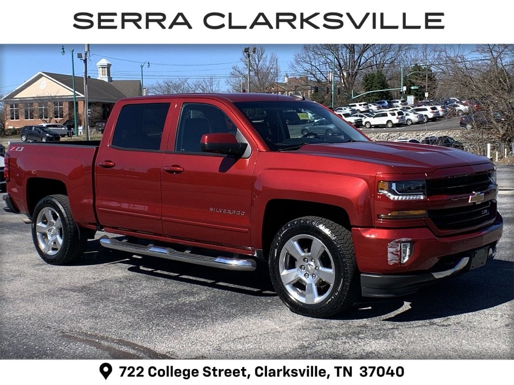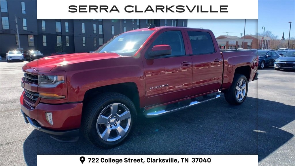 Cajun Red Tintcoat 2018 Chevrolet Silverado 1500 LT LT2The Pre-Owned 2018 Chevrolet Silverado 1500 LT with EcoTec3 5.3L V8 at Serra Clarksville. Well equipped: All Star Edition (110-Volt AC Power Outlet, Dual-Zone Automatic Climate Control, Electric Rear-Window Defogger, Remote Vehicle Starter System, and Theft Deterrent System (Unauthorized Entry)), Off-Road Suspension Package (Front Frame-Mounted Black Recovery Hooks, Heavy-Duty Rear Locking Differential, and Hill Descent Control), Preferred Equipment Group 2LT (150 Amp Alternator, 4.2 Diagonal Color Display Driver Info Center, 6 Speaker Audio System, Bluetooth® For Phone, Body Color Bodyside Moldings, Body Color Rear Bumper w/Cornersteps, Body-Color Door Handles, Body-Color Grille Surround, Body-Color Headlamp Bezels, Body-Color Mirror Caps, Body-Color Power Adjustable Heated Outside Mirrors, Chevrolet Connected Access, Chevrolet w/4G LTE, Color-Keyed Carpeting w/Rubberized Vinyl Floor Mats, Deep-Tinted Glass, Driver & Front Passenger Illuminated Vanity Mirrors, EZ Lift & Lower Tailgate, Front Body-Color Bumper, Front Chrome Bumper, HD Radio, Leather Wrapped Steering Wheel w/Cruise Controls, Manual Tilt Wheel Steering Column, OnStar & Chevrolet Connected Services Capable, Power Windows w/Driver Express Up, Rear 60/40 Folding Bench Seat (Folds Up), Rear Chrome Bumper, Rear Wheelhouse Liners, Remote Keyless Entry, Remote Locking Tailgate, Single Slot CD/MP3 Player, Steering Wheel Audio Controls, and Thin Profile LED Fog Lamps), Trailering Package, 6-Speed Automatic Electronic with Overdrive, 4WD, Black Leather, 10-Way Power Driver's Seat Adjuster, 4-Wheel Disc Brakes, 4 Chrome Round Assist Steps (LPO), 40/20/40 Front Split Bench Seat, 6 Speakers, ABS brakes, Air Conditioning, All-Weather Floor Liner (LPO), Alloy wheels, AM/FM radio: SiriusXM, Auxiliary External Transmission Oil Cooler, Bodyside moldings, Brake assist, Bumpers: body-color, CD player, Cloth Seat Trim, Compass, Delay-off headlights, Driver door bin, Driver vanity mirror, Dual front impact airbags, Dual front side impact airbags, Electronic Stability Control, Exterior Parking Camera Rear, Front & Rear Black Bowtie Emblems (LPO), Front anti-roll bar, Front Center Armrest w/Storage, Front fog lights, Front License Plate Kit, Front reading lights, Front wheel independent suspension, Fully automatic headlights, Heated door mirrors, Heated Driver & Front Passenger Seats, High-Intensity Discharge Headlights, Illuminated entry, Integrated Trailer Brake Controller, Low tire pressure warning, Manual Tilt/Telescoping Steering Column, Occupant sensing airbag, Outside temperature display, Overhead airbag, Overhead console, Panic alarm, Passenger door bin, Passenger vanity mirror, Power door mirrors, Power steering, Power windows, Premium audio system: Chevrolet MyLink, Radio data system, Radio: AM/FM 8 Diagonal Clr Touch Nav, Radio: AM/FM 8 Diagonal Color Touch Screen, Rear reading lights, Rear seat center armrest, Rear step bumper, Remote keyless entry, SiriusXM Satellite Radio, Speed control, Speed-sensing steering, Split folding rear seat, Steering wheel mounted audio controls, Tachometer, Tilt steering wheel, Traction control, Trip computer, Variably intermittent wipers, Voltmeter, Wheels: 18 x 8.5 Bright Machined Aluminum, and Wheels: 20 x 9 Polished-Aluminum.4WD EcoTec3 5.3L V8 6-Speed Automatic Electronic with OverdriveRecent Arrival! Odometer is 14079 miles below market average!Awards:* 2018 KBB.com 10 Most Awarded Brands
