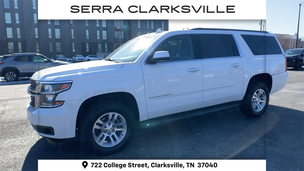 The Pre-Owned 2018 Chevrolet Suburban LT with EcoTec3 5.3L V8 Flex Fuel at Serra Clarksville. Well equipped: Enhanced Driver Alert Package (Forward Collision Alert, Intellibeam Headlamps w/Automatic High Beam On/Off, Lane Keep Assist w/Lane Departure Warning, Low Speed Forward Automatic Braking, and Safety Alert Seat), Preferred Equipment Group 1LT (12-Volt Auxiliary Power Outlet (5), 1st & 2nd Row Color-Keyed Carpeted Floor Mats, 2nd Row 60/40 Split-Folding Manual Bench, 3rd Row Manual 60/40 Split-Folding Fold Flat Bench, 4-Wheel Antilock Disc Brakes, 6-Way Power Front Passenger Seat Adjuster, Auto-Dimming Inside Rear-View Mirror, Black Assist Steps, Bose Premium Audio System Feature, Color-Keyed Carpeting Floor Covering, Driver Inboard & Front Passenger Airbags, Electronic Cruise Control w/Set & Resume Speed, Extended-Range Remote Keyless Entry, Floor Console w/Storage Area, HD Radio, Leather-Wrapped Steering Wheel, Memory Settings, OnStar Basic Plan For 5 Years, Power Liftgate, Power-Adjustable Accelerator & Brake Pedals, Rear Park Assist w/Audible Warning, Remote Vehicle Start, Roof-Mounted Luggage Rack Side Rails, SiriusXM Satellite Radio, and Universal Home Remote), Premium Smooth Ride Suspension Package, 18 x 8.5 High-Polished Aluminum Finish Wheels, 3.08 Rear Axle Ratio, 3rd row seats: split-bench, 4-Wheel Disc Brakes, 9 Speakers, ABS brakes, Adjustable pedals, Air Conditioning, Alloy wheels, AM/FM radio: SiriusXM, Apple CarPlay/Android Auto, Auto High-beam Headlights, Auto-dimming Rear-View mirror, Automatic temperature control, Brake assist, Bumpers: body-color, CD player, Compass, Delay-off headlights, Driver door bin, Driver vanity mirror, Dual front impact airbags, Dual front side impact airbags, Electronic Stability Control, Emergency communication system: OnStar Guidance, Exterior Parking Camera Rear, Front anti-roll bar, Front Bucket Seats, Front Center Armrest, Front dual zone A/C, Front reading lights, Front wheel independent suspension, Fully automatic headlights, Garage door transmitter, Heated door mirrors, Heated Front Reclining Bucket Seats, Heated front seats, Illuminated entry, Leather-Appointed Seat Trim, Low tire pressure warning, Memory seat, Occupant sensing airbag, Outside temperature display, Overhead airbag, Overhead console, Panic alarm, Passenger door bin, Passenger vanity mirror, Pedal memory, Power door mirrors, Power driver seat, Power passenger seat, Power steering, Power windows, Radio: Chevrolet MyLink AM/FM Stereo, Radio: Chevrolet MyLink AM/FM Stereo w/Navigation, Rain sensing wipers, Rear air conditioning, Rear anti-roll bar, Rear reading lights, Rear seat center armrest, Rear window defroster, Rear window wiper, Remote keyless entry, Roof rack: rails only, Security system, Single-Slot CD/MP3 Player, SiriusXM NavTraffic, Speed control, Speed-sensing steering, Split folding rear seat, Spoiler, Steering wheel mounted audio controls, Tachometer, Telescoping steering wheel, Tilt steering wheel, Traction control, Trip computer, Variably intermittent wipers, and Voltmeter.