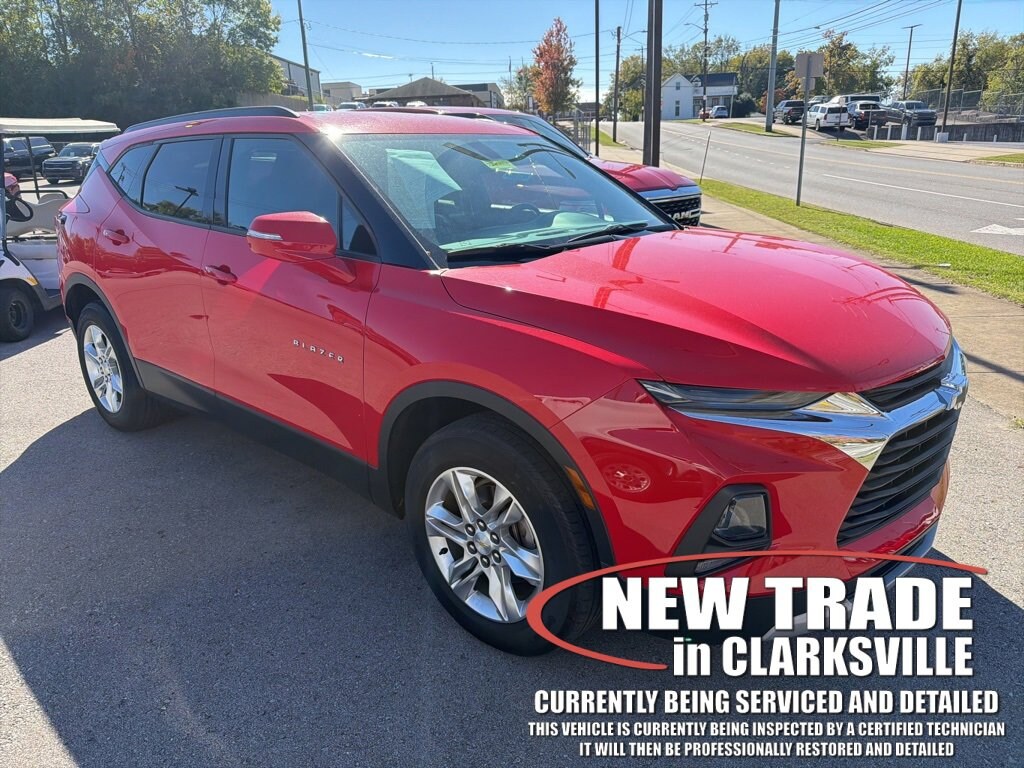 One-owner local new car trade-in! Clean CARFAX. The Pre-Owned 2019 Chevrolet Blazer with 3.6L V6 SIDI DOHC VVT at Serra Clarksville. Well equipped: Convenience & Driver Confidence Package (Black Roof Rails, Heated Driver & Front Passenger Seats, Inside Rear-View Auto-Dimming Mirror, Lane Change Alert w/Side Blind Zone Alert, Outside Heated Power-Adjustable Body-Color Mirrors, Rear Cross Traffic Alert, Rear Park Assist w/Audible Warning, Rear Power Programmable Liftgate, Remote Vehicle Starter System, and Universal Home Remote), Floor Liner Package (LPO) (1st & 2nd Row All-Weather Floor Liner (LPO) and Integrated Cargo Liner (LPO)), Preferred Equipment Group 2LT (155 Amp Alternator), 3.49 Final Drive Ratio, 4-Wheel Disc Brakes, 6 Speakers, 6-Speaker Audio System Feature, ABS brakes, Air Conditioning, Alloy wheels, AM/FM radio: SiriusXM, Apple CarPlay/Android Auto, Automatic temperature control, Brake assist, Bumpers: body-color, Child-Seat-Sensing Airbag, Compass, Delay-off headlights, Driver door bin, Driver vanity mirror, Dual front impact airbags, Dual front side impact airbags, Electronic Stability Control, Emergency communication system: OnStar and Chevrolet connected services capable, Four wheel independent suspension, Front & Rear Black Bowtie Emblems (LPO), Front anti-roll bar, Front Bucket Seats, Front Center Armrest, Front dual zone A/C, Front reading lights, Fully automatic headlights, Heated door mirrors, High-Intensity Discharge Headlights, Illuminated entry, Knee airbag, Leather Shift Knob, Low tire pressure warning, Occupant sensing airbag, Outside temperature display, Overhead airbag, Overhead console, Panic alarm, Passenger door bin, Passenger vanity mirror, Power door mirrors, Power driver seat, Power steering, Power windows, Premium Cloth Seat Trim, Radio data system, Radio: Chevrolet Infotainment 3 System, Rear anti-roll bar, Rear reading lights, Rear seat center armrest, Rear window defroster, Rear window wiper, Remote keyless entry, Ride & Handling Suspension, Security system, Speed control, Speed-sensing steering, Split folding rear seat, Spoiler, Steering wheel mounted audio controls, Tachometer, Telescoping steering wheel, Tilt steering wheel, Traction control, Trip computer, Variably intermittent wipers, Voltmeter, and Wheels: 18 Bright Silver Aluminum.