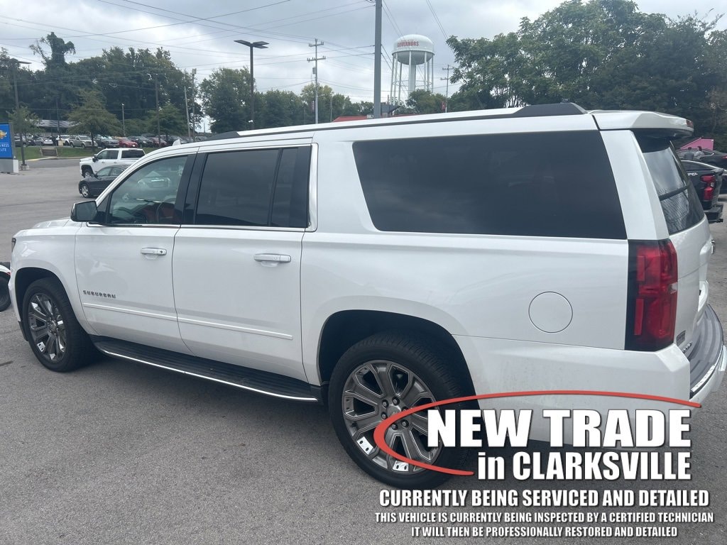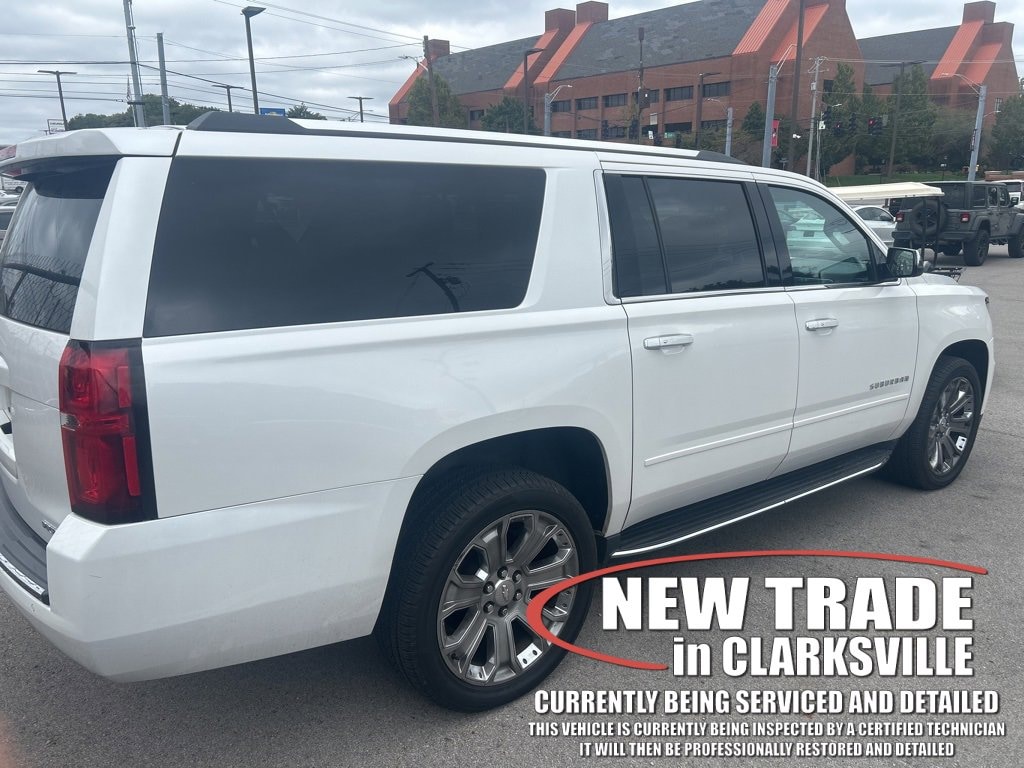 Local new car trade-in! The Pre-Owned 2019 Chevrolet Suburban Premier with EcoTec3 5.3L V8 at Serra Clarksville. Well equipped: Enhanced Driver Alert Package (Forward Collision Alert, IntelliBeam w/Automatic High Beam On/Off, Lane Keep Assist w/Lane Departure Warning, Low Speed Forward Automatic Braking, and Safety Alert Seat), Magnetic Ride Control Suspension Package, Max Trailering Package (2-Speed Active Electronic AutoTrac Transfer Case and Integrated Trailer Brake Controller), Preferred Equipment Group 1LZ (12-Volt Auxiliary Power Outlet (5), 1st & 2nd Row Color-Keyed Carpeted Floor Mats, 3rd Row 60/40 Power Fold Split-Bench, 4-Wheel Antilock Disc Brakes, 6-Way Power Front Passenger Seat Adjuster, Auto-Dimming Inside Rear-View Mirror, Black Assist Steps, Color-Keyed Carpeting Floor Covering, Driver Inboard & Front Passenger Airbags, Electronic Cruise Control w/Set & Resume Speed, Floor Console w/Storage Area, Fog Lamps, Front & Rear Park Assist, Hands-Free Power Liftgate, HD Radio, Heated 2nd Row Outboard Seats, Heated Leather Wrapped Steering Wheel, Lane Change Alert w/Side Blind Zone Alert, Memory Settings, Passive Entry System, Power Folding & Adjustable Heated Outside Mirrors, Power Release 2nd Row Bucket Seats, Power Tilt & Telescoping Steering Column, Power-Adjustable Accelerator & Brake Pedals, Push Button Keyless Start, Rear Cross Traffic Alert, Remote Vehicle Start, Roof-Mounted Luggage Rack Side Rails, SiriusXM Radio, Universal Home Remote, and Wireless Charging), Sun, Entertainment & Destinations Package (3rd Row DVD Screen, Power Tilt-Sliding Sunroof w/Express-Open/Close, and Rear Seat Entertainment System), 10 Speakers, 1st & 2nd Rows All-Weather Floor Liner (LPO), 3rd row seats: split-bench, 4-Wheel Disc & 4-Wheel VAC Power Antilock Brakes, 4-Wheel Disc Brakes, ABS brakes, Adaptive suspension, Adjustable pedals, Advanced Adaptive Cruise Control, Air Conditioning, All-Weather Rear Cargo Mat (LPO), Alloy wheels, AM/FM radio: SiriusXM, AM/FM Stereo w/Navigation, Apple CarPlay/Android Auto, Auto High-beam Headlights, Auto-dimming door mirrors, Auto-dimming Rear-View mirror, Automatic temperature control, Bodyside moldings, Bose Centerpoint Premium 10-Speaker Surround Sound, Brake assist, Bumpers: body-color, CD player, Compass, Delay-off headlights, Driver door bin, Driver vanity mirror, Dual front impact airbags, Dual front side impact airbags, Electronic Stability Control, Emergency communication system: OnStar and Chevrolet connected services capable, Enhanced Driver Information Center, Exterior Parking Camera Rear, Forward Automatic Braking, Front anti-roll bar, Front Bucket Seats, Front Center Armrest, Front dual zone A/C, Front fog lights, Front reading lights, Front wheel independent suspension, Fully automatic headlights, Garage door transmitter, Head-Up Display, Headphones, Heated & Ventilated Driver & Front Passenger Seats, Heated & Ventilated Front Reclining Bucket Seats, Heated door mirrors, Heated front seats, Heated rear seats, Heated steering wheel, High-Intensity Discharge Headlights, Illuminated entry, Leather Shift Knob, Low tire pressure warning, Memory seat, Navigation System, Occupant sensing airbag, Outside temperature display, Overhead airbag, Overhead console, Panic alarm, Passenger door bin, Passenger vanity mirror, Pedal memory, Perforated Leather-Appointed Seat Trim, Power door mirrors, Power driver seat, Power Liftgate, Power passenger seat, Power steering, Power windows, Rain sensing wipers, Rear air conditioning, Rear anti-roll bar, Rear audio controls, Rear reading lights, Rear window defroster, Rear window wiper, Remote keyless entry, Roof rack: rails only, Security system, Single-Slot CD/MP3 Player, SiriusXM NavTraffic, Speed control, Speed-sensing steering, Split folding rear seat, Spoiler, Steering wheel memory, Steering wheel mounted audio controls, Tachometer, Telescoping steering wheel, Tilt steering wheel, Traction control,