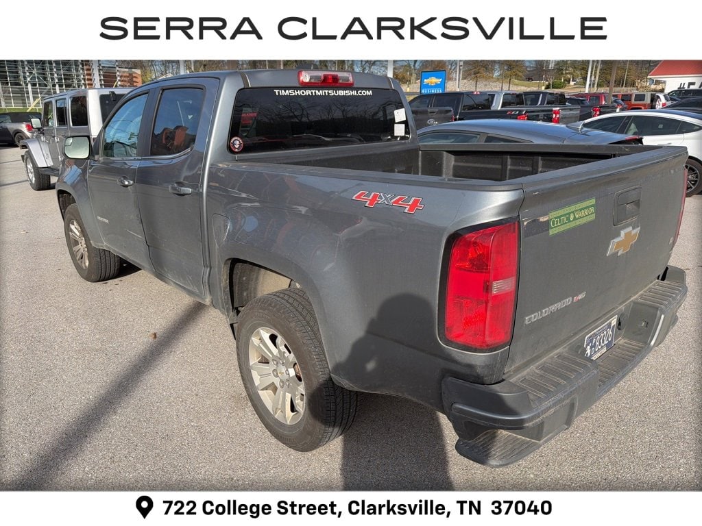 The Pre-Owned 2020 Chevrolet Colorado LT with V6 at Serra Clarksville. Well equipped: Preferred Equipment Group 4LT, 4WD, 3.42 Rear Axle Ratio, 4-Wheel Disc Brakes, 6 Speakers, 6-Speaker Audio System Feature, ABS brakes, Air Conditioning, Alloy wheels, AM/FM radio: SiriusXM, Apple CarPlay, Bumpers: body-color, Cloth Seat Trim, Compass, Delay-off headlights, Driver 6-Way Power Seat Adjuster, Driver door bin, Driver vanity mirror, Dual front impact airbags, Dual front side impact airbags, Electronic Stability Control, Exterior Parking Camera Rear, Front anti-roll bar, Front Bucket Seats, Front Center Armrest, Front License Plate Kit, Front reading lights, Front wheel independent suspension, Fully automatic headlights, HD Radio, Illuminated entry, Low tire pressure warning, Occupant sensing airbag, Outside temperature display, Overhead airbag, Overhead console, Panic alarm, Passenger door bin, Passenger vanity mirror, Power door mirrors, Power driver seat, Power steering, Power windows, Premium audio system: Chevrolet Infotainment 3 Plus, Radio data system, Radio: Chevrolet Infotainment 3 Plus System, Rear reading lights, Rear seat center armrest, Rear step bumper, Remote keyless entry, Security system, SiriusXM Radio, Speed control, Speed-sensing steering, Steering wheel mounted audio controls, Tachometer, Telescoping steering wheel, Tilt steering wheel, Traction control, Trip computer, Variably intermittent wipers, and Wheels: 17 x 8 Blade Silver Metallic Cast Alloy.