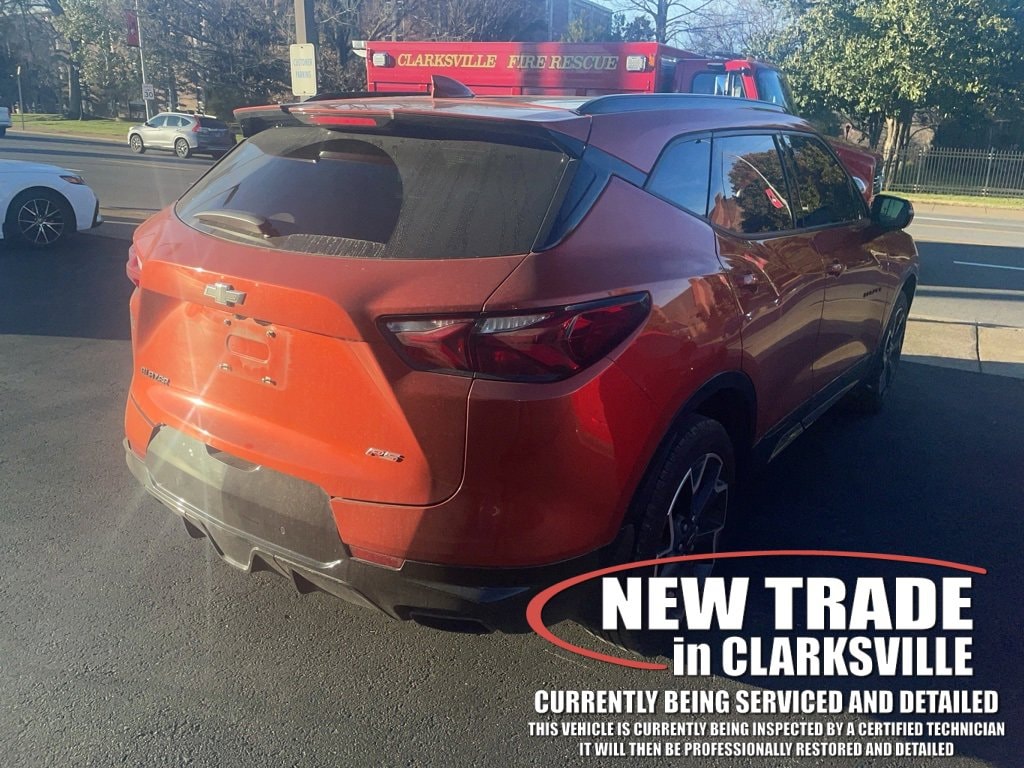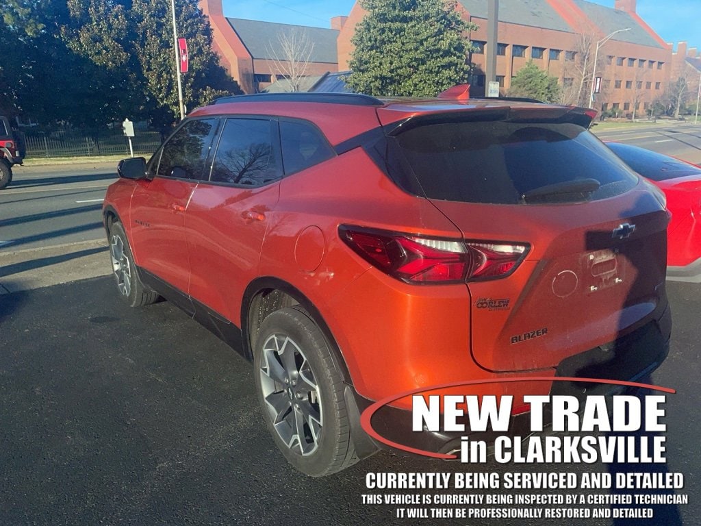 CARFAX One-Owner. Clean CARFAX. Cayenne Orange Metallic 2021 Chevrolet Blazer RSThe Pre-Owned 2021 Chevrolet Blazer RS with 3.6L V6 SIDI DOHC VVT at Serra Clarksville. Well equipped: Preferred Equipment Group 1RS, 3.49 Final Drive Axle Ratio, 4-Wheel Disc Brakes, 6 Speakers, 6-Speaker Audio System Feature, 6-Way Power Front Passenger Seat Adjuster, ABS brakes, Air Conditioning, Alloy wheels, AM/FM radio: SiriusXM, Apple CarPlay/Android Auto, Auto High-beam Headlights, Auto-dimming door mirrors, Auto-dimming Rear-View mirror, Automatic temperature control, Brake assist, Bumpers: body-color, Child-Seat-Sensing Airbag, Compass, Delay-off headlights, Driver door bin, Driver vanity mirror, Dual front impact airbags, Dual front side impact airbags, Electronic Stability Control, Emergency communication system: OnStar and Chevrolet connected services capable, Exterior Parking Camera Rear, Four wheel independent suspension, Front anti-roll bar, Front Bucket Seats, Front Center Armrest, Front dual zone A/C, Front reading lights, Fully automatic headlights, Garage door transmitter, Heated door mirrors, Heated Driver & Front Passenger Seats, Heated front seats, Heated steering wheel, High-Intensity Discharge Headlights, Illuminated entry, Knee airbag, Leather Shift Knob, Low tire pressure warning, Navigation System, Occupant sensing airbag, Outside temperature display, Overhead airbag, Overhead console, Panic alarm, Passenger door bin, Passenger vanity mirror, Perforated Leather-Appointed Seat Trim, Power door mirrors, Power driver seat, Power Liftgate, Power passenger seat, Power steering, Power windows, Radio data system, Radio: Chevrolet Infotainment 3 Plus System, Rear anti-roll bar, Rear reading lights, Rear seat center armrest, Rear window defroster, Rear window wiper, Remote keyless entry, Ride & Handling Suspension, Security system, SiriusXM w/360L, Speed control, Speed-sensing steering, Split folding rear seat, Spoiler, Steering wheel mounted audio controls, Tachometer, Telescoping steering wheel, Tilt steering wheel, Traction control, Trip computer, Turn signal indicator mirrors, Variably intermittent wipers, Voltmeter, and Wheels: 20 Dark Android Machined-Face Aluminum.FWD 3.6L V6 SIDI DOHC VVT 9-Speed AutomaticOdometer is 9922 miles below market average! 20/27 City/Highway MPGAwards:* JD Power Automotive Performance, Execution and Layout (APEAL) Study