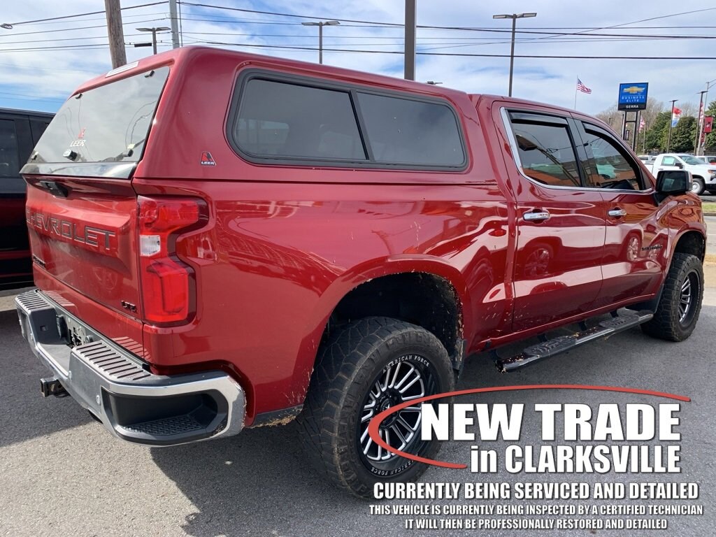 The Pre-Owned 2021 Chevrolet Silverado 1500 LTZ with EcoTec3 6.2L V8 at Serra Clarksville. Well equipped: Dark Essentials Package (LPO) (Black Name Plates (LPO)), LTZ Convenience Package (2 USB Ports (First Row), Floor Mounted Center Console, Power Sliding Rear Window w/Rear Defogger, Universal Home Remote, and Ventilated Driver & Front Passenger Seats), LTZ Convenience Package II (Premium Bose 7-Speaker Sound System, Radio: Chevrolet Infotainment 3 Premium System, and Wireless Charging), LTZ Plus Package, LTZ Premium Package (Power Sunroof), Preferred Equipment Group 1LZ (10-Way Power Driver Seat w/Lumbar, 10-Way Power Passenger Seat Adjuster w/Lumbar, 12-Volt Rear Auxiliary Power Outlet, 120-Volt Bed Mounted Power Outlet, 120-Volt Instrument Panel Power Outlet, 2 USB Ports, 4.2 Diagonal Color Display Driver Info Center, 4G LTE Wi-Fi Hot Spot Capable, 6-Speaker Audio System, Advanced Trailering System, Auto-Dimming Inside Rear-View Mirror, Auto-Locking Rear Differential, Auxiliary External Transmission Oil Cooler, Bluetooth® For Phone, Chevrolet Connected Access Capable, Chrome Grille, Chrome Mirror Caps, Color-Keyed Carpeting Floor Covering, Compass, Deep-Tinted Glass, Driver Memory, Electric Rear-Window Defogger, Electrical Lock Control Steering Column, Electronic Cruise Control, Front Frame-Mounted Black Recovery Hooks, Front LED Fog Lamps, Front Rubberized Vinyl Floor Mats, HD Rear Vision Camera, Heated Driver & Front Outboard Passenger Seats, Heated Steering Wheel, Hitch Guidance w/Hitch View, Integrated Trailer Brake Controller, Keyless Open & Start, Leather Wrapped Steering Wheel, LED Cargo Area Lighting, Manual Tilt/Telescoping Steering Column, OnStar & Chevrolet Connected Services Capable, Outside Heated Power-Adjustable Mirrors, Power Door Locks, Power Front Passenger Windows w/Express Up/Down, Power Front Windows w/Driver Express Up/Down, Power Rear Windows w/Express Down, Power Tailgate, Rear Dual USB Charging-Only Ports, Rear Rubberized-Vinyl Floor Mats, Rear Wheelhouse Liners, Remote Vehicle Starter System, SiriusXM w/360L, Standard Tailgate, Steering Wheel Audio Controls, Theft Deterrent System (Unauthorized Entry), and Wireless Phone Projection), Safety Package (Lane Change Alert w/Side Blind Zone Alert, Perimeter Lighting, Rear Cross Traffic Alert, and Ultrasonic Front & Rear Park Assist), Safety Package II (Adaptive Cruise Control, Automatic Emergency Braking, Following Distance Indicator, Forward Collision Alert, Front Pedestrian Braking, IntelliBeam Automatic High Beam On/Off, Lane Keep Assist w/Lane Departure Warning, and Safety Alert Seat), Trailering Package (Hitch Guidance), Up-Level Rear Seat w/Storage Package, Z71 Off-Road & Protection Package (All-Weather Floor Liner (LPO) (AAK) and Chevytec Spray-On Black Bedliner), Z71 Off-Road Package (Dual Exhaust w/Polished Outlets, Heavy-Duty Air Filter, Hill Descent Control, and Off-Road Suspension), 10-Speed Automatic, 4WD, Jet Black Leather, 170 Amp Alternator, 3.23 Rear Axle Ratio, 4-Wheel Disc Brakes, 6 Speakers, ABS brakes, Air Conditioning, Alloy wheels, AM/FM radio: SiriusXM with 360L, Apple CarPlay/Android Auto, Auto-dimming door mirrors, Auto-dimming Rear-View mirror, Automatic temperature control, Black Tailgate CHEVROLET Lettering (LPO), Brake assist, Bumpers: chrome, Delay-off headlights, Driver door bin, Driver vanity mirror, Dual front impact airbags, Dual front side impact airbags, Electronic Stability Control, Front anti-roll bar, Front Black Bowtie Emblem (LPO), Front Bucket Seats, Front Center Armrest w/Storage, Front dual zone A/C, Front fog lights, Front License Plate Kit, Front reading lights, Front wheel independent suspension, Fully automatic headlights, Garage door transmitter, Heated door mirrors, Heated front seats, Heated steering wheel, Heavy Duty Suspension, Illuminated entry, Low tire pressure warning, Memory seat, Occup