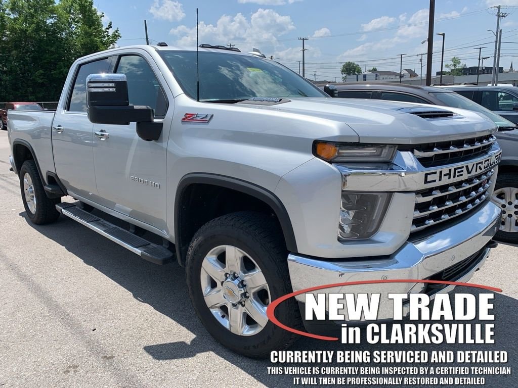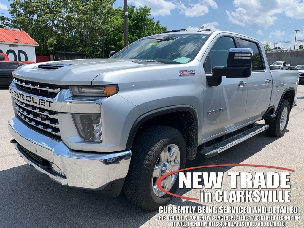 CARFAX One-Owner. Silver Ice Metallic 2021 Chevrolet Silverado 2500HD LTZThe Pre-Owned 2021 Chevrolet Silverado 2500HD LTZ with Duramax 6.6L V8 Turbodiesel at Serra Clarksville. Well equipped: Gooseneck/5th Wheel Package (Black Chevytec Spray-On Bedliner w/Chevrolet Logo), Gooseneck/5th Wheel Prep Package, Hitch Package (LPO), LTZ Convenience Package (2 USB Ports (1st Row), 2 USB Ports & 1 SD Card Reader, Floor-Mounted Center Console, Front Bucket Seats w/Center Console, Heated 2nd Row Outboard Seats, LED Cargo Area Lighting, Power Sliding Rear Window w/Defogger, Pwr Up/Down Tailgate Function w/Pwr Lock & Release, Universal Home Remote, and Ventilated Driver & Front Passenger Seats), LTZ Convenience Package II (BOSE Premium 7-Speaker Sound System, HD Surround Vision w/2 Trailer View Cam Provisions, Hitch Guidance w/Hitch View, Radio: Chevrolet Infotainment 3 Premium System, SiriusXM w/360L, and Wireless Charging), LTZ Premium Package (Wheels: 20 6-Spoke Polished Aluminum), Preferred Equipment Group 1LZ (10-Way Power Driver Seat Adjuster w/Lumbar, 10-Way Power Passenger Seat Adjuster w/Lumbar, 12-Volt Rear Auxiliary Power Outlet, 120-Volt Bed Mounted Power Outlet, 120-Volt Instrument Panel Power Outlet, 170 Amp Alternator, 2-Speed Active Electronic AutoTrac Transfer Case, 4.2 Diagonal Color Display DIC, 4G LTE Wi-Fi Hotspot Capable, Advanced Trailering System, Auto-Dimming Inside Rear-View Mirror, Bluetooth® For Phone, Chevrolet Connected Access Capable, Chrome Front Grille, Chrome Mirror Caps, Color-Keyed Carpeting Floor Covering, Compass, Deep-Tinted Glass, Driver Memory, Dual Charge-Only USB Ports (2nd Row), Electric Rear-Window Defogger, Electrical Lock Control Steering Column, Electronic Cruise Control w/Set & Resume Speed, Front LED Fog Lamps, Front Rubberized Vinyl Floor Mats, HD Radio, HD Rear Vision Camera, Heated & Auto-Dim Pwr Vertical Trailering Mirrors, Heated Driver & Front Outboard Passenger Seating, Heated Steering Wheel, Integrated Trailer Brake Controller, Keyless Open & Start, Leather-Wrapped Steering Wheel, Manual Tailgate Function w/EZ Lift, Manual Tilt & Telescoping Steering Column, OnStar & Chevrolet Connected Services Capable, Power Door Locks, Power Front Windows w/Driver Express Up/Down, Power Front Windows w/Passenger Express Up/Down, Power Rear Windows w/Express Down, Rear Rubberized Vinyl Floor Mats, Rear Wheelhouse Liners, Remote Vehicle Starter System, Steering Wheel Audio Controls, Unauthorized Entry Theft-Deterrent System, and Wireless Phone Projection), Safety Package (Lane Change Alert w/Side Blind Zone Alert, Rear Cross Traffic Alert, and Ultrasonic Front & Rear Park Assist), Safety Package II (Automatic Emergency Braking, Following Distance Indicator, Forward Collision Alert, IntelliBeam Automatic High Beam On/Off, Lane Departure Warning System, and Safety Alert Seat), Snow Plow Prep/Camper Package, Suspension Package, Technology Package (15 Diagonal Multicolor Head-Up Display, 8 Diagonal Multicolor Digital Display DIC, and Rear Camera Mirror), Up-Level Rear Seat w/Storage Package, Z71 Off-Road & Protection Package (1st & 2nd Row All-Weather Floor Liners (LPO) (AAK)), Z71 Off-Road Package (Hill Descent Control and Off-Road Suspension), 10-Speed Automatic, 4WD, Jet Black Leather, 220 Amp Alternator, 4-Wheel Disc Brakes, 6 Speakers, 6-Speaker Audio System, 720 Cold-Cranking Amps Heavy-Duty Battery, ABS brakes, Air Conditioning, Alloy wheels, AM/FM radio: SiriusXM with 360L, Apple CarPlay/Android Auto, Auto-dimming door mirrors, Auto-dimming Rear-View mirror, Automatic temperature control, Bed View Camera w/2 Trailer Camera Provisions (DISC), Black Molded Splash Guards (LPO), Brake assist, Bumpers: chrome, Delay-off headlights, Driver door bin, Driver vanity mirror, Dual front impact airbags, Dual front side impact airbags, Electronic Stability Control, Engine Block Heater, Exhaust Brake, Front 40/20/40 Split-Bench Seat w/Lockable Storage, Front anti-roll bar, Front Center Armrest