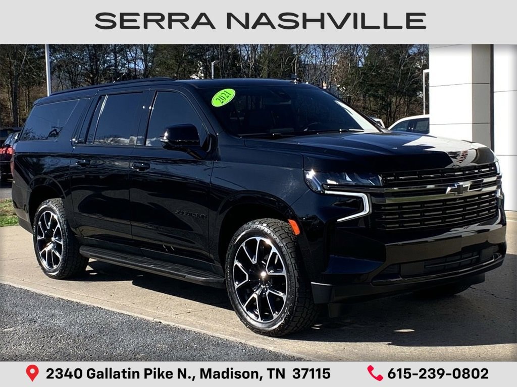 Recent Arrival! Clean CARFAX.Black 2021 Chevrolet Suburban RST 4D Sport Utility 4WD EcoTec3 5.3L V8 10-Speed Automatic with OverdriveVisit the #1 Volume GM dealer in Tennessee - 2340 Gallatin Pike North.Serving the greater Nashville Area. Now serving Antioch, TN - Clarksville, TN - Murfreesboro, TN - Springfield, TN.