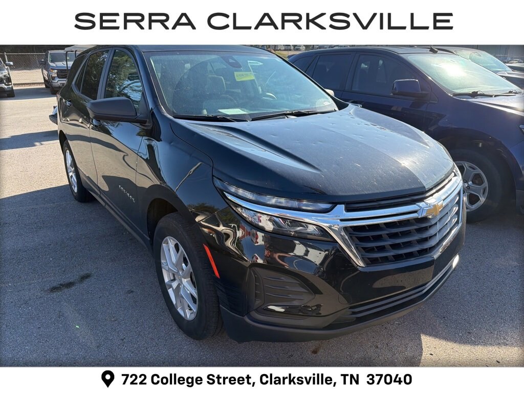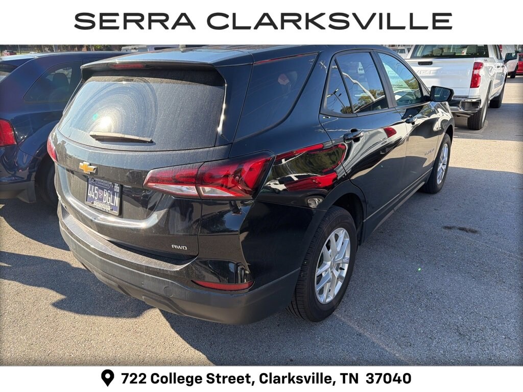 CARFAX One-Owner. Clean CARFAX. Mosaic Black Metallic 2022 Chevrolet Equinox LSThe Pre-Owned 2022 Chevrolet Equinox LS with 1.5L DOHC at Serra Clarksville. Well equipped: Driver Confidence II Package (Lane Change Alert w/Side Blind Zone Alert, Rear Cross Traffic Alert, and Rear Park Assist w/Audible Warning), Floor Liner Package (LPO) (All-Weather Floor Liners (LPO) and Integrated Cargo Liner (LPO)), LS Convenience Package (2-Way Power Driver Lumbar Control Seat Adjuster, 8-Way Power Driver Seat Adjuster, Deep-Tinted Rear Glass, and Multi-Color Enhanced Driver Instrument Info Display), Preferred Equipment Group 1LS, AWD, 17 Aluminum Wheels, 2 Rear USB Charging-Only Ports, 2 USB Ports & Auxiliary Input Jack, 3.87 Final Drive Axle Ratio, 4-Way Manual Driver Seat Adjuster, 4-Wheel Disc Brakes, 6 Speaker Audio System Feature, 6 Speakers, ABS brakes, Air Conditioning, Alloy wheels, AM/FM radio: SiriusXM, Auto High-beam Headlights, Bluetooth® For Phone, Brake assist, Bumpers: body-color, Compass, Delay-off headlights, Driver door bin, Driver vanity mirror, Dual front impact airbags, Dual front side impact airbags, Electronic Stability Control, Emergency communication system: OnStar and Chevrolet connected services capable, Four wheel independent suspension, Front anti-roll bar, Front Bucket Seats, Front Center Armrest, Front Passenger 4-Way Manual Seat Adjuster, Front reading lights, Fully automatic headlights, Heated door mirrors, Illuminated entry, Low tire pressure warning, Occupant sensing airbag, Outside temperature display, Overhead airbag, Overhead console, Panic alarm, Passenger door bin, Passenger vanity mirror, Power door mirrors, Power steering, Power windows, Premium audio system: Chevrolet Infotainment 3, Premium Cloth Seat Trim, Radio data system, Radio: Chevrolet Infotainment 3 System w/AM/FM, Rear anti-roll bar, Rear reading lights, Rear seat center armrest, Rear window defroster, Rear window wiper, Remote keyless entry, Security system, SiriusXM Radio, Speed control, Speed-sensing steering, Split folding rear seat, Spoiler, Steering wheel mounted audio controls, Tachometer, Telescoping steering wheel, Tilt steering wheel, Traction control, Trip computer, Variably intermittent wipers, and Wireless Apple CarPlay/Wireless Android Auto.AWD 1.5L DOHC 6-Speed Automatic Electronic with OverdriveRecent Arrival! 25/30 City/Highway MPG