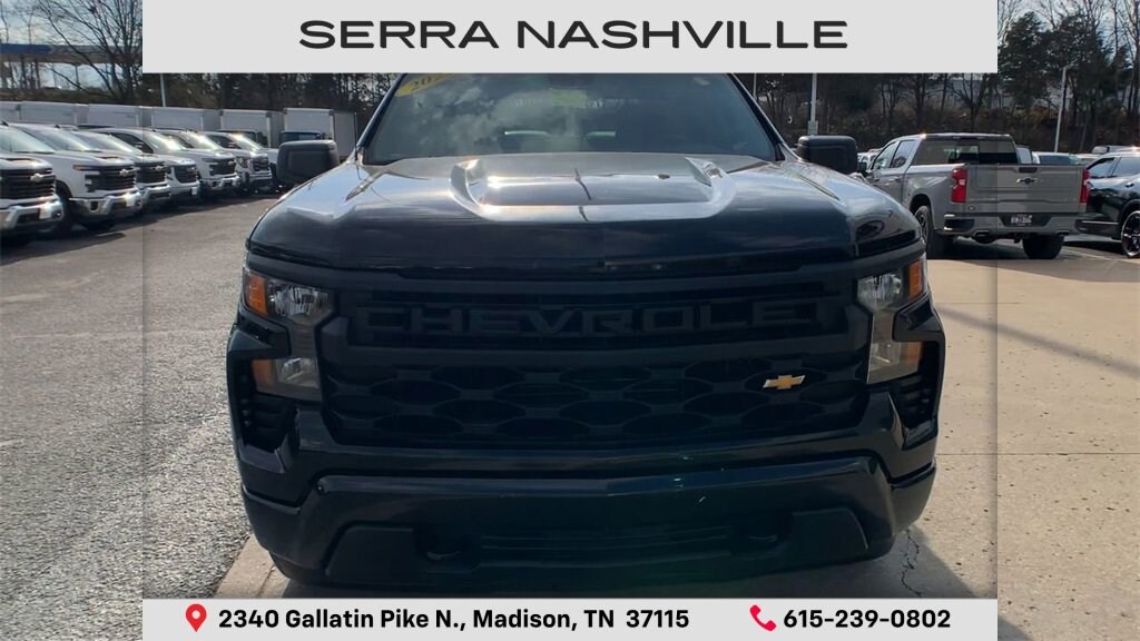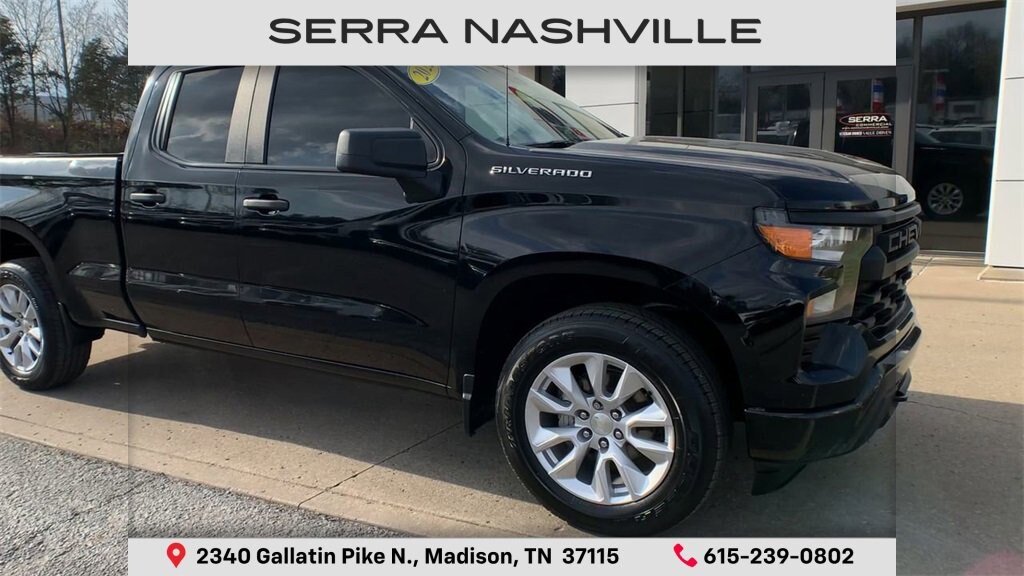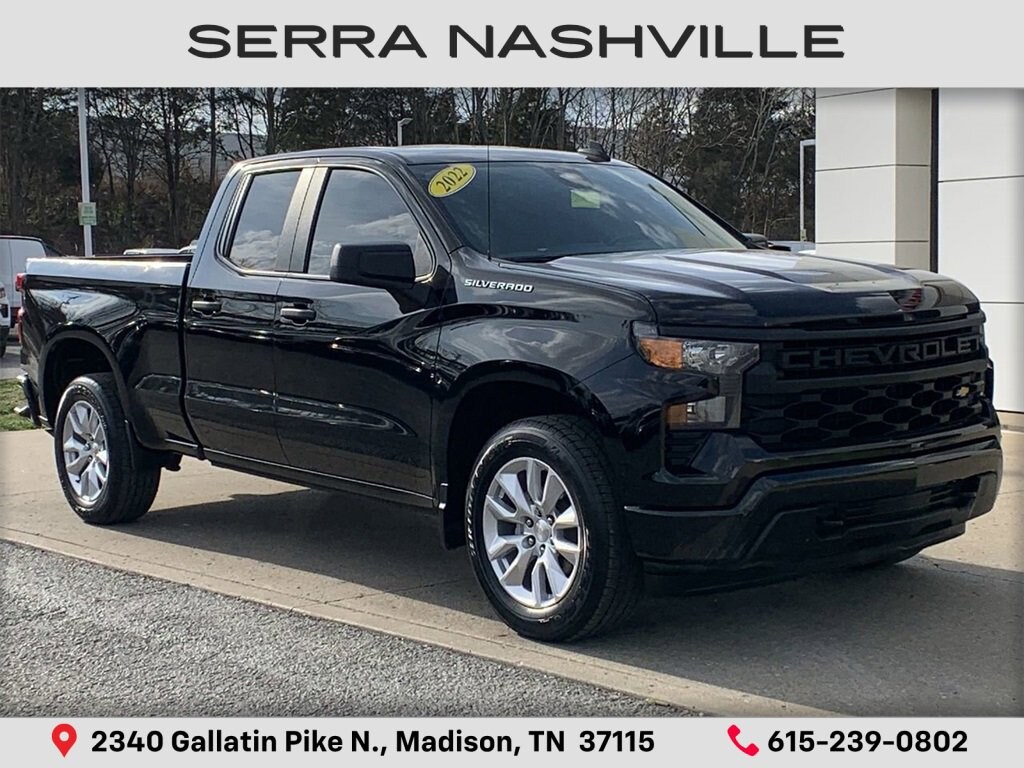 Recent Arrival! 8-Speed Automatic, Black Cloth. Clean CARFAX.Black 2022 Chevrolet Silverado 1500 Custom 4D Extended Cab RWD 2.7L Turbo 8-Speed AutomaticVisit the #1 Volume GM dealer in Tennessee - 2340 Gallatin Pike North.Serving the greater Nashville Area. Now serving Antioch, TN - Clarksville, TN - Murfreesboro, TN - Springfield, TN.