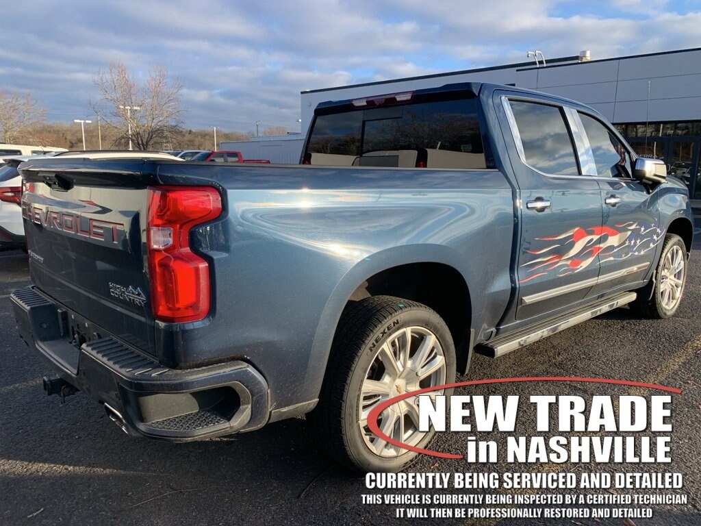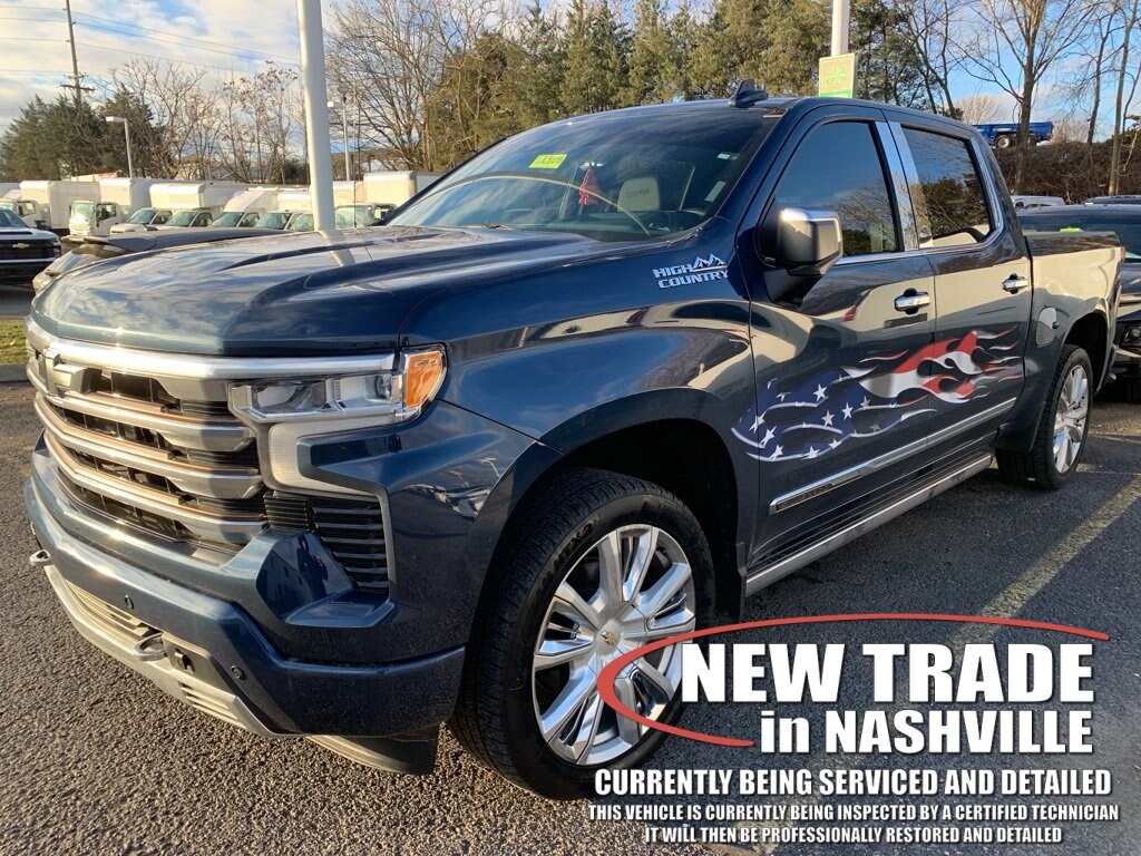 Recent Arrival! 10-Speed Automatic, 4WD, Jet Black Leather. Clean CARFAX.Northsky Blue Metallic 2022 Chevrolet Silverado 1500 High Country 4D Crew Cab 4WD EcoTec3 5.3L V8 10-Speed AutomaticVisit the #1 Volume GM dealer in Tennessee - 2340 Gallatin Pike North.Serving the greater Nashville Area. Now serving Antioch, TN - Clarksville, TN - Murfreesboro, TN - Springfield, TN.
