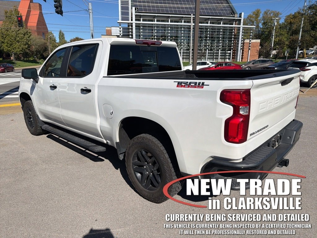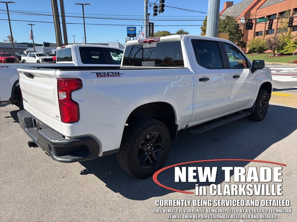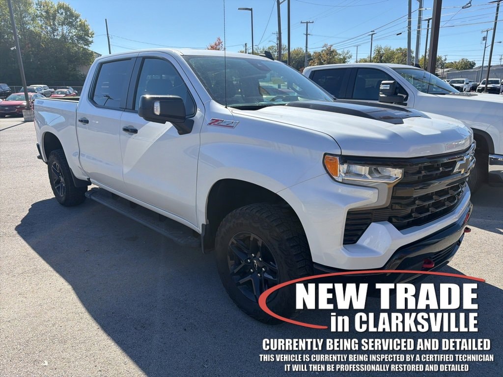 One-owner local new car trade-in! Clean CARFAX. The Pre-Owned 2023 Chevrolet Silverado 1500 LT Trail Boss with EcoTec3 5.3L V8 at Serra Clarksville. Well equipped: Convenience Package (10-Way Power Driver Seat w/Lumbar, 120-Volt Bed Mounted Power Outlet, 120-Volt Instrument Panel Power Outlet, Dual Rear USB Ports (Charge Only), Dual-Zone Automatic Climate Control, Electric Rear-Window Defogger, Heated Driver & Front Outboard Passenger Seats, Heated Steering Wheel, Keyless Open & Start, Remote Vehicle Starter System, Theft Deterrent System (Unauthorized Entry), and Wrapped Steering Wheel), Convenience Package II (Hitch Guidance w/Hitch View, Integrated Trailer Brake Controller, Power Sliding Rear Window w/Rear Defogger, Premium Bose 7-Speaker Sound System, Trailering App, and Universal Home Remote), Leather Package (Leather-Appointed Front Seat Trim), LT Trail Boss Premium Package (Power Tailgate), Preferred Equipment Group 2LT (12.3 Multicolor Reconfigurable Digital Display, 6-Speaker Audio System, All-Weather Floor Liner (LPO) (AAK), Auto-Locking Rear Differential, Bluetooth® For Phone, Chevrolet Connected Access Capable, Color-Keyed Carpeting Floor Covering, Compass, Deep-Tinted Glass, Electrical Steering Column Lock, Electronic Cruise Control, EZ Lift Power Lock & Release Tailgate, Front LED Fog Lamps, HD Rear Vision Camera, Heated Power-Adjustable Outside Mirrors, High Gloss Black Mirror Caps, Inside Rear-View Mirror w/Tilt, LED Cargo Area Lighting, OnStar & Chevrolet Connected Services Capable, Performance Red Recovery Hooks, Power Front Windows w/Driver Express Up/Down, Power Front Windows w/Passenger Express Down, Power Rear Windows w/Express Down, Rear 60/40 Folding Bench Seat (Folds Up), SiriusXM w/360L, Standard Tailgate, Steering Wheel Audio Controls, Wi-Fi Hot Spot Capable, and Wireless Phone Projection), Protection Package (Chevytec Spray-On Black Bedliner and Rear Wheelhouse Liners), Safety Package (HD Surround Vision, Perimeter Lighting, Rear Cross Traffic Alert-Braking, Rear Park Assist, Rear Pedestrian Alert, Trailer Camera Provisions, and Trailer Side Blind Zone Alert), Suspension Package (Heavy-Duty Air Filter and Hill Descent Control), Trailering Package (Hitch Guidance), Up-Level Rear Seat w/Storage Package, 10-Speed Automatic, 4WD, Black Leather, 170 Amp Alternator, 2 USB Data Ports, 220 Amp Alternator, 4-Wheel Disc Brakes, 40/20/40 Front Split-Bench Seat, 6 Speakers, ABS brakes, Air Conditioning, Alloy wheels, AM/FM radio: SiriusXM with 360L, Apple CarPlay/Android Auto, Auto High-beam Headlights, Automatic Emergency Braking, Automatic temperature control, Auxiliary External Transmission Oil Cooler, Bed View Camera, Brake assist, Cloth Seat Trim, Delay-off headlights, Driver door bin, Driver vanity mirror, Dual Exhaust w/Polished Outlets, Dual front impact airbags, Dual front side impact airbags, Electronic Stability Control, Electronic Transmission Range Selector Shifter, External Engine Oil Cooler, Floor Mounted Center Console, Following Distance Indicator, Forward Collision Alert, Front anti-roll bar, Front Bucket Seats, Front Center Armrest w/Storage, Front dual zone A/C, Front fog lights, Front License Plate Kit, Front Pedestrian Braking, Front reading lights, Front wheel independent suspension, Fully automatic headlights, Heated door mirrors, Heated front seats, Heated steering wheel, Illuminated entry, IntelliBeam Automatic High Beam On/Off, Lane Keep Assist w/Lane Departure Warning, Low tire pressure warning, Not Equipped w/Steering Column Lock, Occupant sensing airbag, Outside temperature display, Overhead airbag, Overhead console, Panic alarm, Passenger door bin, Passenger vanity mirror, Power door mirrors, Power driver seat, Power steering, Power Sunroof, Power windows, Premium audio system: Chevrolet Infotainment 3 Premium, Radio data system, Radio: Chevrolet Infotainment 3 Premium System, Rear reading lights, Rear step bumper, Rear window defr