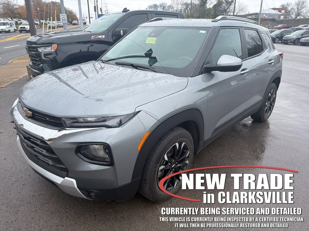 One-owner local new car trade-in! Clean CARFAX. The Pre-Owned 2023 Chevrolet TrailBlazer LT with 1.2L Ecotec Turbo DOHC DI w/VVT at Serra Clarksville. Well equipped: Preferred Equipment Group 1LT, 2-Way Adjustable Front Head Restraints, 2-Way Power Driver Lumbar Seat Adjuster, 4-Way Manual Front Passenger Seat Adjuster, 4-Wheel Disc Brakes, 5.45 Axle Ratio, 6 Speakers, 6-Speaker Audio System Feature, 7 Diagonal Color Touchscreen, 8-Way Power Driver Seat Adjuster, ABS brakes, Air Conditioning, Alloy wheels, AM/FM radio: SiriusXM, Auto High-beam Headlights, Brake assist, Bumpers: body-color, Cloth Seat Trim, Compass, Delay-off headlights, Driver door bin, Driver vanity mirror, Dual front impact airbags, Dual front side impact airbags, Electronic Stability Control, Emergency communication system: OnStar and Chevrolet connected services capable, Exterior Parking Camera Rear, Flat-Folding Front Passenger Seatback, Front anti-roll bar, Front Bucket Seats, Front Center Armrest, Front fog lights, Front License Plate Bracket, Front reading lights, Front wheel independent suspension, Fully automatic headlights, Heated door mirrors, Heated Driver & Front Passenger Seats, Heated front seats, Illuminated entry, Knee airbag, Low tire pressure warning, Occupant sensing airbag, Overhead airbag, Overhead console, Panic alarm, Passenger door bin, Passenger vanity mirror, Power door mirrors, Power driver seat, Power steering, Power windows, Radio data system, Radio: Chevrolet Infotainment 3 System, Rear side impact airbag, Rear window defroster, Rear window wiper, Remote keyless entry, Ride & Handling Suspension, Security system, SiriusXM Radio, Speed control, Split folding rear seat, Spoiler, Steering wheel mounted audio controls, Tachometer, Telescoping steering wheel, Tilt steering wheel, Traction control, Trip computer, Variably intermittent wipers, Wheels: 17 High Gloss Black Machined Aluminum, and Wireless Apple CarPlay/Android Auto.FWD 1.2L Ecotec Turbo DOHC DI w/VVT CVTRecent Arrival! 29/31 City/Highway MPG