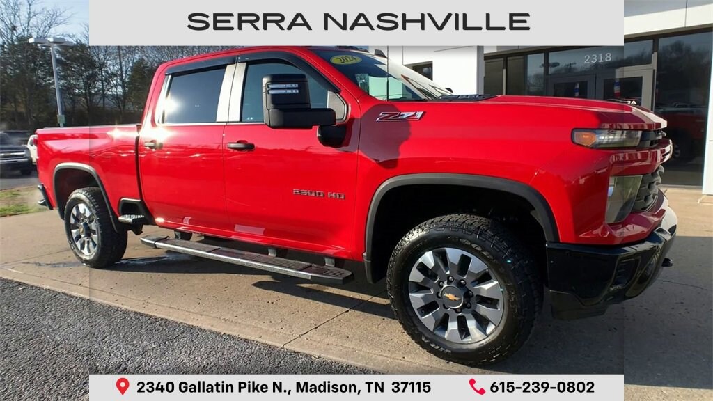Recent Arrival! 10-Speed Automatic, 4WD, Black Cloth. Clean CARFAX.Red Hot 2024 Chevrolet Silverado 2500HD Custom 4D Crew Cab 4WD 6.6L V8 10-Speed AutomaticVisit the #1 Volume GM dealer in Tennessee - 2340 Gallatin Pike North.Serving the greater Nashville Area. Now serving Antioch, TN - Clarksville, TN - Murfreesboro, TN - Springfield, TN.